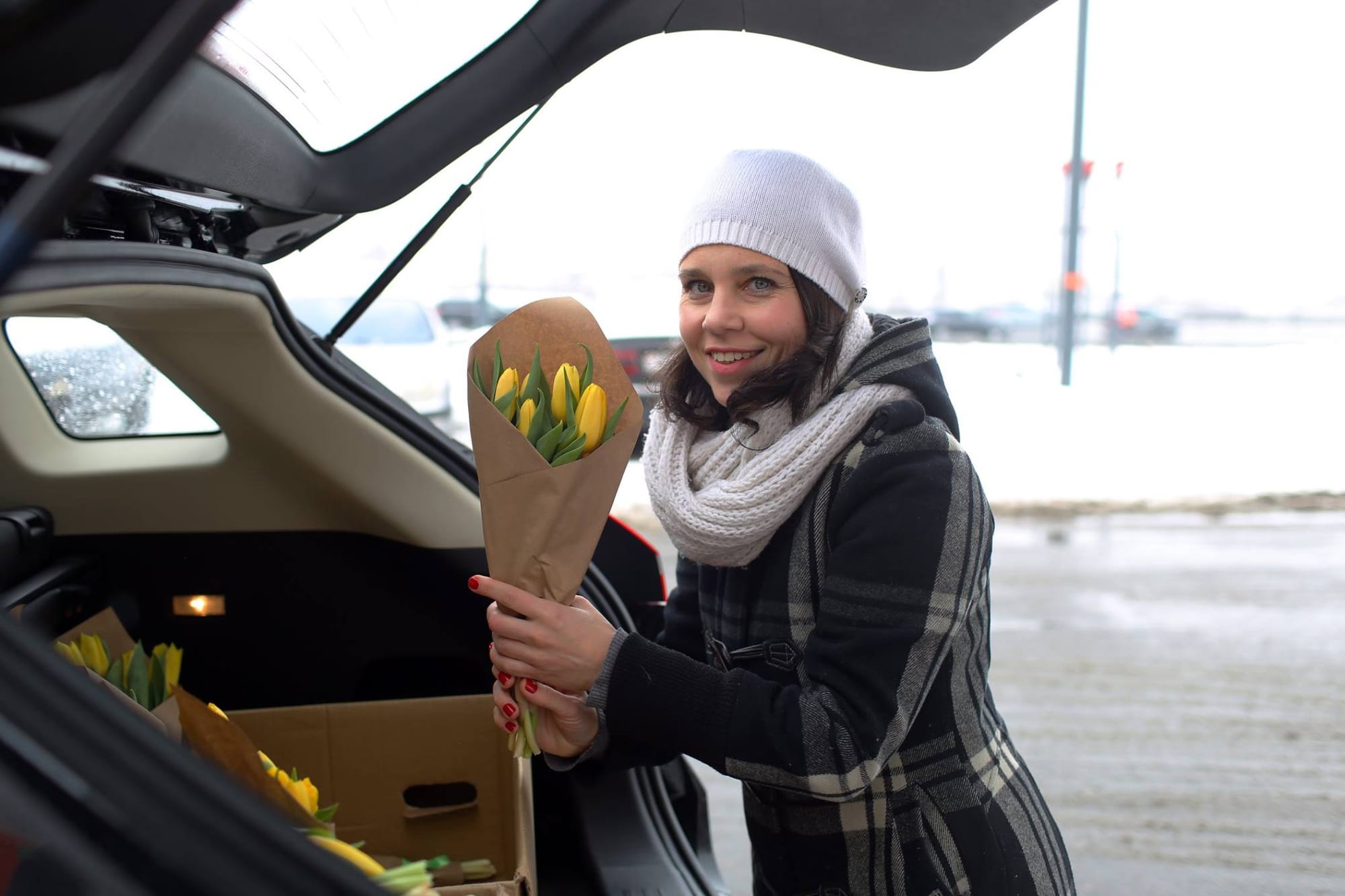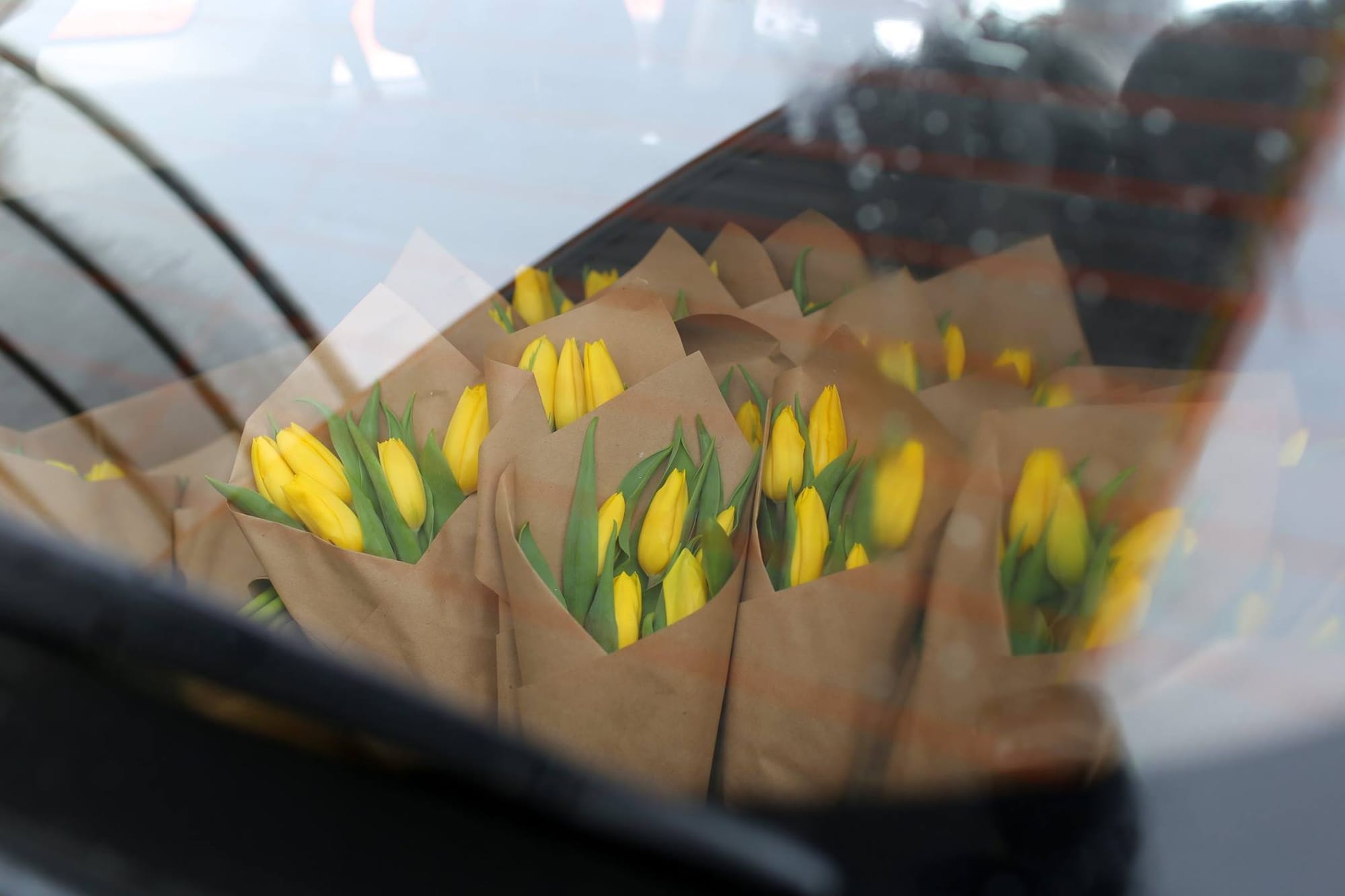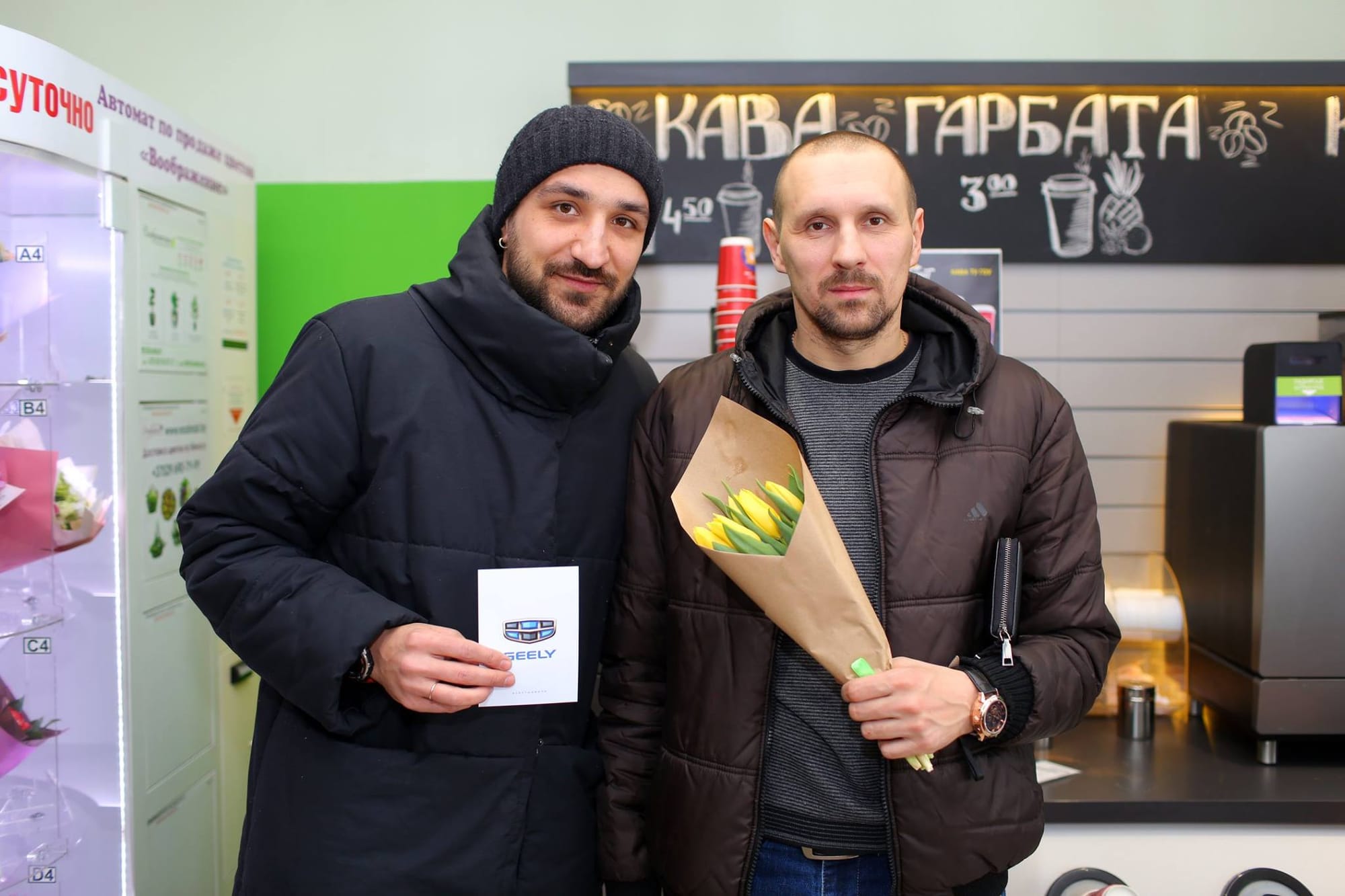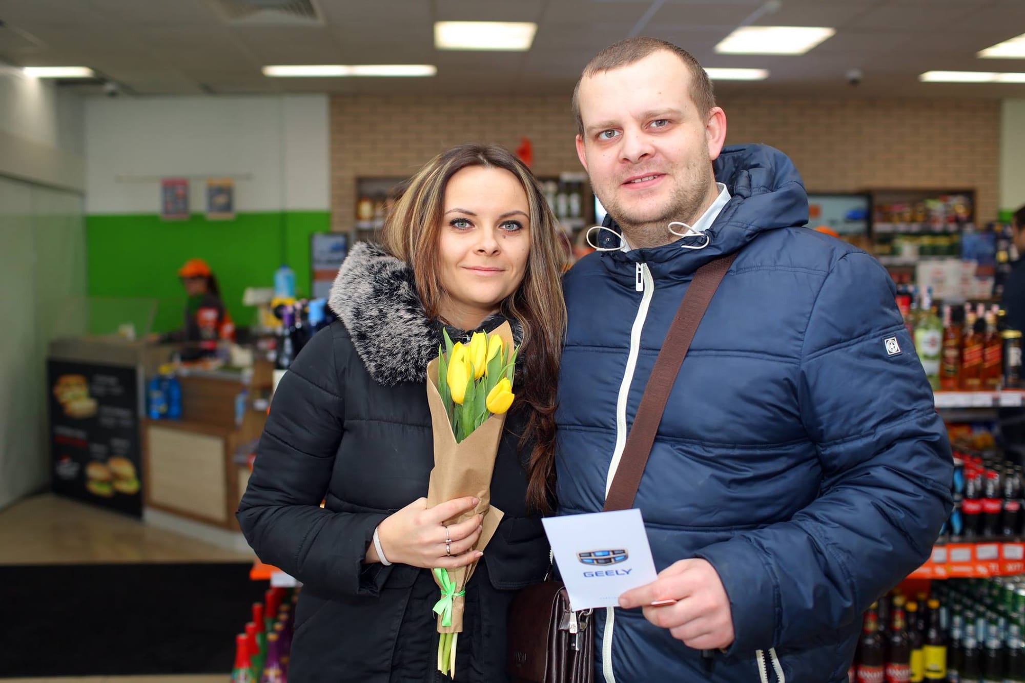 На заправках бесплатно им раздавали весенние букеты, которые они могли подарить любимым женщинам. Автомобиль Geely с полным багажником цветов курсировал целый день между автозаправочными станциями А-100. Каждый час он перемещался в новую точку.