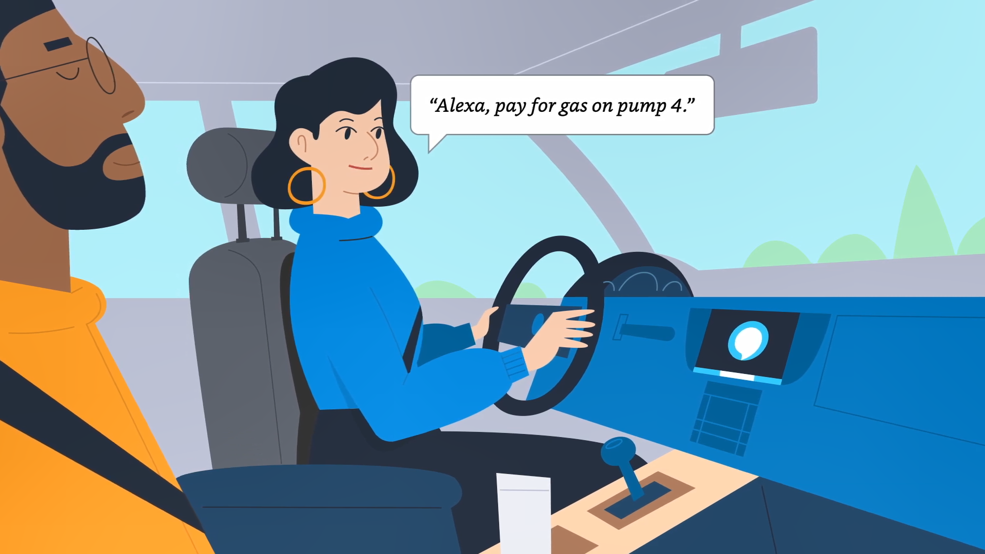 Когда потребитель находится в транспортном средстве с поддержкой Alexa, использует устройство Echo Auto или другое мобильное устройство, он просто говорит: «Алекса, заплати за бензин». Сервис подтверждает местоположение АЗС и номер топливораздаточной колонки. Технологии цифровой коммерции от Fiserv активируют ТРК и обеспечивают безопасность платежей через Amazon Pay без дополнительной регистрации или созданий отдельной учетной записи.