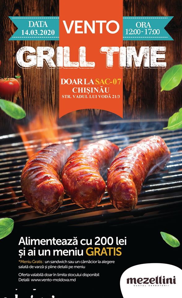 Молдавская сеть АЗС VENTO 7 и 14 марта провела акцию «VENTO GRILL TIME». Все клиенты, которые заправлялись топливом на сумму больше 200 лей получали в подарок один из вариантов комбо-меню. Все блюда на гриле готовились прямо на автозаправочных станциях.