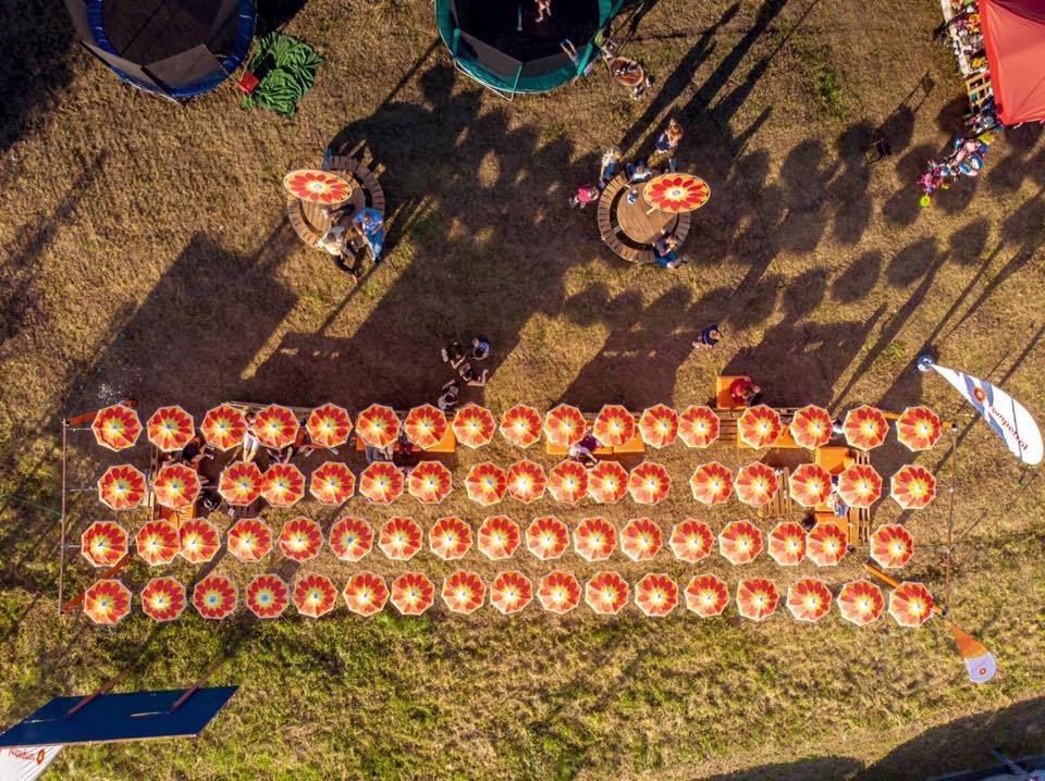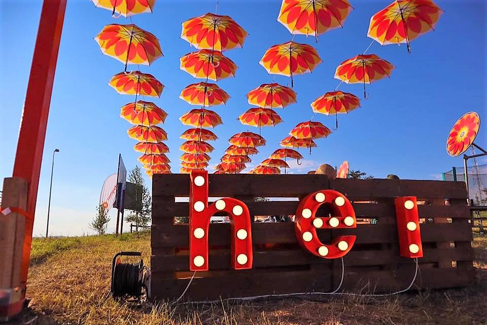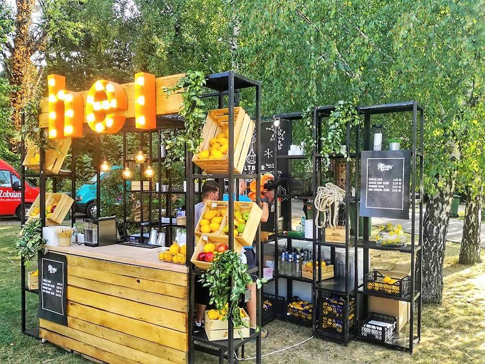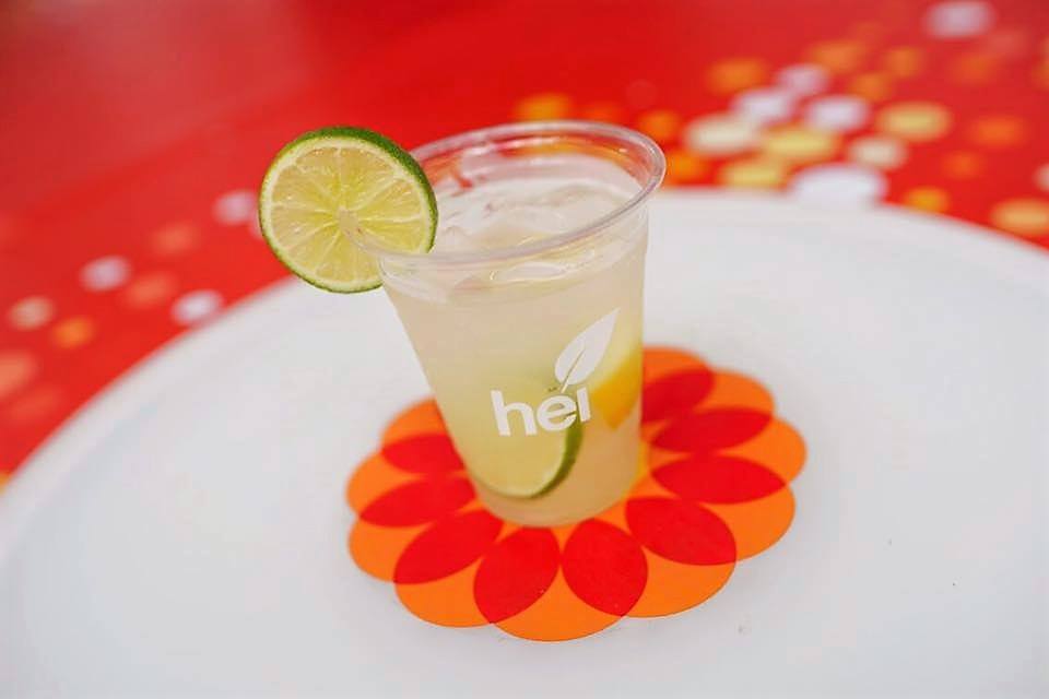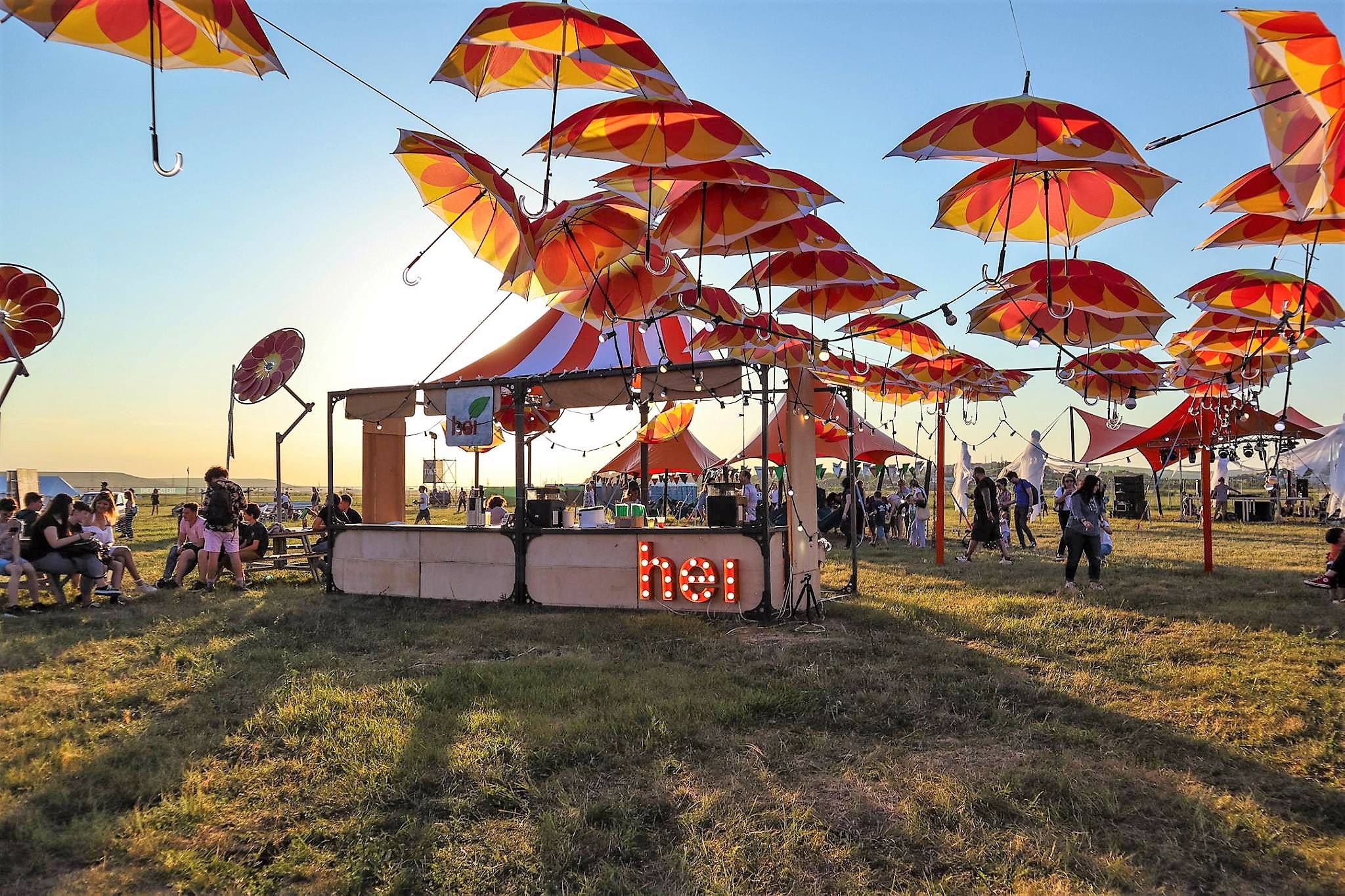 Художественная инсталляция десятков зонтиков с логотипом компании, парящих в небе, привлекала гостей фирменного кафе Hey, где их угощали лимонадами, фрешами, смузи, свежими фруктами.
