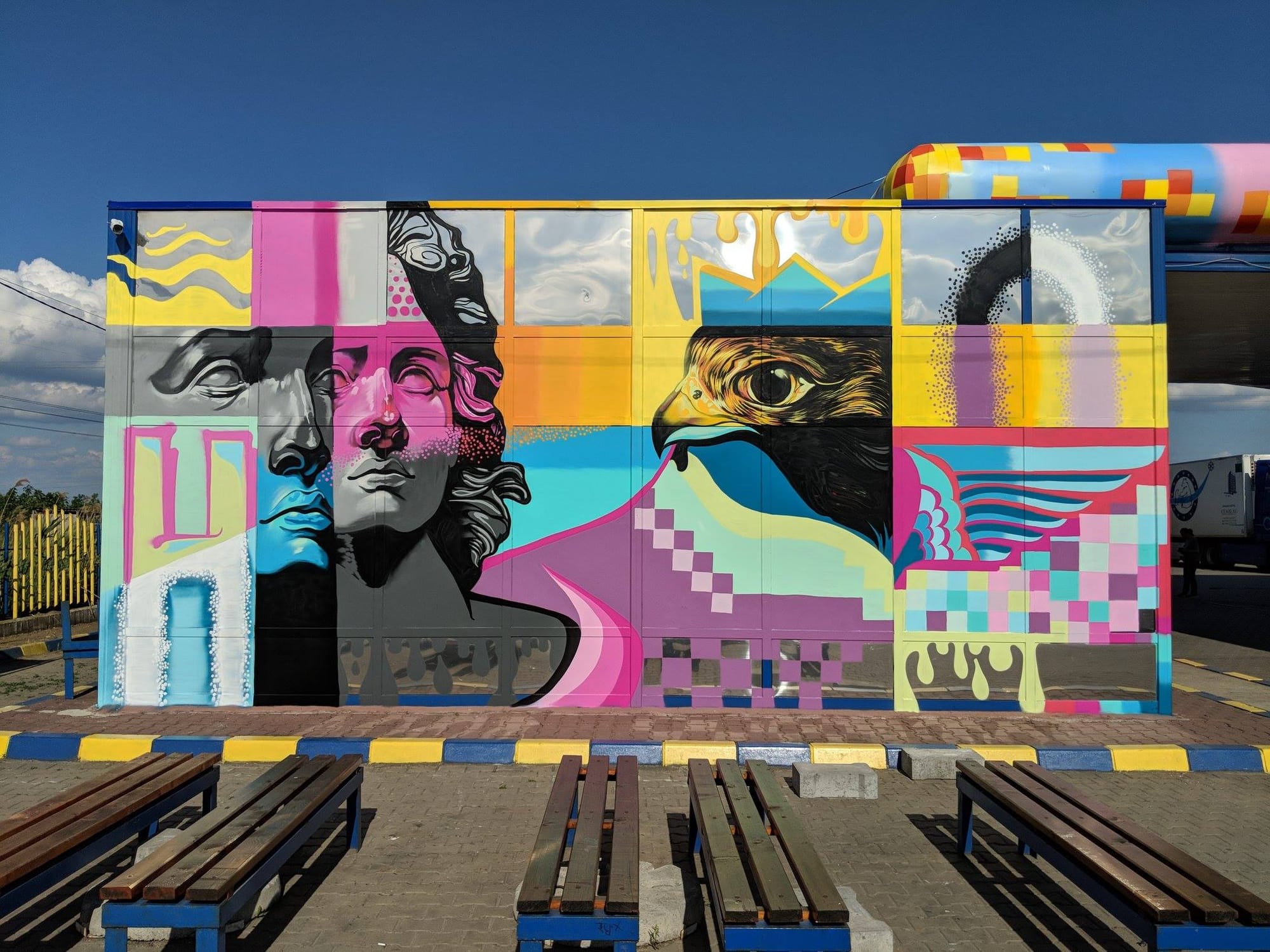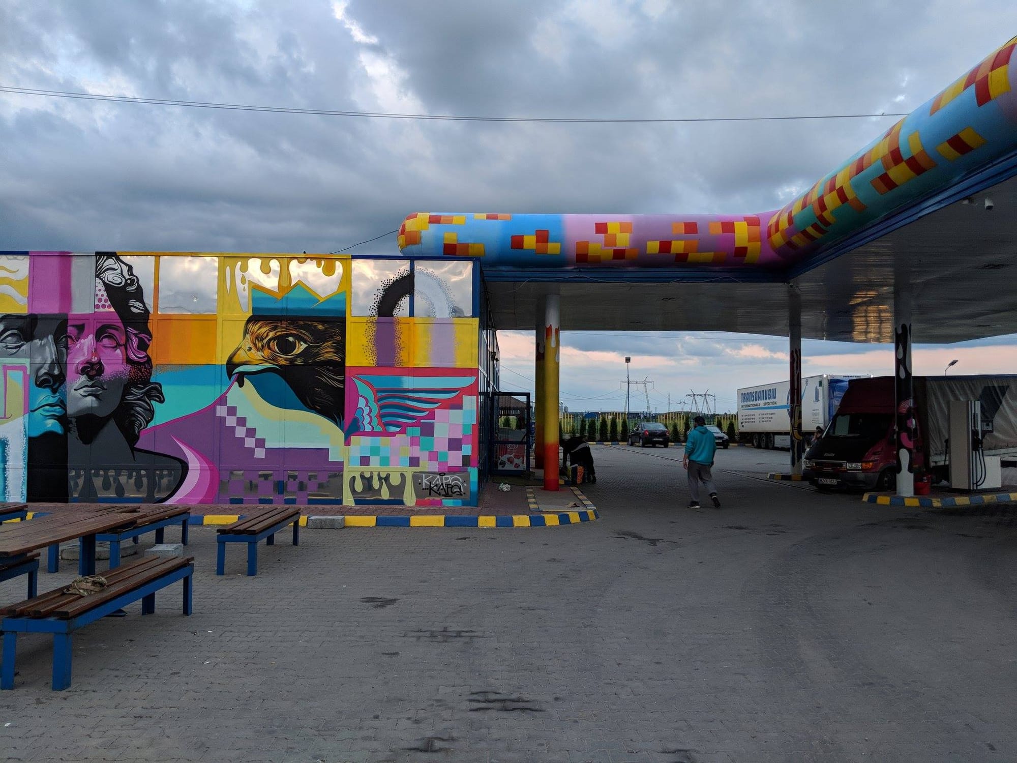 Автозаправочная станция в Румынии стала арт-объектом. Действующую АЗС Helios в 2018 году превратили в произведение современного уличного искусства.