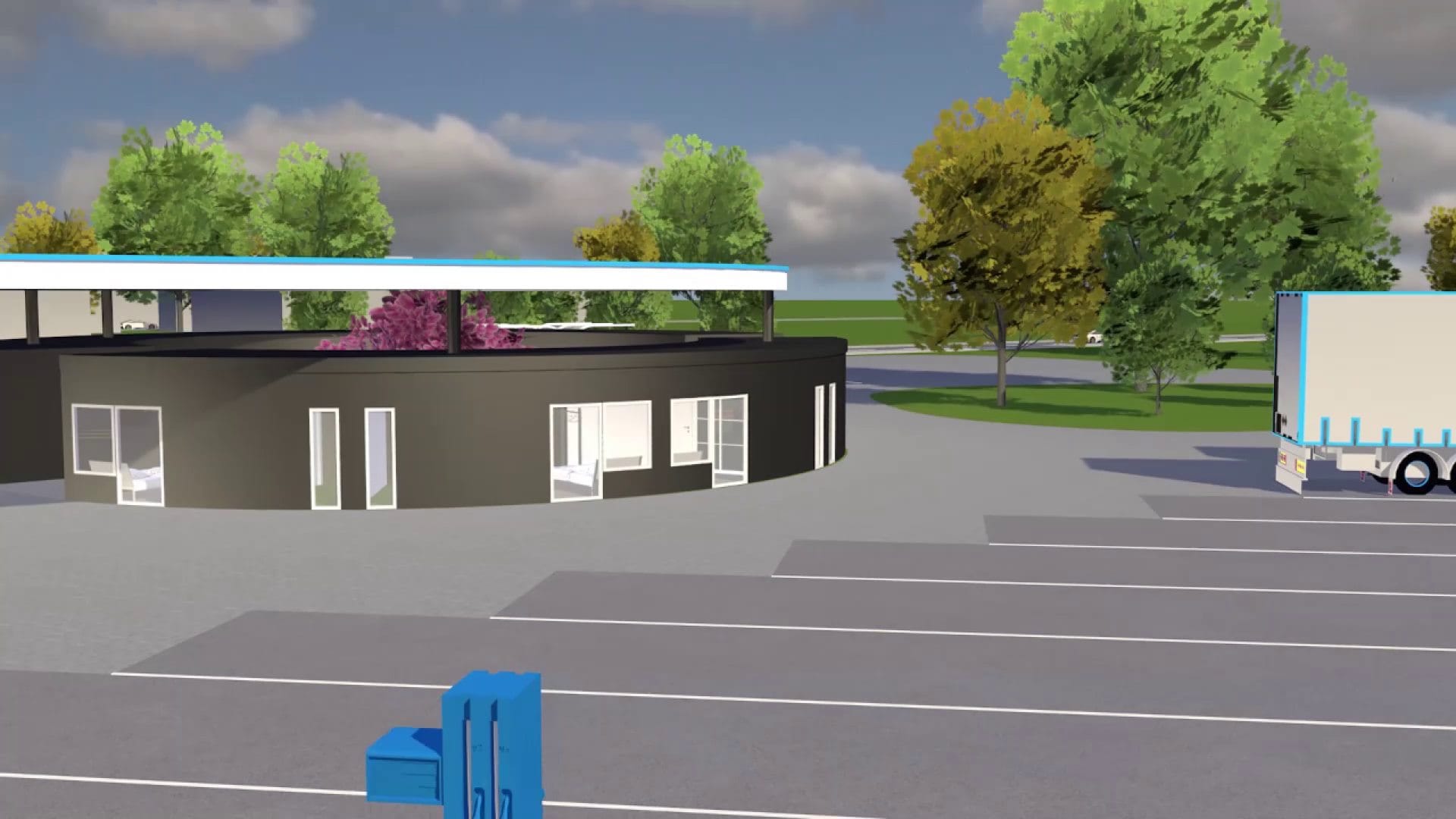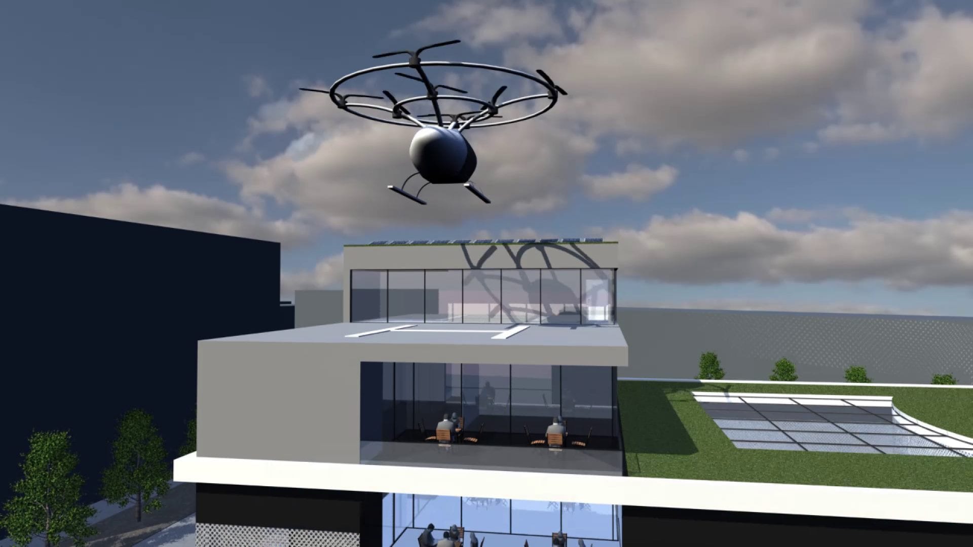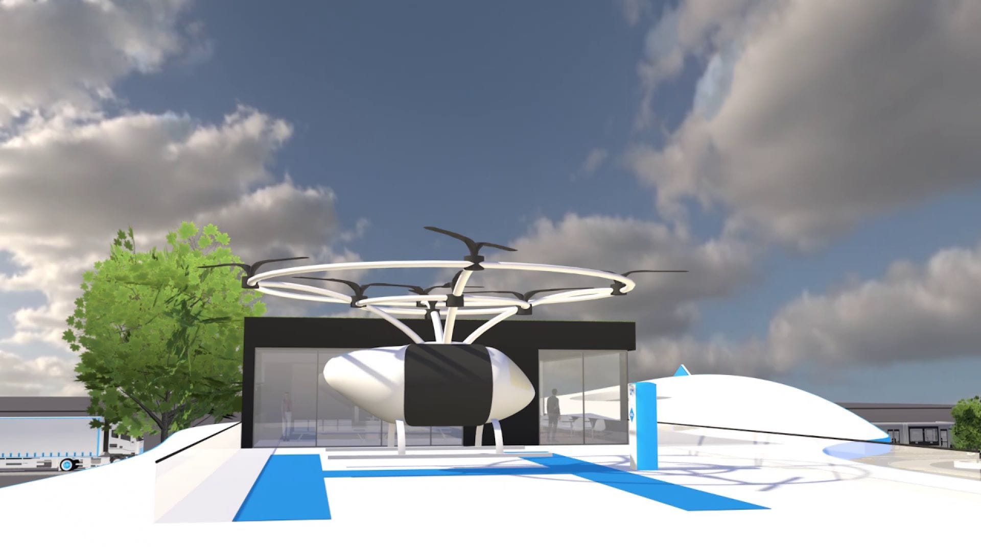 На станции больше свободного пространства, что подходит под размещение СТО и автомойки с высокой пропускной способностью. Кроме того, здесь может предоставляться полный спектр услуг операторам автономных автопарков: от мойки машин до сверхбыстрой зарядки и техобслуживания. Посетители станции могут сделать быстрые покупки в магазине и кафе - свежие продукты, еда на вынос, отдохнуть и перекусить на месте с видом на площадку воздушного такси или воспользоваться услугой пункта доставки.