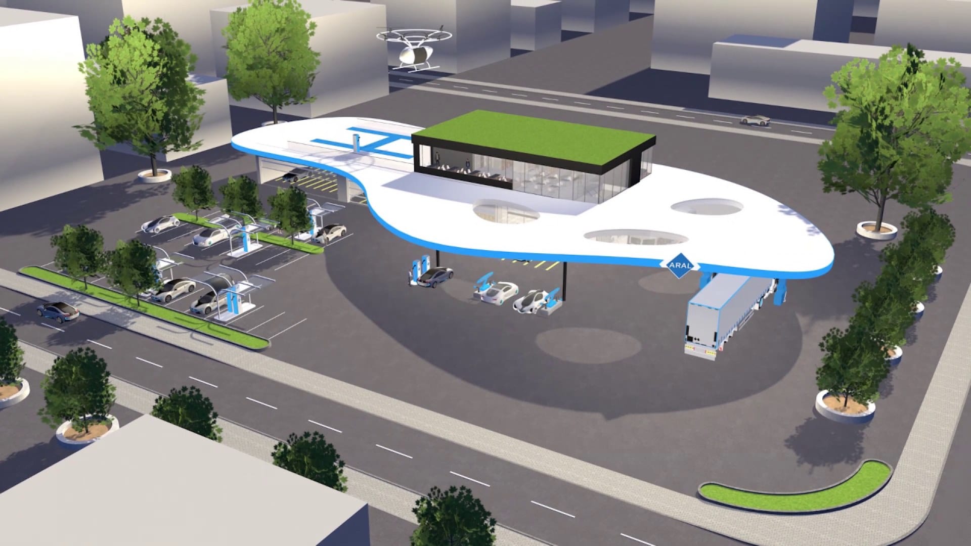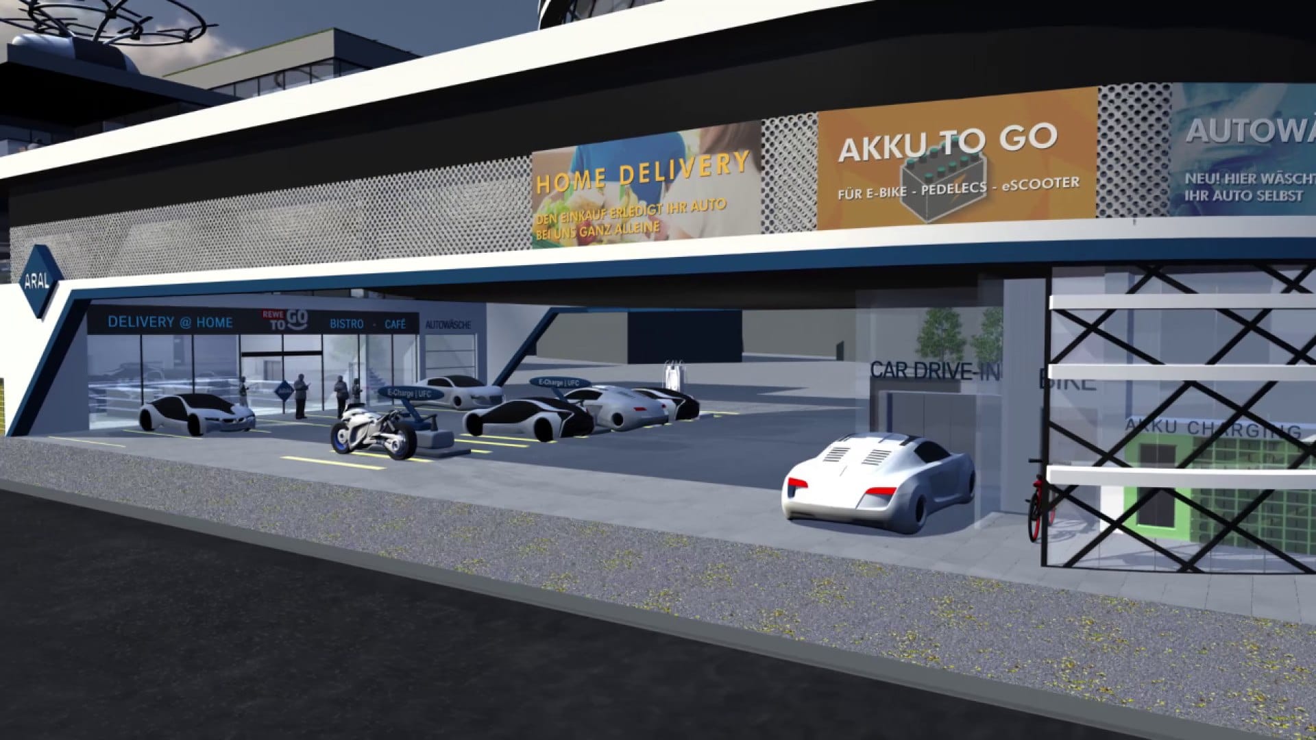 Как будут выглядеть АЗС в будущем? Какую будут играть роль? Как будет меняется предложение услуг станций? Вместе с Институтом транспортных исследований Немецкого аэрокосмического центра (DLR) компания ARAL провела совместное исследование, представив научный прогноз по мобильности и изменениям в бизнесе автозаправочных станций к 2040 году. В нем также содержится видение четырех моделей АЗС будущего - город, пригород, сельская местность и автомагистраль.