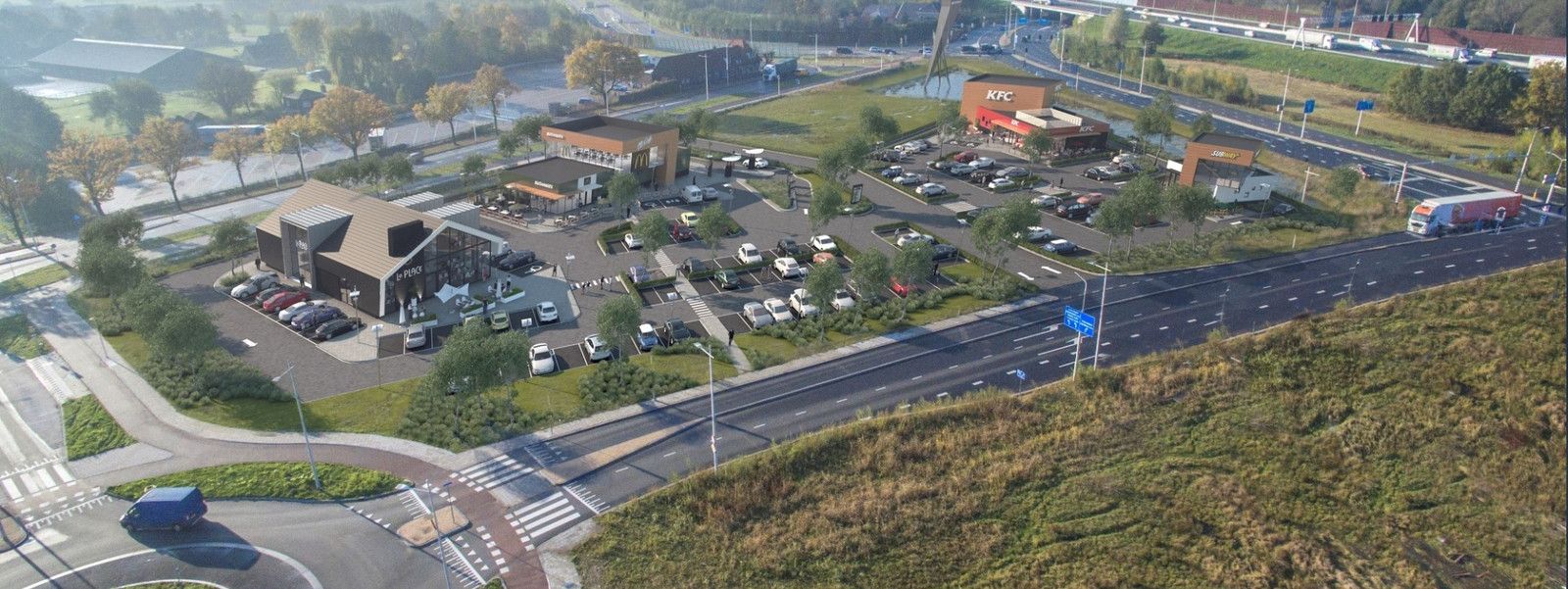 Станция является финальной частью фудкорта Food Court Amersfoort, куда входят крупные сети ресторанов быстрого питания McDonald's, Kentucky Fried Chicken (KFC), Subway и азиатский суши-ресторан Shabu Shabu. Фудкорт был построен за 2,6 миллиона евро, на территории площадью 12000 квадратных метров, с парковкой для автомобилей на 160 мест и 30-метровым рекламным пилоном.