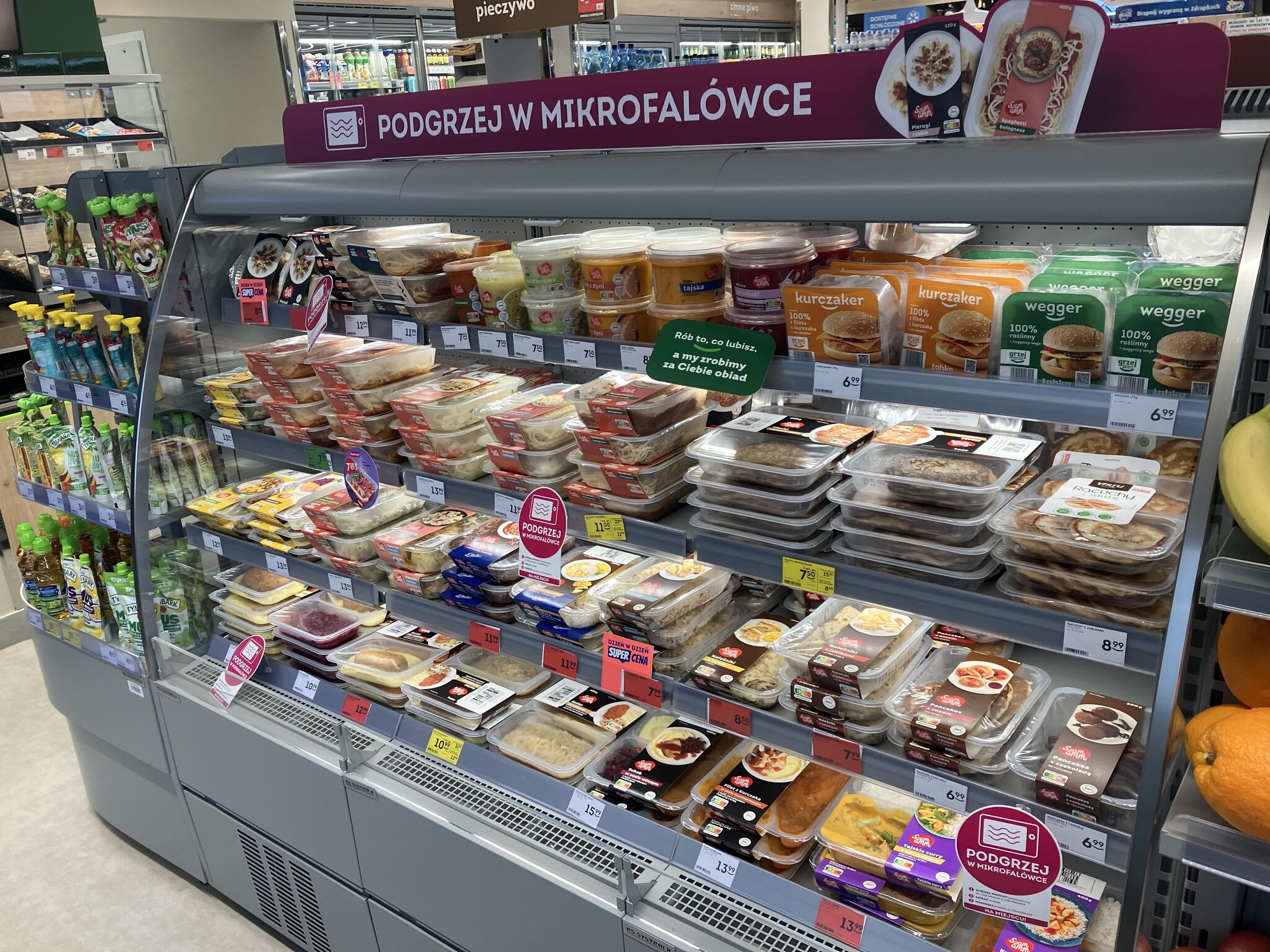 Близлежащий магазин Orlen на автозаправочной станции предлагает, вдвое меньше, около 25 блюд из собственной кухни. Готовые к разогреву блюда, такие как гамбургеры, роллы и т.д., частично готовятся персоналом и выставляются в холодильной витрине. Другие предлагаются, как «шведский стол» без самообслуживания.