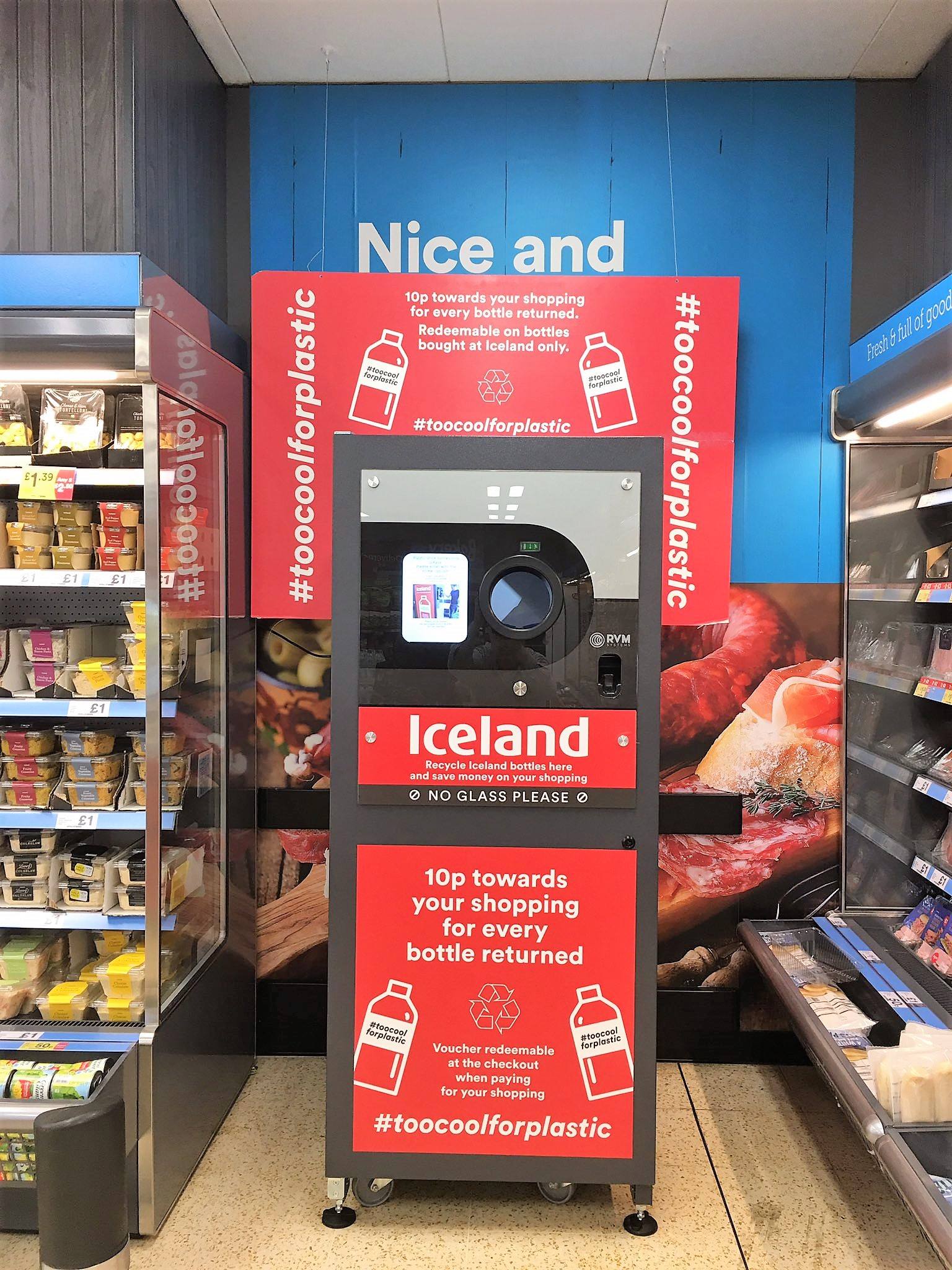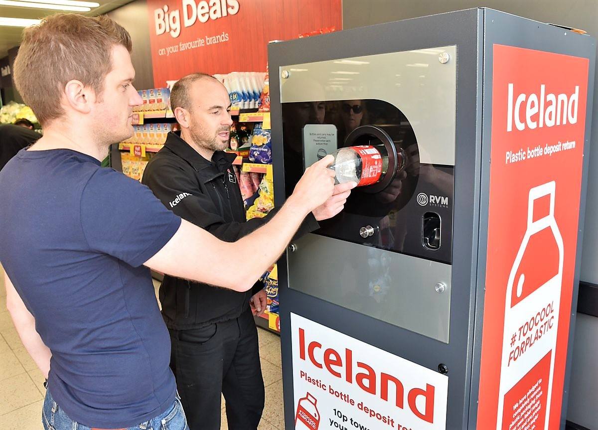 В прошлом году сеть супермаркетов Iceland Foods стала первым британским ритейлером, начавшим принимать пластиковые бутылки на переработку. Компания установила автоматы, позволяющие покупателям возвращать пустые бутылки из-под напитков, купленных в магазинах сети и получать взамен вознаграждение. Первые тестовые автоматы, в мае 2018 года, установили в четырех магазинах и в главном офисе компании в Вулвергемптоне, Молде, Фулхэме, Масселборо и Дисайде.