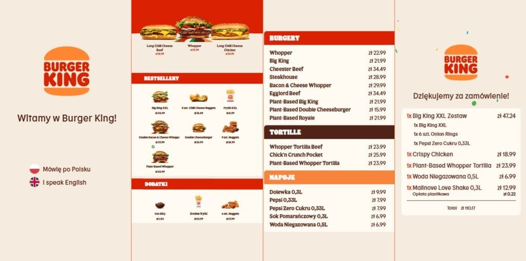 Благодаря использованию искусственного интеллекта Burger King вводит на польский рынок новый формат обслуживания Drive Thru. Клиент, оформляя заказ, разговаривает с ИИ-агентом, а на интерактивном экране в реальном времени видит ход диалога и текущий статус заказа. Весь процесс — от принятия заказа до его передачи в системы ресторана — происходит автоматически, высвобождая сотрудникам время для других задач.