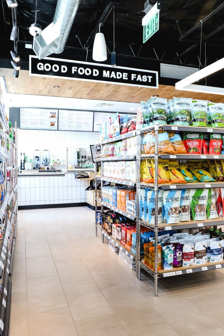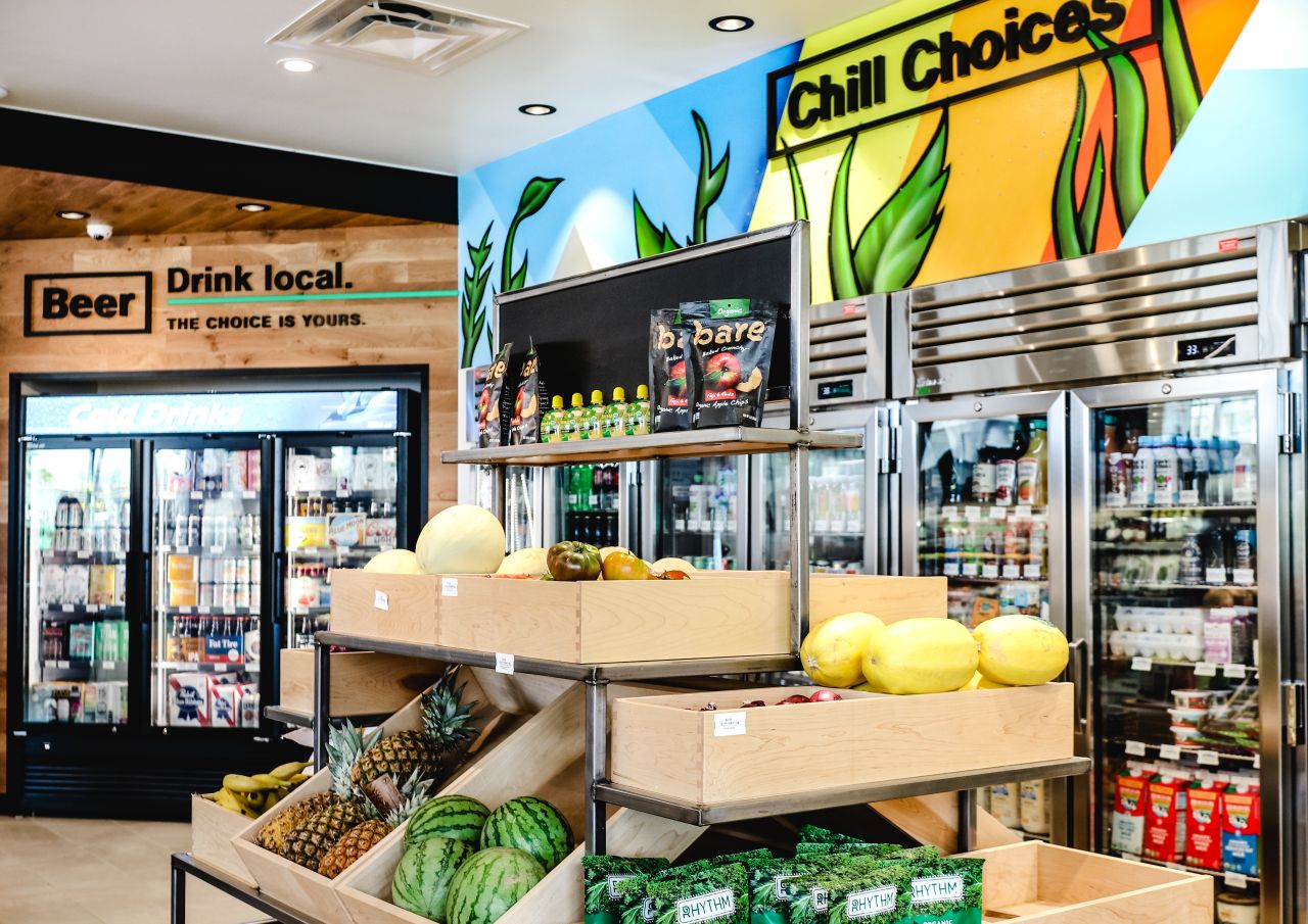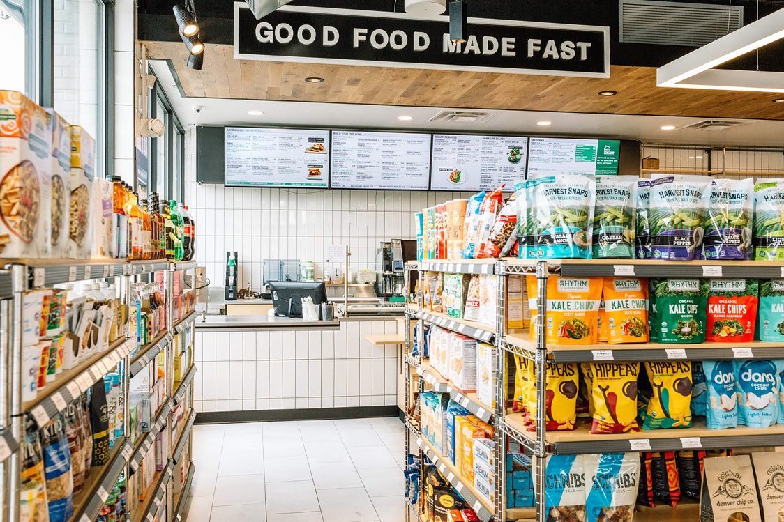 Флагманский магазин в Денвере (штат Колорадо, США), площадью около 240 м2, предлагает покупателям свыше 2000 наименований товаров повседневного спроса. Готовые к употреблению продукты питания составляют половину продаж. По данным NACS, в целом по США общий объем доли общественного питания в магазинах приближается к 25%.