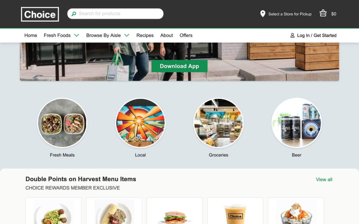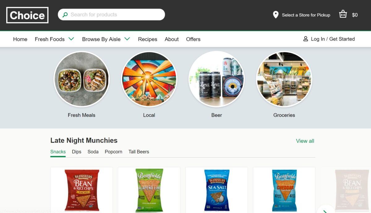 Сайт служит центром обновленного предложения Choice Market по доставке. Раньше большинство заказов обрабатывались третьими сторонами, вследствие чего конечные затраты для потребителя могли варьироваться, а компания не имела доступа к большей части данных о покупателях.