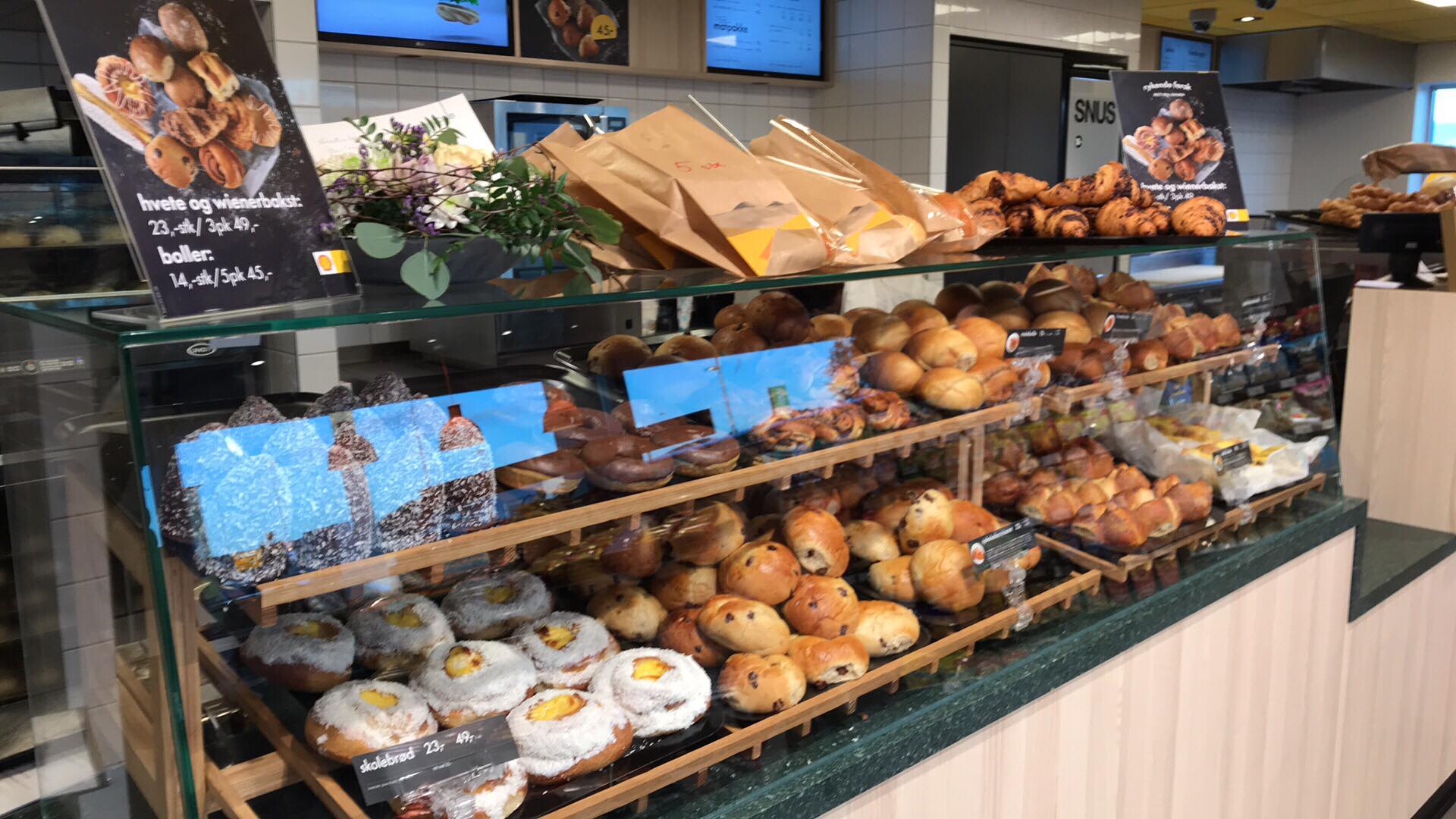 Выпечку можно приобрести горячей прямо из духовки. В пекарнях на станциях производится широкий ассортимент хлебобулочных и кондитерских изделий. Пекари и кондитеры Shell разработали собственные рецепты, такие как булки с корицей или школьный хлеб. В продаже представлены и популярные классические изделия, например, булки из пшеницы, с шоколадом, венские булочки с изюмом.