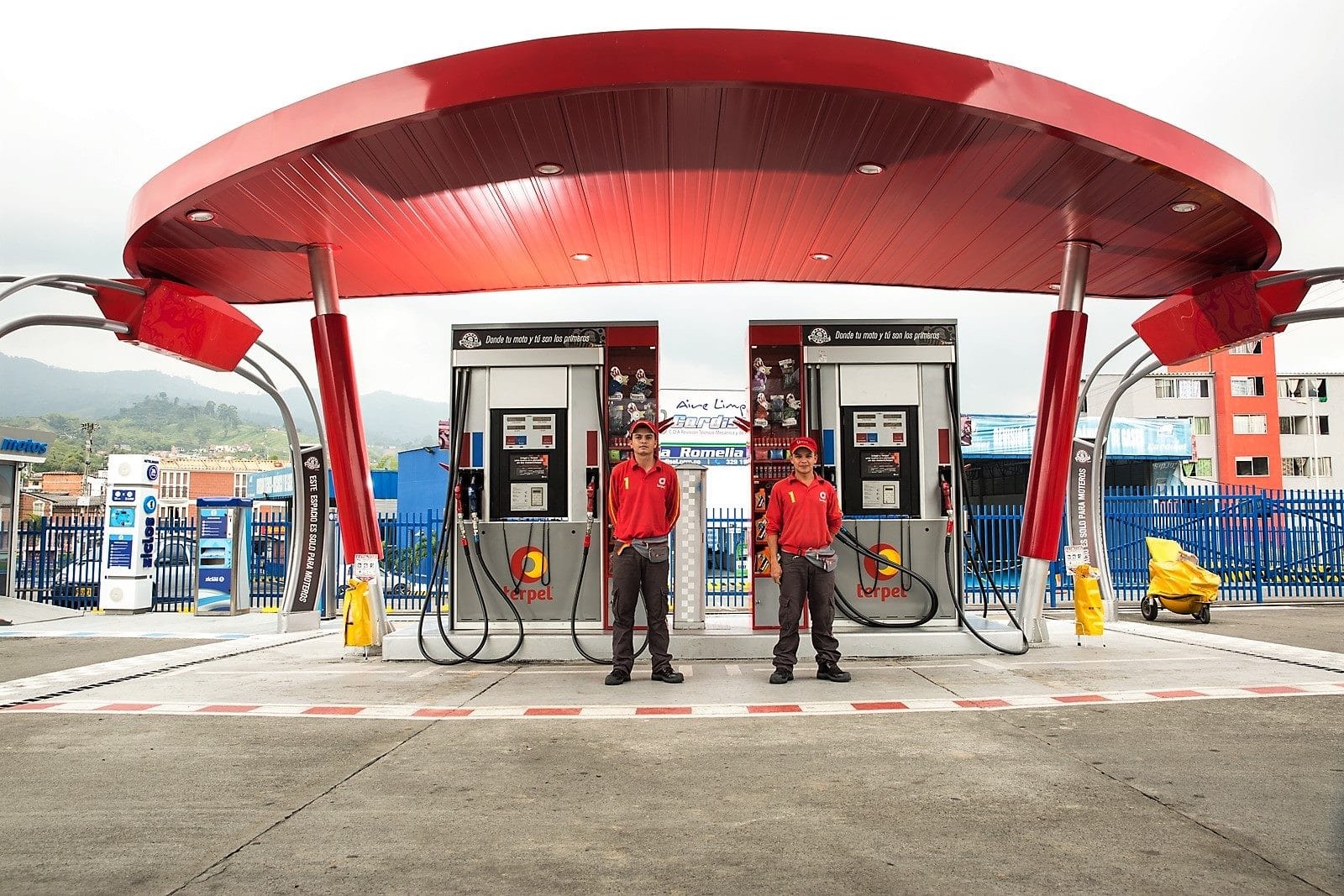 В зоне заправки установлены современные топливо-раздаточные колонки ТРК, предназначенные исключительно для заправки мотоциклов. Одновременно смогут заправляться четыре мотоцикла, что сделает обслуживание быстрым. Кроме того, мотоциклисты будут иметь в своем распоряжении весь ассортимент смазочных материалов Terpel Celerity, ведущего бренда в этом сегменте и дополнительных услуг, начиная от подкачки шин и присадок, до, например, специальных средств для очистки внутренней поверхности шлема.