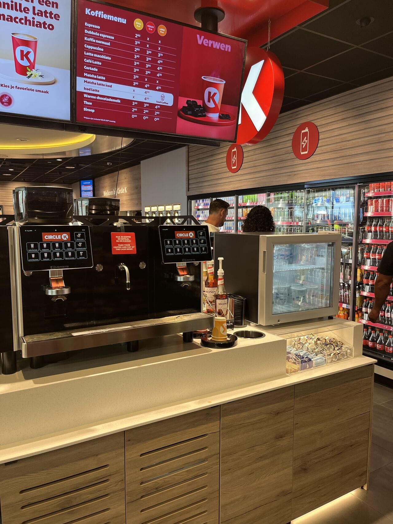 «Кофейня в миниатюре»? Circle K в Нидерландах меняет привычный подход к организации кофе-корнера на АЗС. Вместо пары кофемашин они установили один суперавтомат Eversys Enigma с двумя постами. Она позволяет готовить напитки одновременно в режиме самообслуживания, но управляется как единый комплекс.