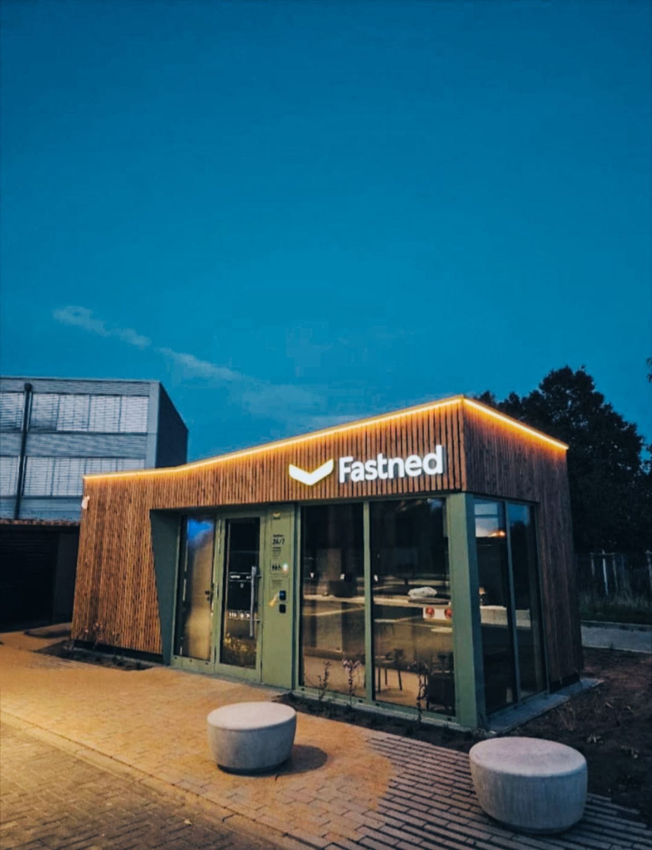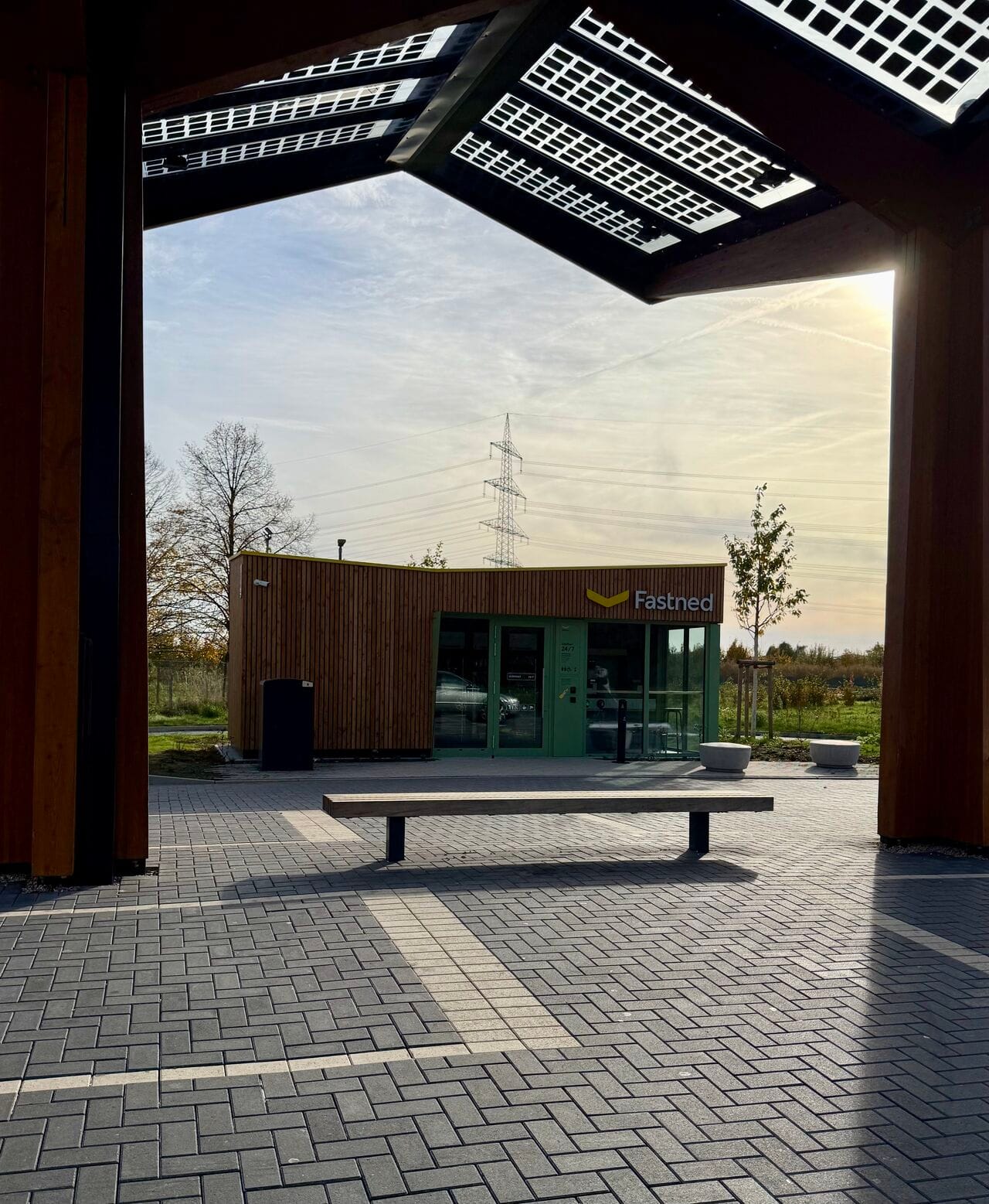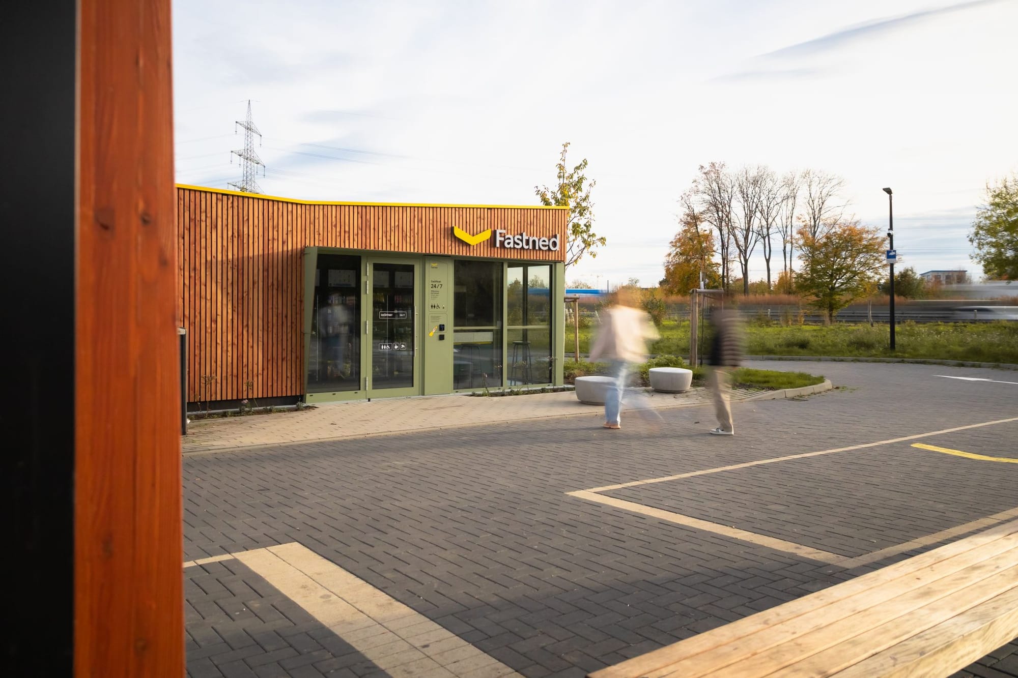Fastned открыла торговый киоск нового поколения — полностью автономный, сборно-модульный объект, установленный непосредственно на зарядном хабе компании в Дюрeне (Германия). Объект работает 24/7, открыт для всех водителей и полностью безбарьерный.