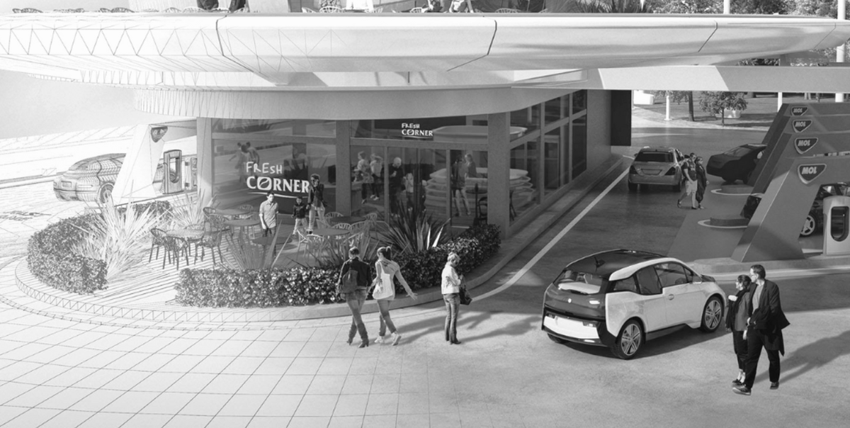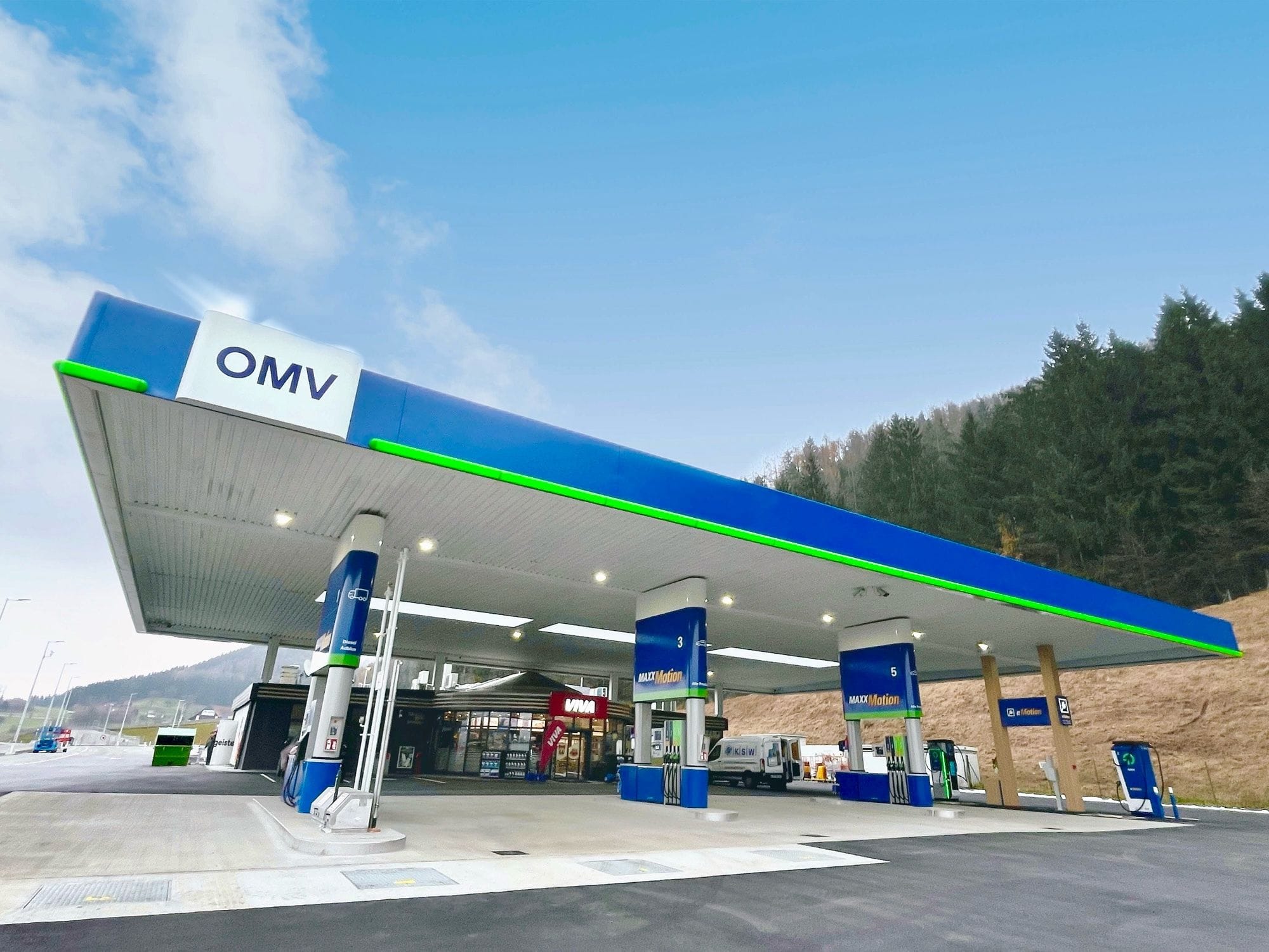 OMV открыла модернизированную автозаправочную станцию в Капфенберг-Кроттендорфе (Австрия). Проект включал не только технологическое обновление инфраструктуры – замену топливных резервуаров, установку ТРК последнего поколения и мощных зарядных станций для электромобилей, но и современный подход к организации торгового пространства. Магазин получил новое планировочное решение, удобный клиентский путь и функциональные зоны для отдыха, включая летнюю террасу и детскую площадку. Отдельные элементы демонстрируют, как продуманный дизайн помогает улучшить восприятие магазина и организовать взаимодействие покупателей с товаром.