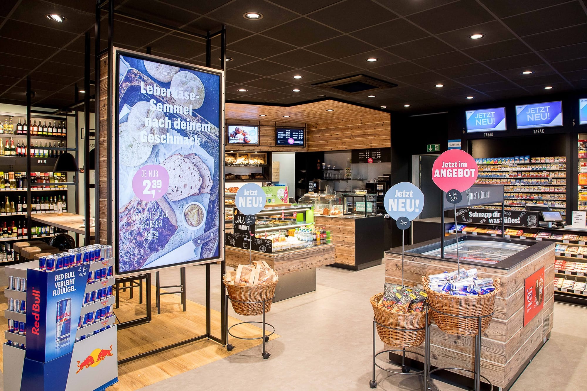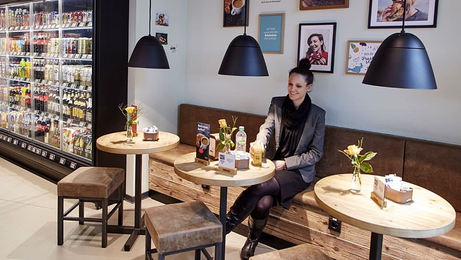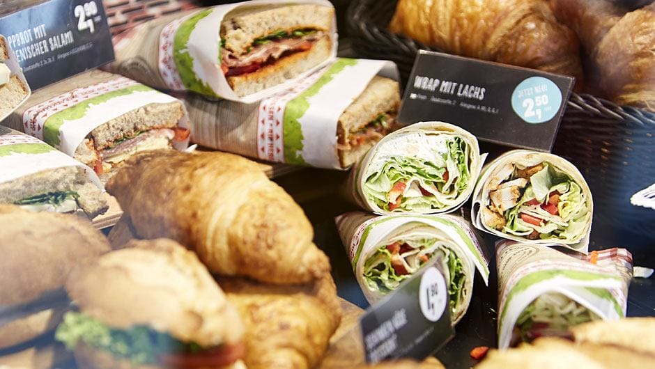 Предложение услуг общественного питания находится на переднем плане благодаря пекарне, гриль-бару и большому выбору свежеприготовленных продуктов. Ежедневно выпекается широкий ассортимент хлебобулочных и кондитерских изделий. Пользуется популярностью предложение меню “Три блюда” по привлекательной цене. За 4,99 евро клиенты могут выбрать основное блюдо, десерт и напиток. Новинкой является “сладкая чашка”, которую можно самостоятельно заполнить расфасованными конфетами по фиксироанной цене от 3,99 до 4,99 евро.