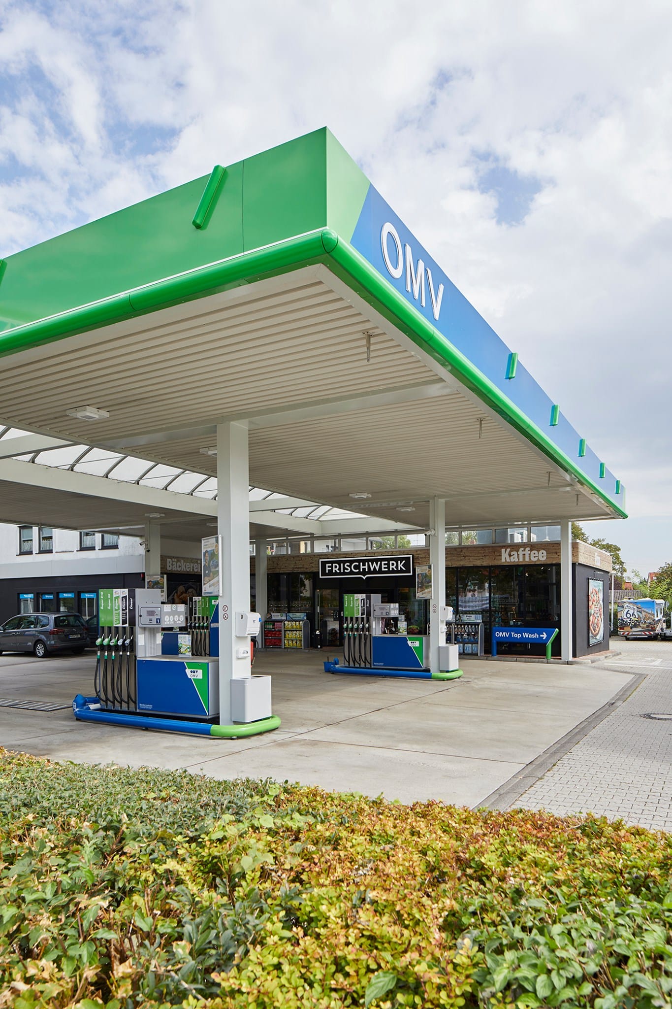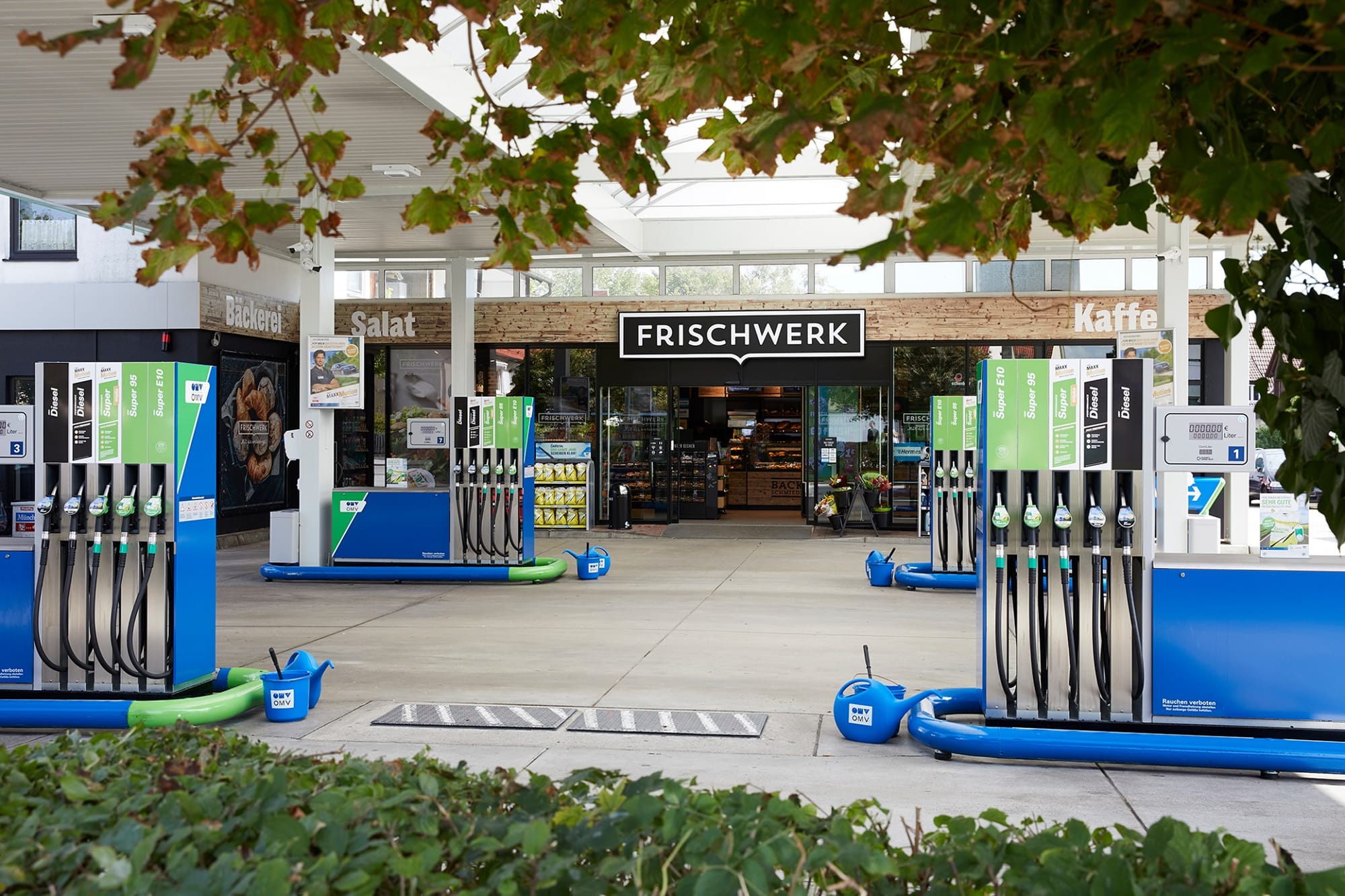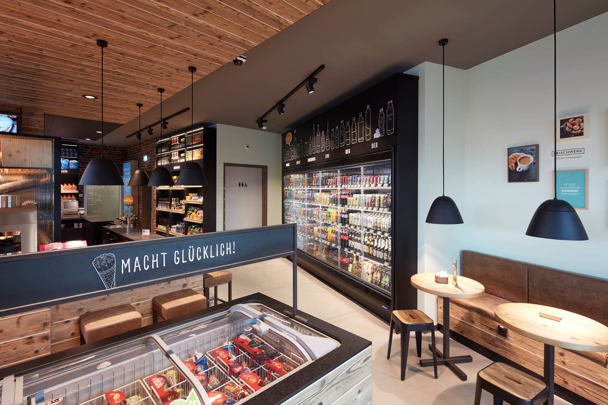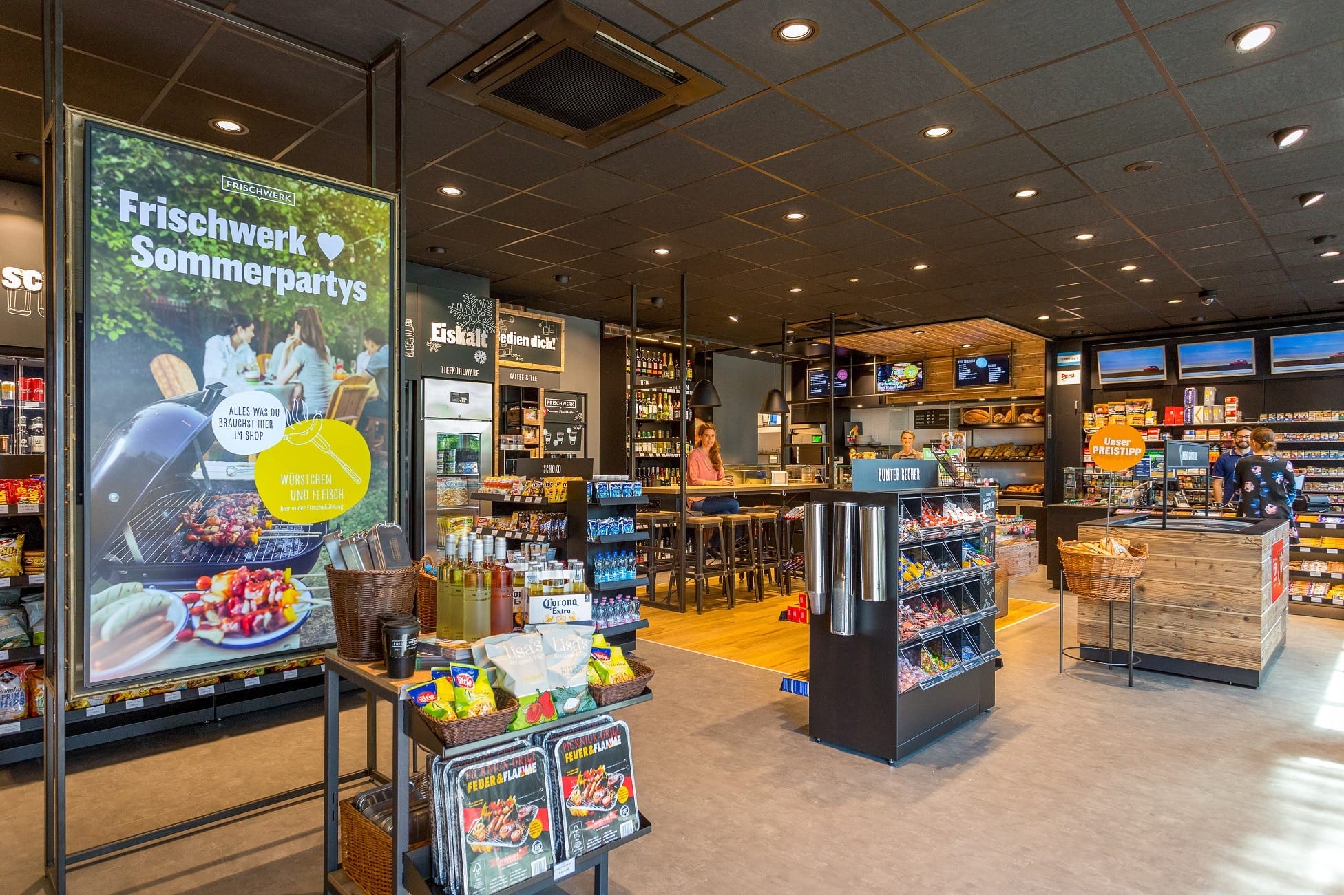 Немецкая оптовая компания Lekkerland разработала целостную концепцию Frischwerk, чтобы повысить привлекательность, прибыльность и конкурентоспособность магазинов на автозаправочных комплексах. Особенностью формата является удачная интеграция и четкое пространственное разделение пекарни, ресторанного сервиса и классического магазина АЗС. Магазин может быть адаптирован к различным станциям, как в крупных, так и небольших городах, с площадью от 65 м2.