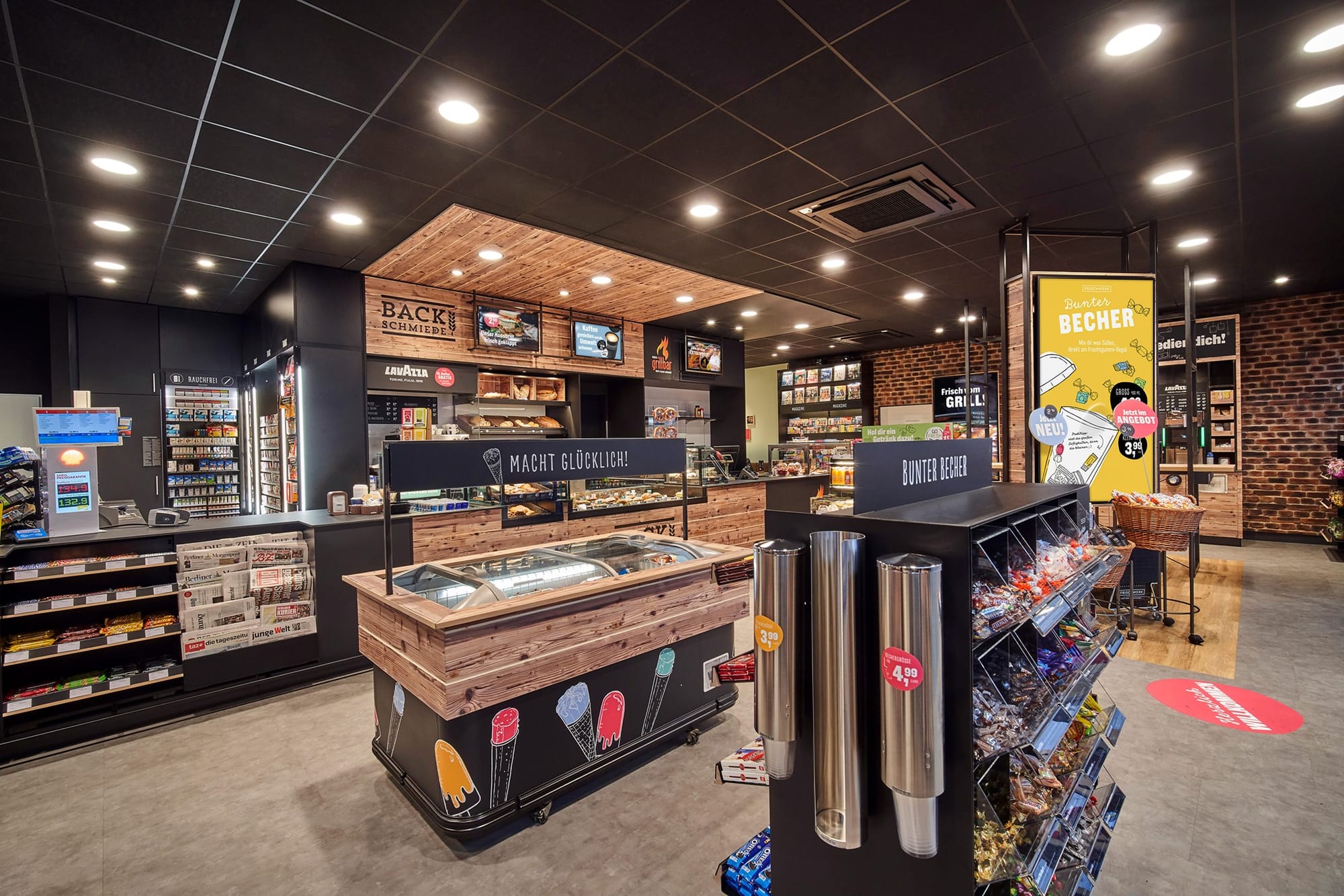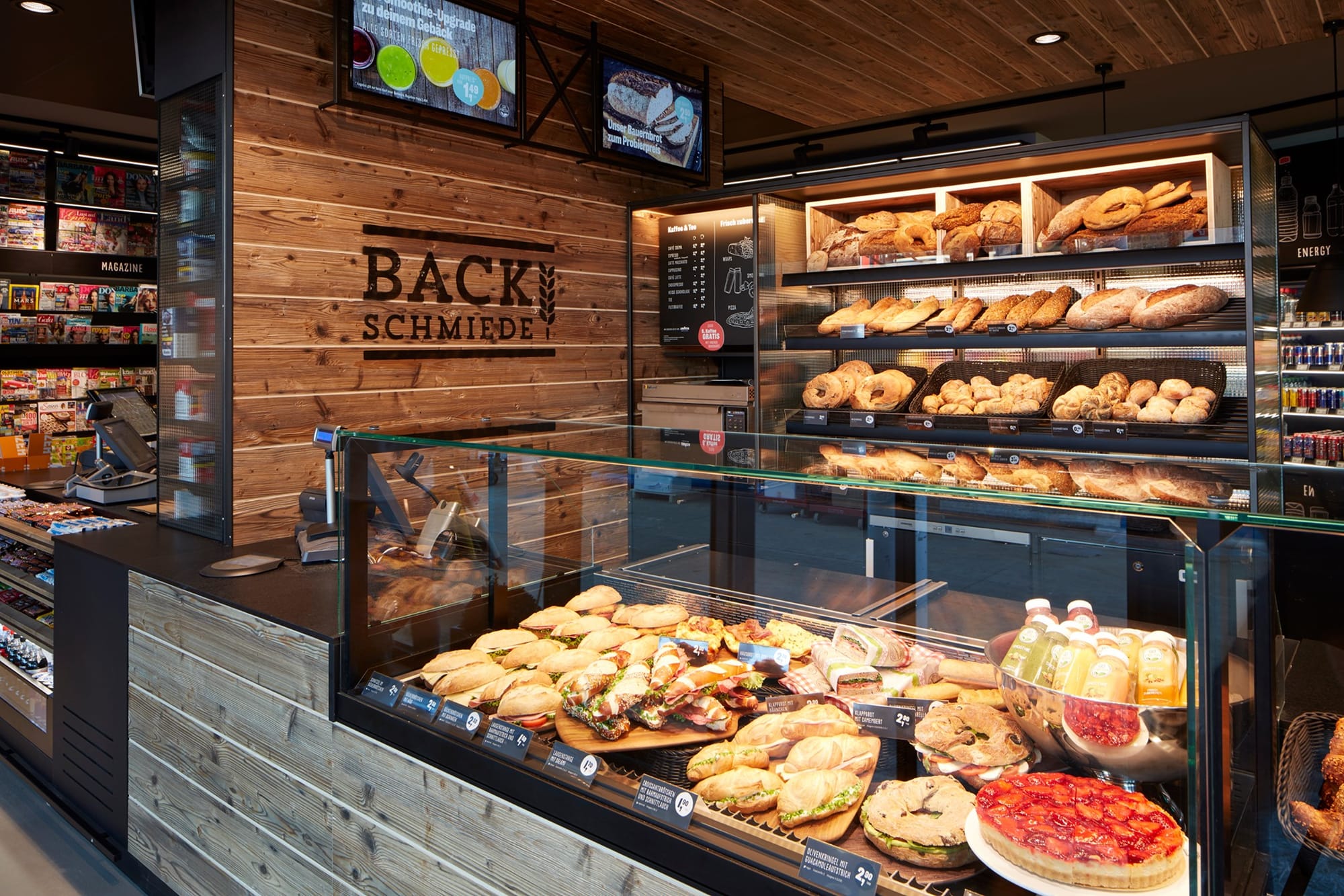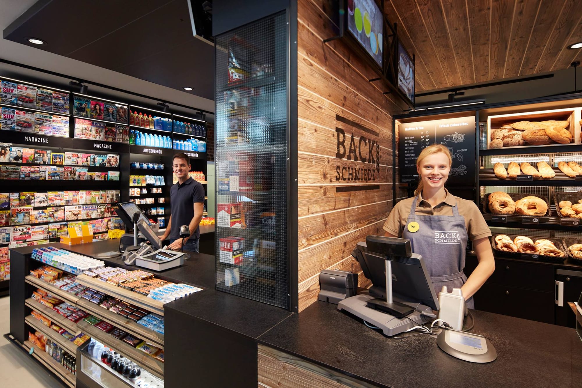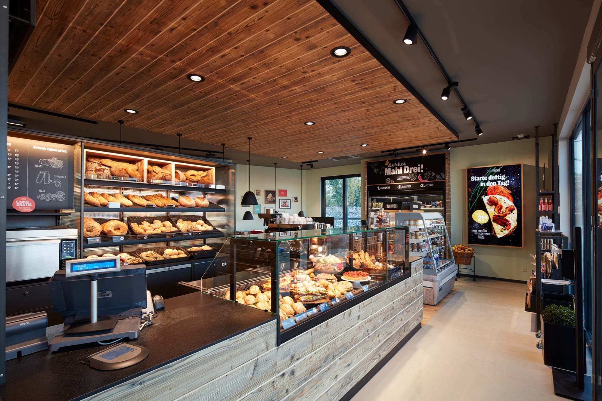 Немецкая оптовая компания Lekkerland разработала целостную концепцию Frischwerk, чтобы повысить привлекательность, прибыльность и конкурентоспособность магазинов на автозаправочных комплексах. Особенностью формата является удачная интеграция и четкое пространственное разделение пекарни, ресторанного сервиса и классического магазина АЗС. Магазин может быть адаптирован к различным станциям, как в крупных, так и небольших городах, с площадью от 65 м2.