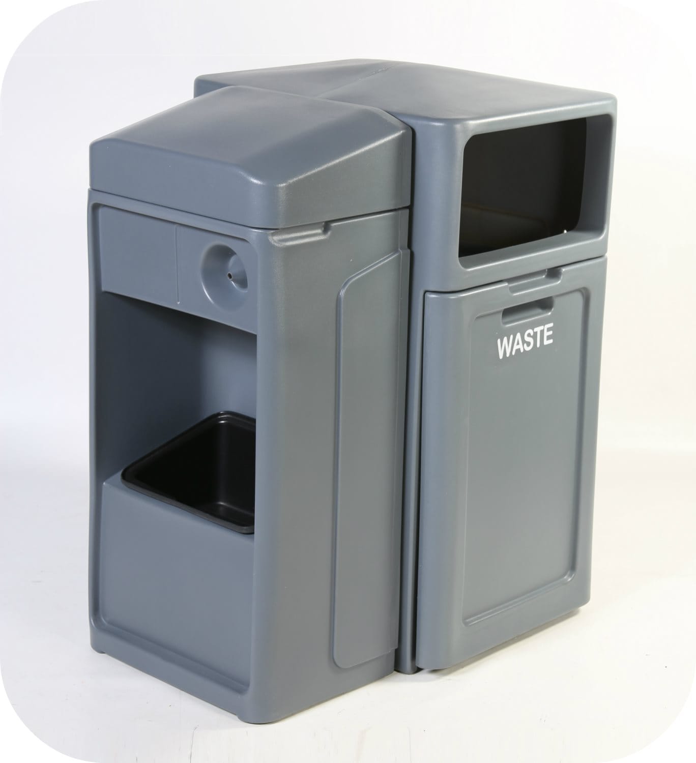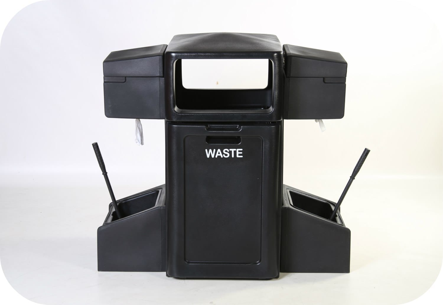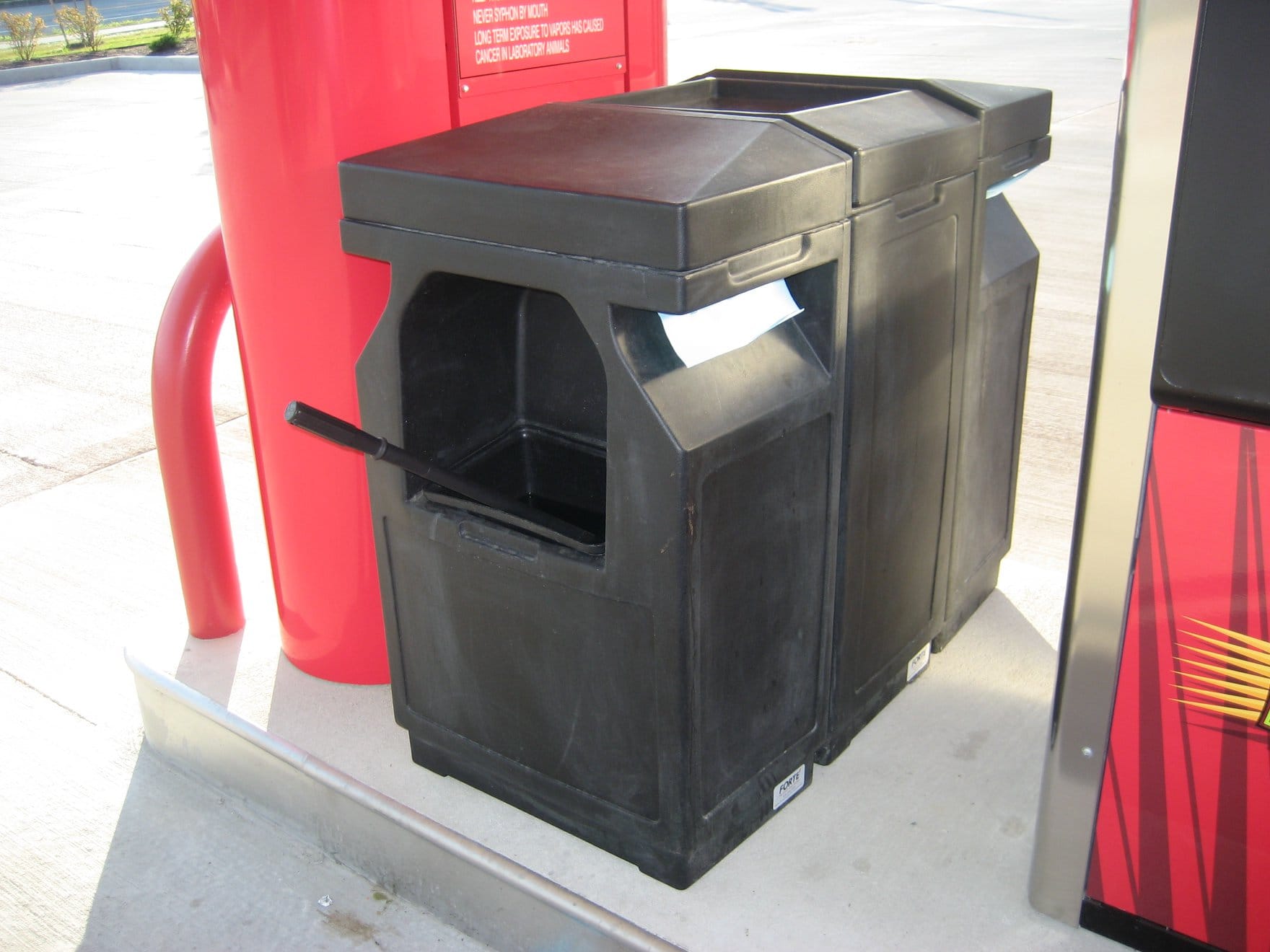 Комбинированный инвентарь на АЗС обеспечивает удобный и легкий доступ к уличной урне для мусора, диспенсеру для бумажных полотенец, емкости для мытья стекол автомобилей. Модели из прочного пластика выпускаются различного вида, стиля и функциональности. Они изготовлены с защитой от выцветания и механических повреждений. Стандартное исполнение продукции в сером или черном цветах, но могут быть и в других расцветках в соответствии с фирменным стилем компании.