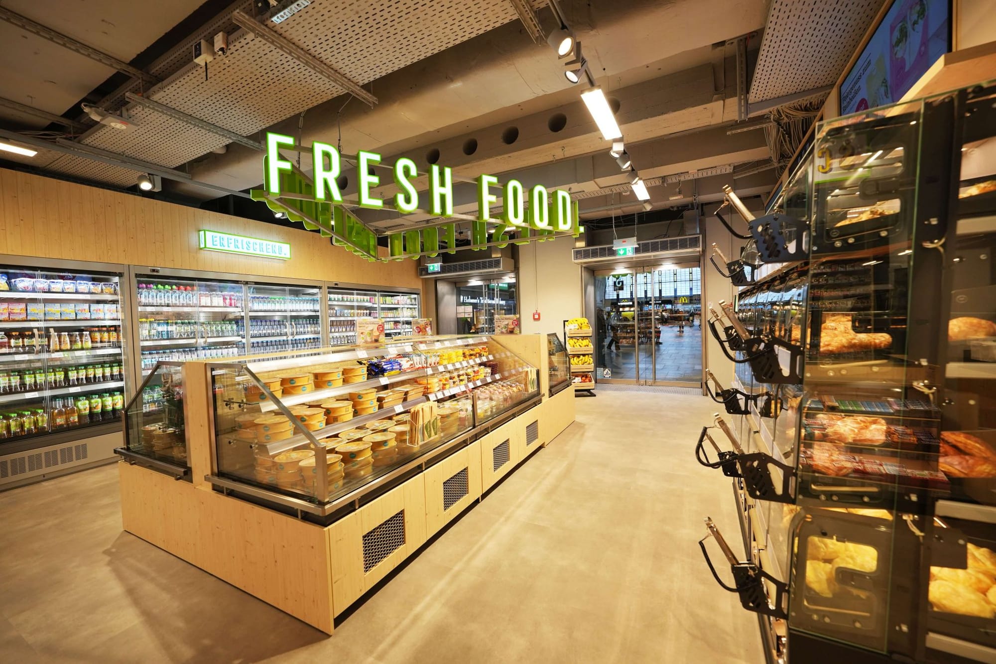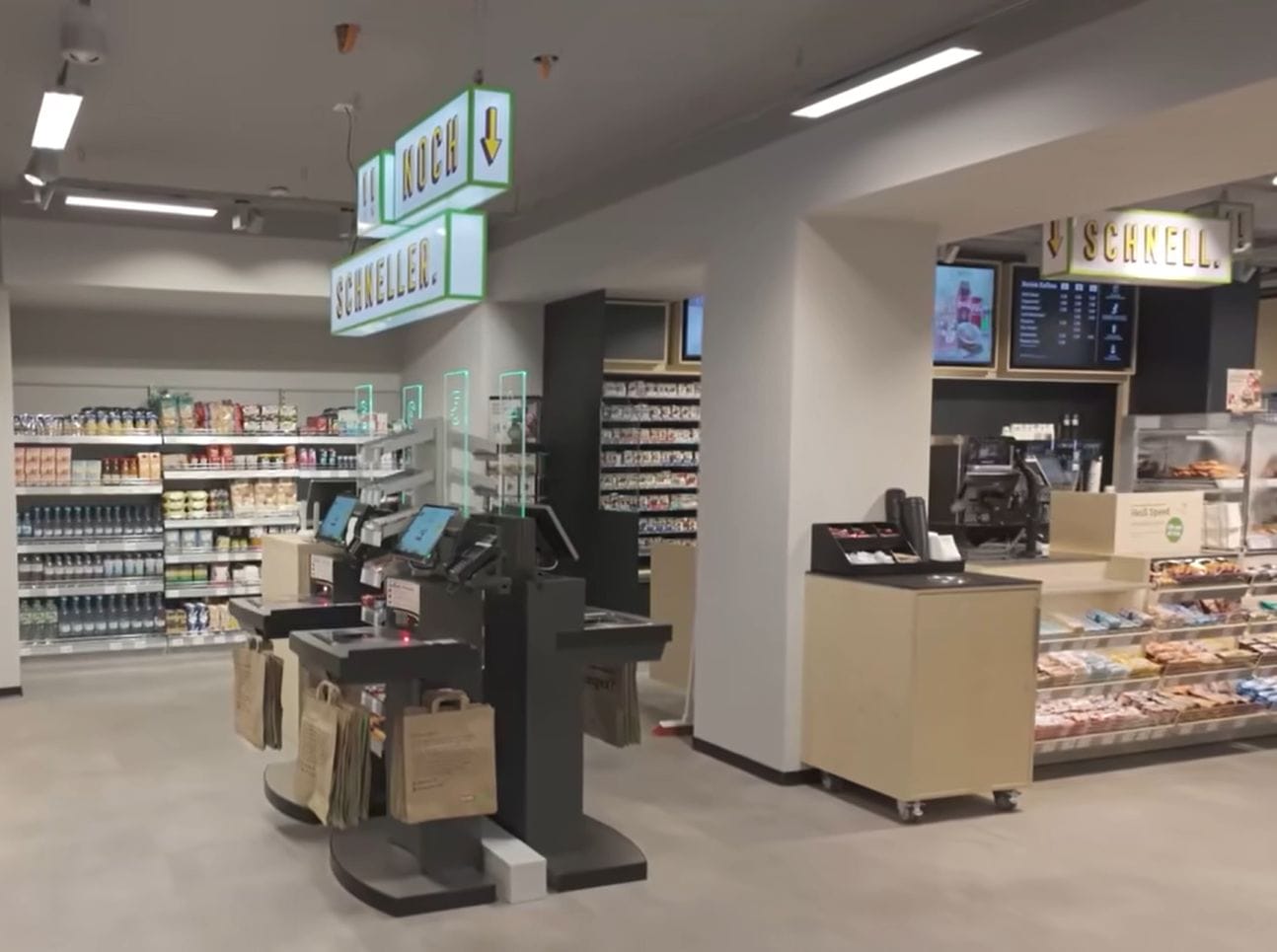 Площадь торговой точки открывшийся на главном вокзале Карлсруэ (Германия) составляет 145 м2. Планировка сочетает в себе прилавки и эффективное самообслуживание, в том числе с помощью 4 касс, обеспечивая бесперебойный поток даже в часы пик.