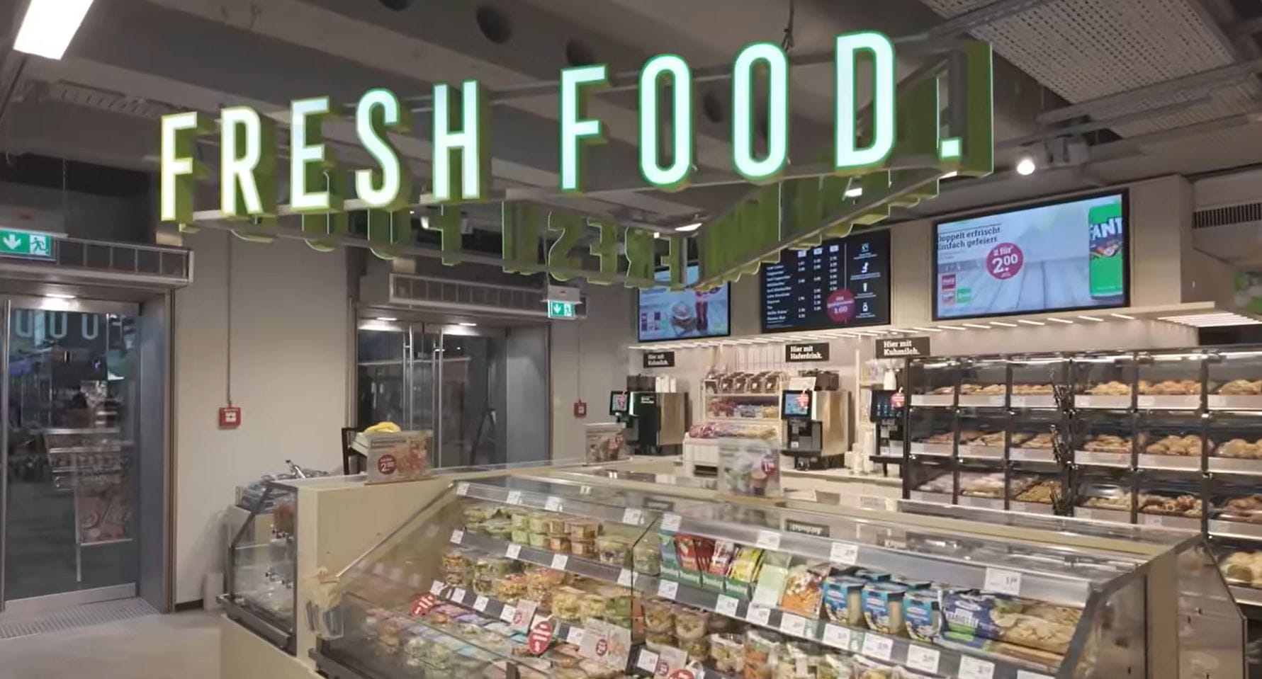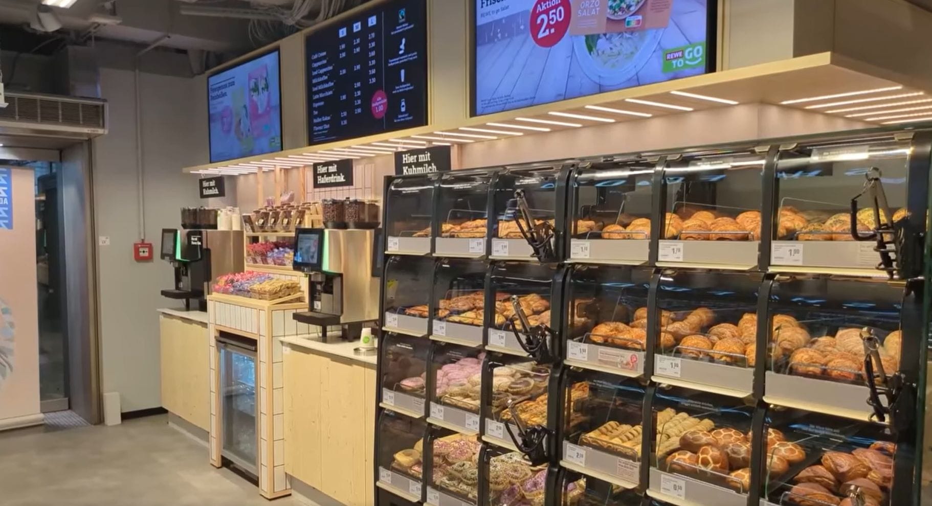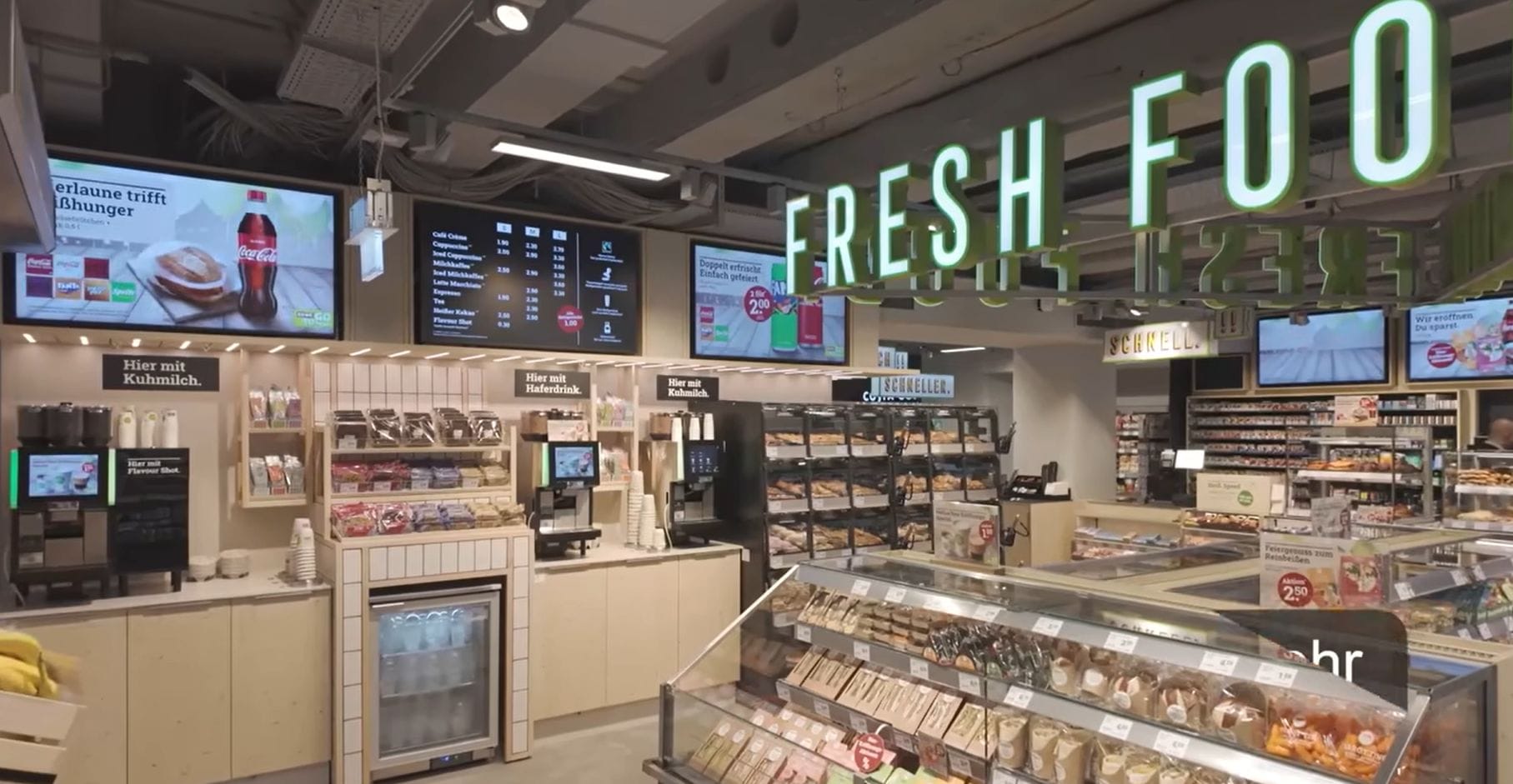 Хороший кейс нового магазина REWE To Go — гибридный формат, объединивший продуктовый ритейл, фаст-фуд и ready-to-eat (еда навынос). Все в одном пространстве и оптимизировано для локаций с высоким трафиком. Специально разработан под критерии — скорость, свежесть и немедленная покупка. Чем не АЗС?