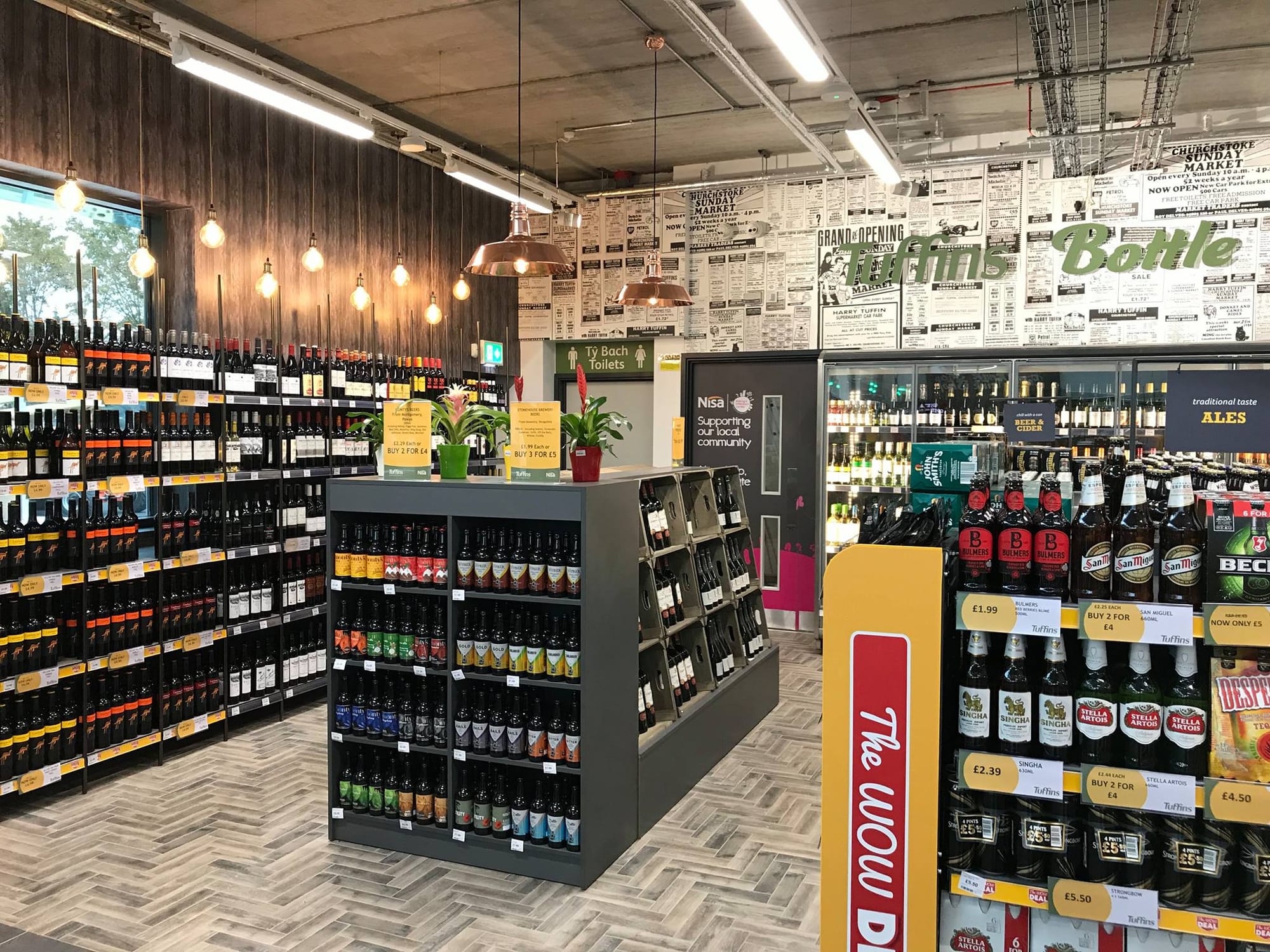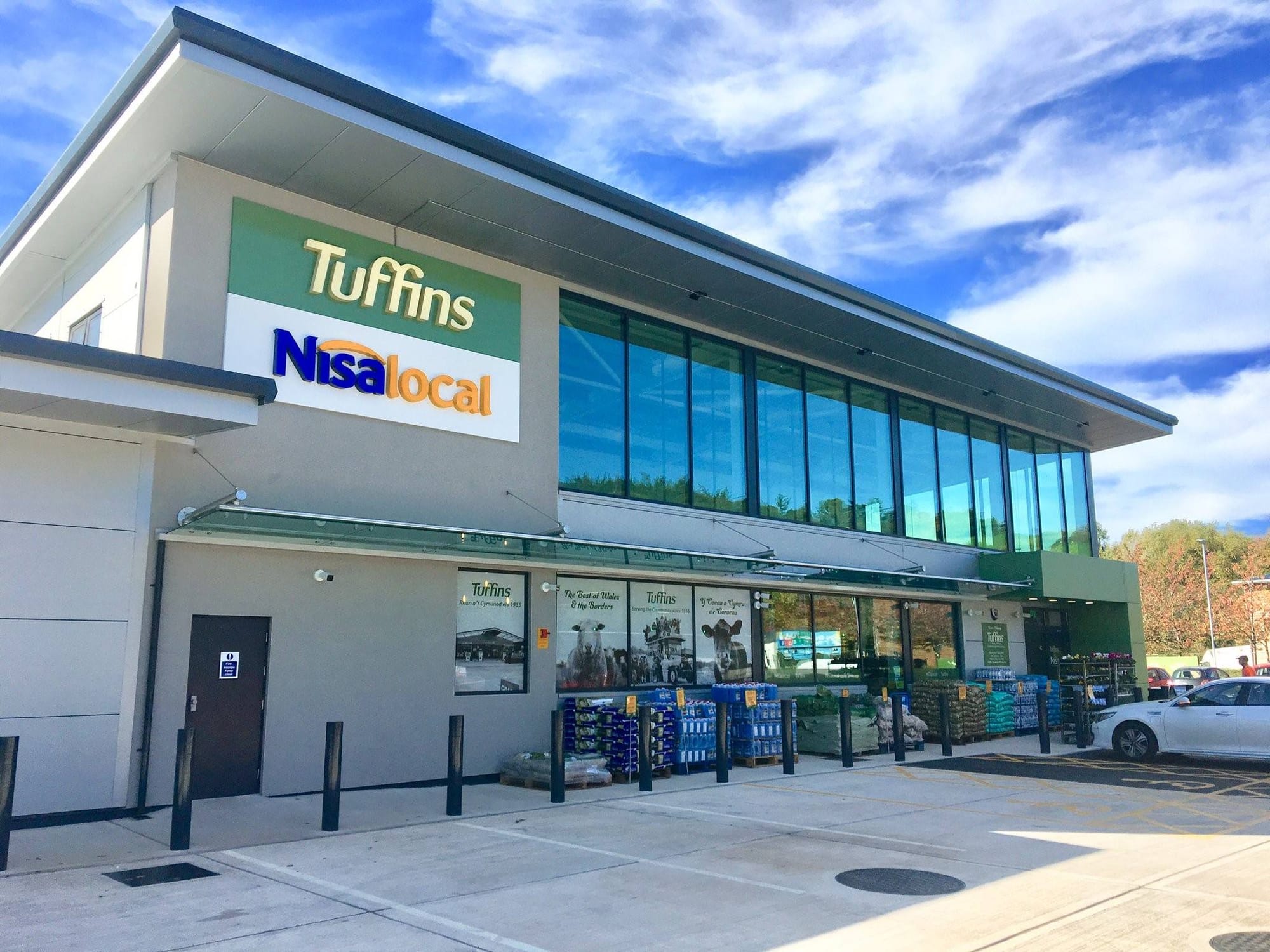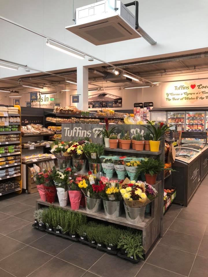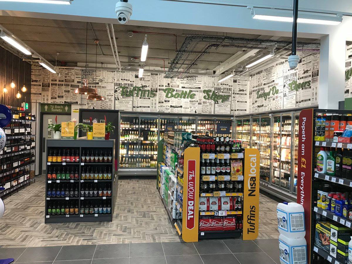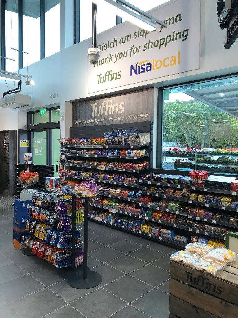 В магазине, площадью около 280 кв.м, установлены специальные напольные стеллажи под группы товаров и холодильное оборудование. В дизайне интерьера использованы медные светильники и лампы в отделе спиртных напитков, деревянная подставка для цветов и растений, персонализированные обои, включающие рекламные объявления от Tuffins, относящиеся к 70-м годам, и сделанные на заказ изображения с использованием английского и валлийского языков. АЗС оснащена 6 топливораздаточными колонками, которые работают круглосуточно. За первую неделю работы выручка составила 80000 фунтов стерлингов - реализация топлива и 30000 фунтов - товары в магазине. #Магазин был построен за 6 месяцев.