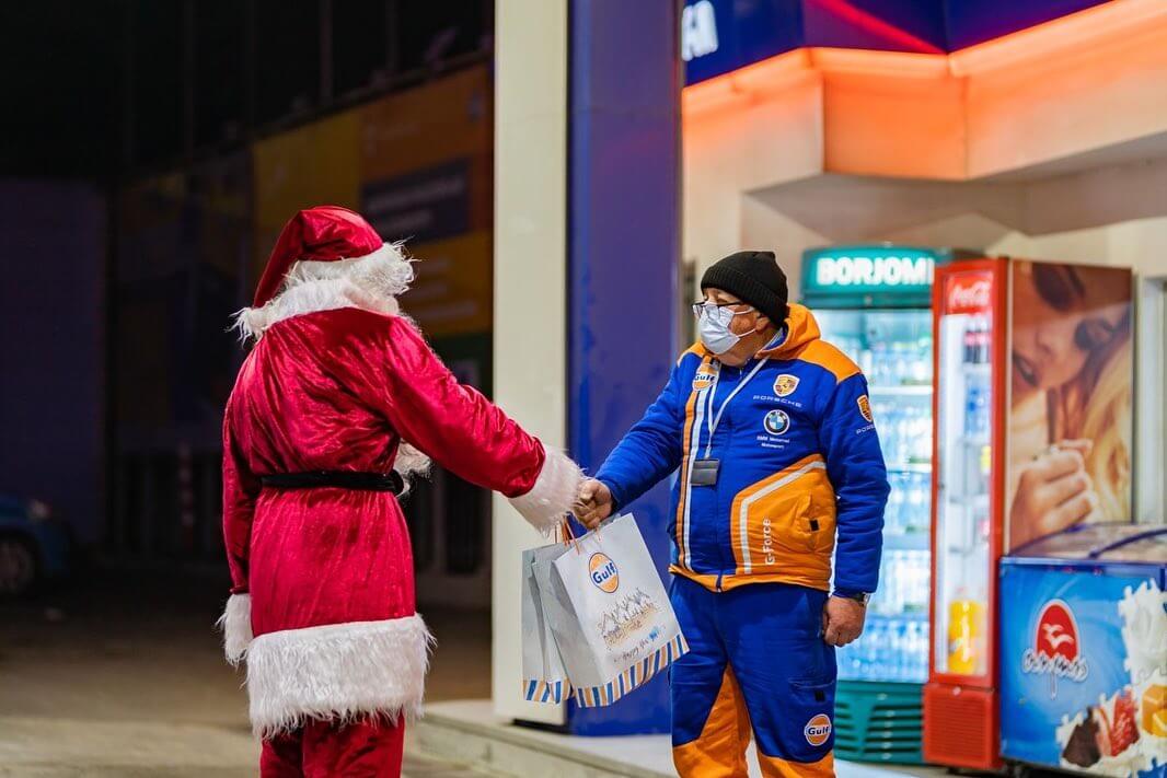 В предновогодний вечер Gulf Georgia тепло поздравила сотрудников на 143 АЗС и 65 магазинах по всей стране. Четвертый год подряд компания вручает подарки с благодарностью тем, кто работает в новогоднюю ночь.