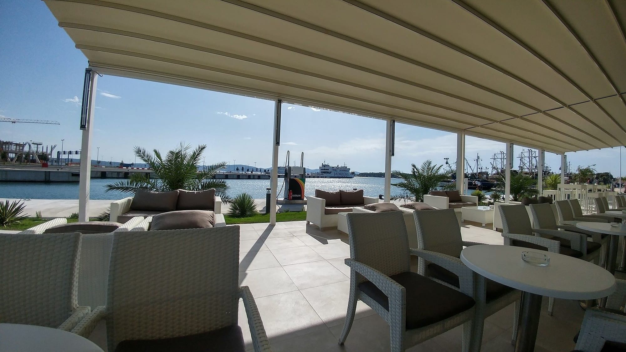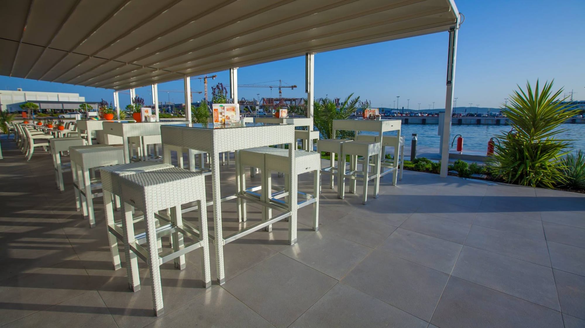 На просторной крытой террасе можно комфортно отдохнуть, расслабиться и насладиться атмосферой с прекрасным видом на море. Также, можно воспользоваться услугой обмена валют, бесплатным Wi-Fi и зарядить гаджеты в специальных боксах.