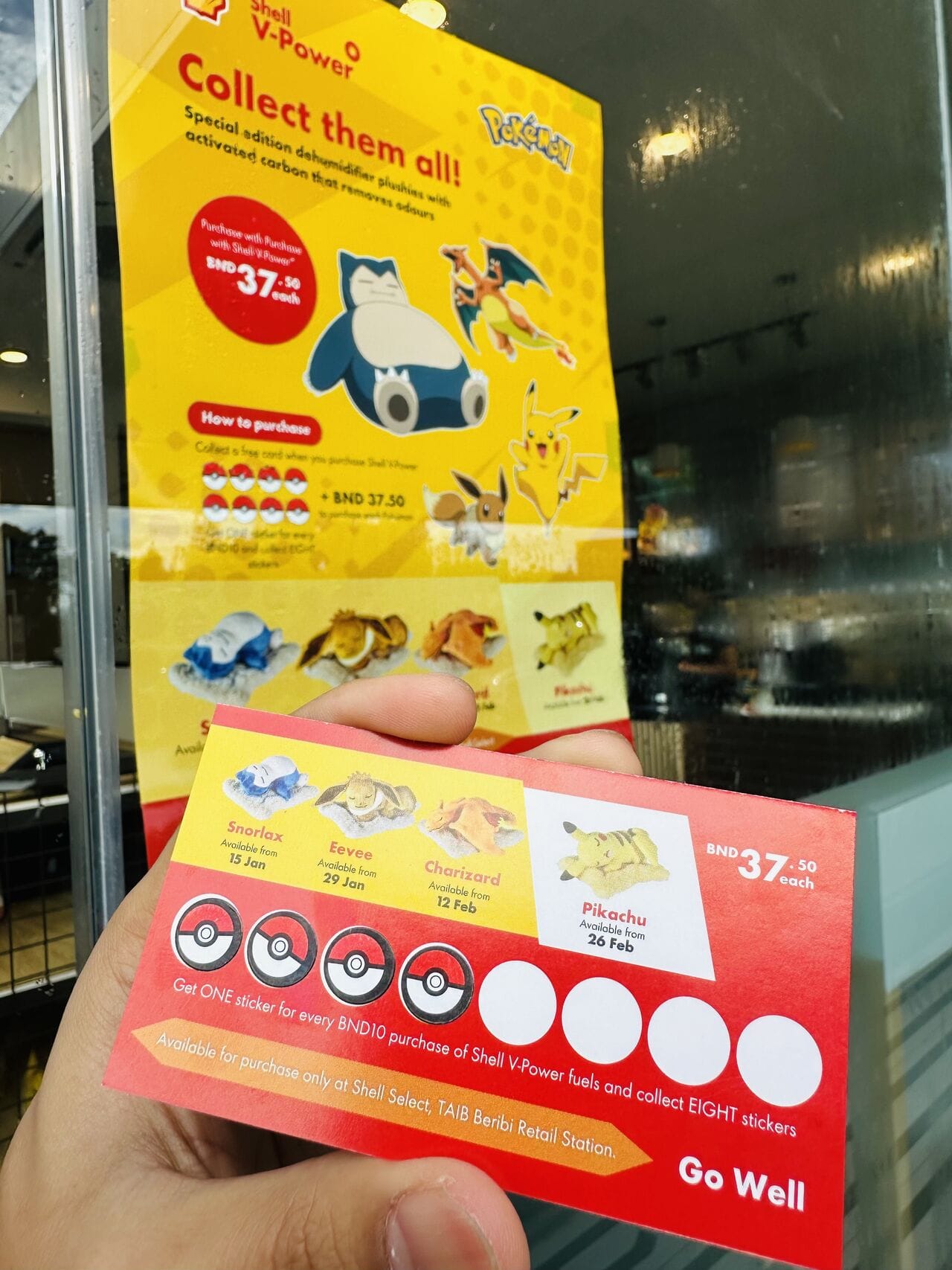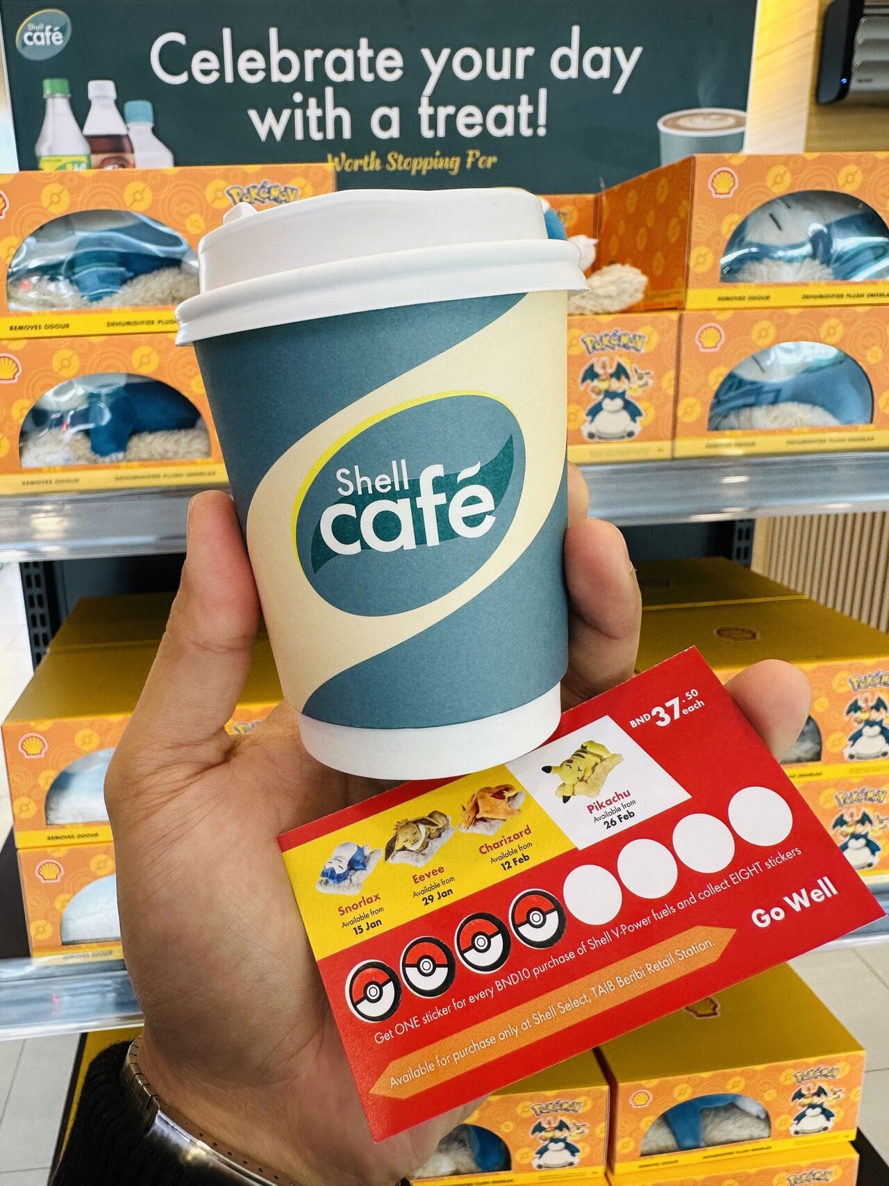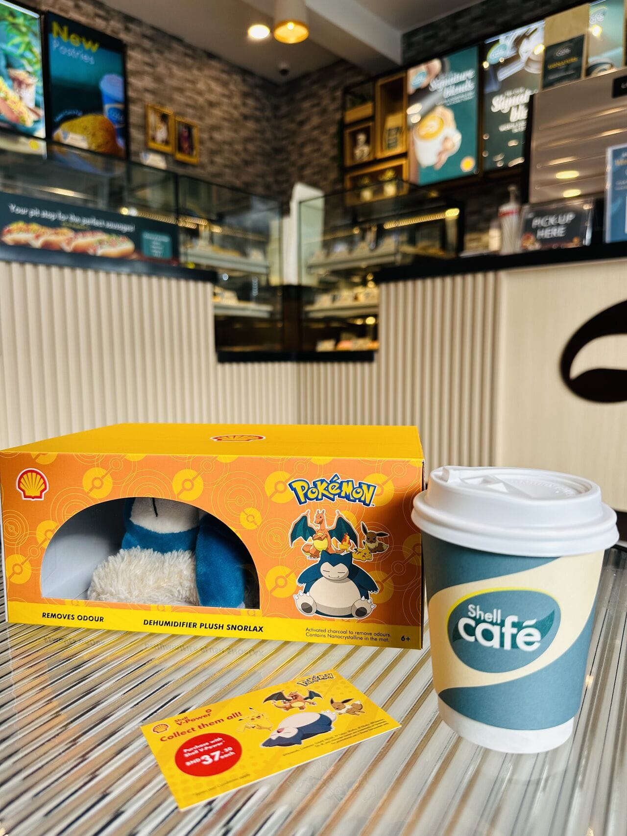 Shell в Брунее запустил акцию, основанную на понятной механике: за каждые 10 брунейских долларов, потраченные на топливо Shell V-Power, клиент получает наклейку. Собрав 8 наклеек, можно приобрести игрушку Pokémon (Snorlax, Eevee, Charizard или Pikachu) по специальной цене. Эти игрушки не только привлекательны, но и функциональны – внутри они содержат активированный уголь, который помогает устранять запахи, например, в автомобиле.
