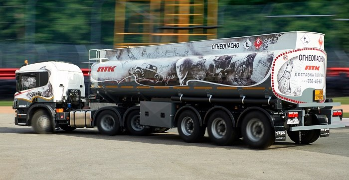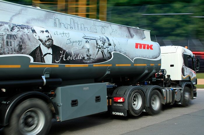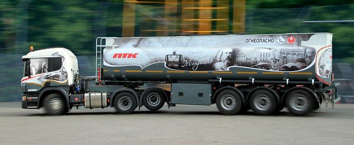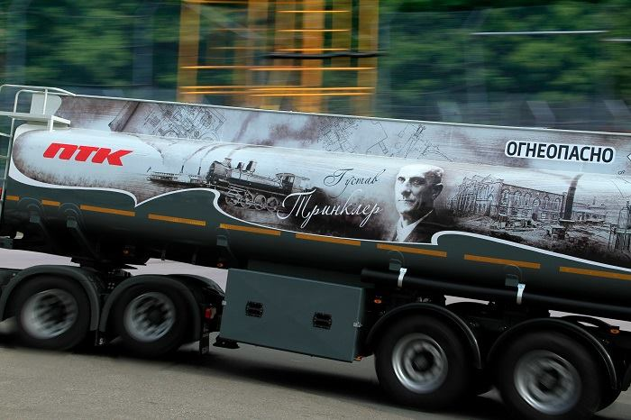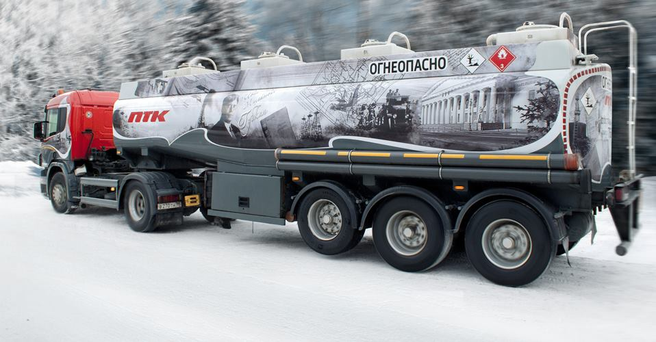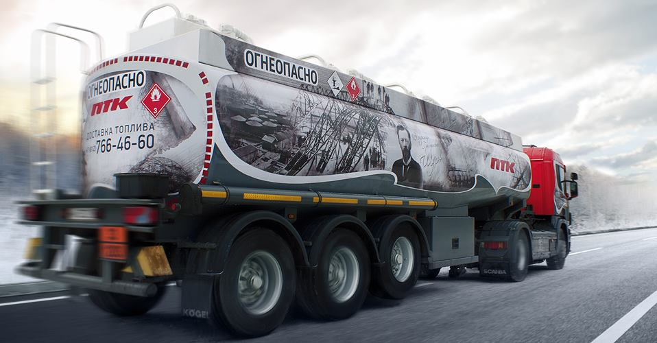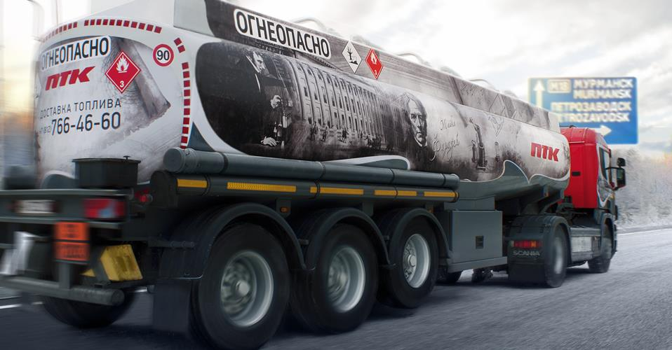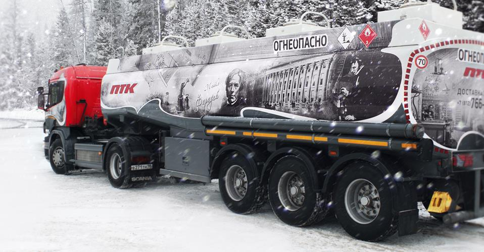 Большинство бензовозов ПТК уже получило свое уникальное оформление, подчеркивающее фирменный стиль компании. В парке ПТК есть серия бензовозов “JET”, в дизайн которых “зашит” логотип фирменного топлива компании, серия “АЗС” - дизайн основан на стилизации бензовоза под фриз автозаправочной станции, серия “Новгород” с дизайном в стиле Великого Новгорода, где ПТК имеет сеть фирменных АЗС. А также бензовоз, в основе дизайн-проекта которого - панорама Невского проспекта с высоты птичьего полета. Идея именных транспортных средств не новая для ПТК. Уже много лет на междугородних и международных направлениях курсируют именные автобусы Петербургской Транспортной Компании, названные в честь легендарных личностей, внесших весомый вклад в историю городов Северо-Запада.