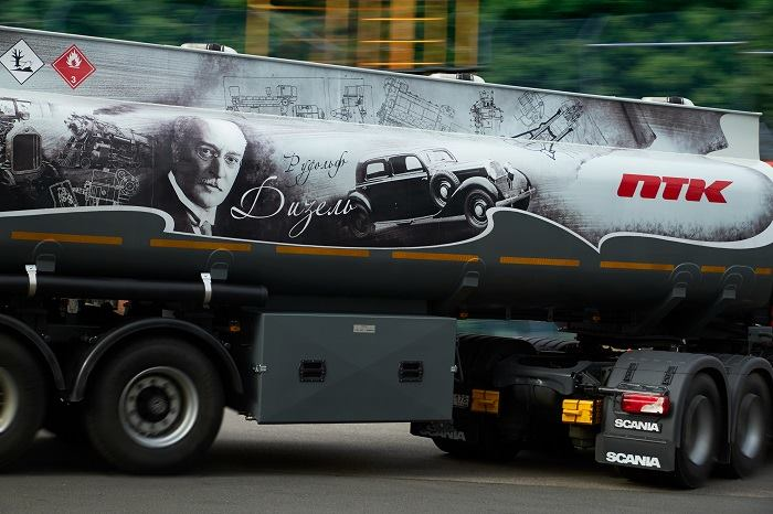 Каждый из семи именных автомобилей, перевозящих нефтепродукты для автозаправочных станций Петербургской топливной компании, получил свое оформление и имя в честь великой личности, внесшей весомый вклад в мировую науку, и связанной с нефтяной промышленностью или автомобилестроением.