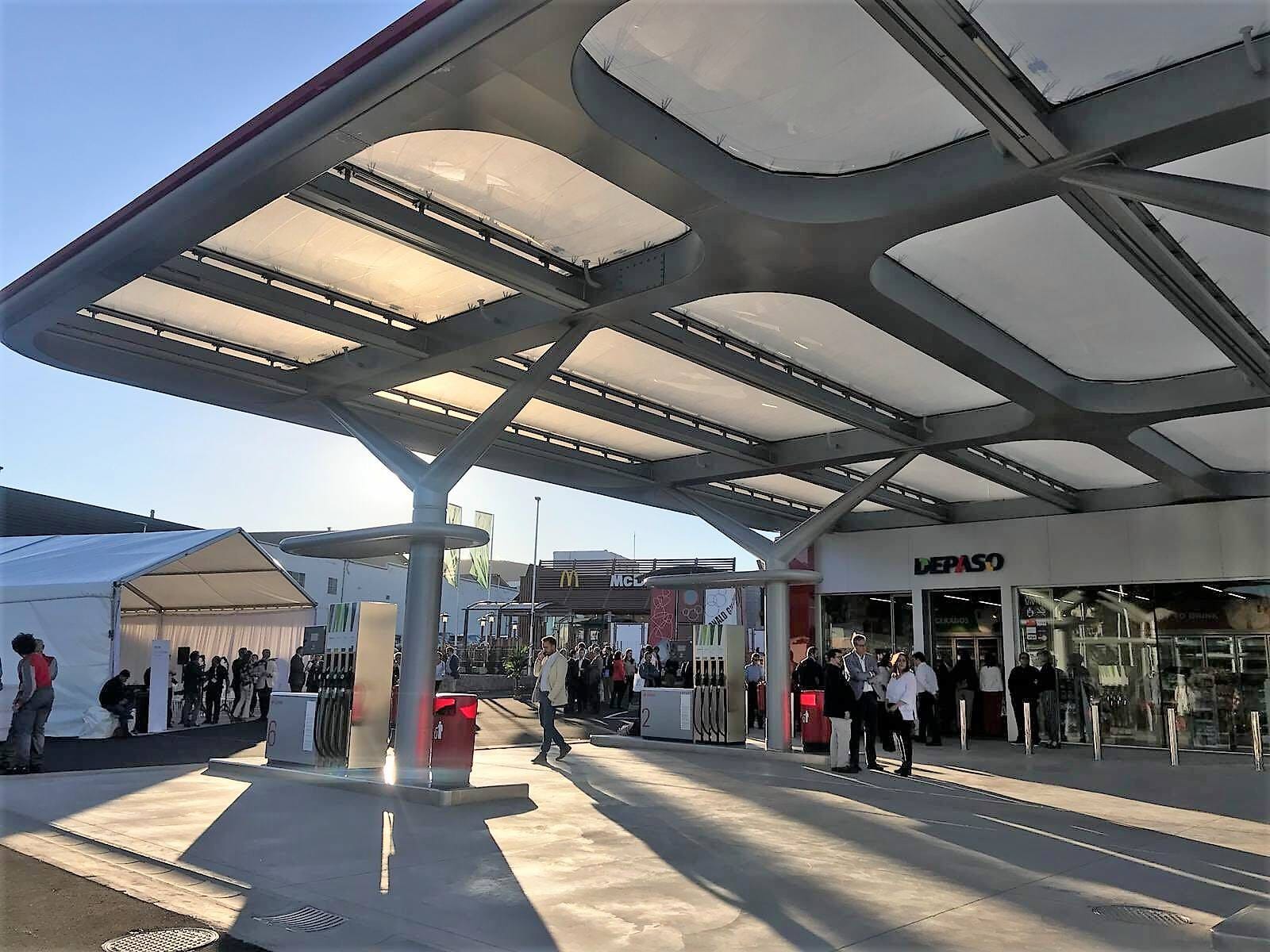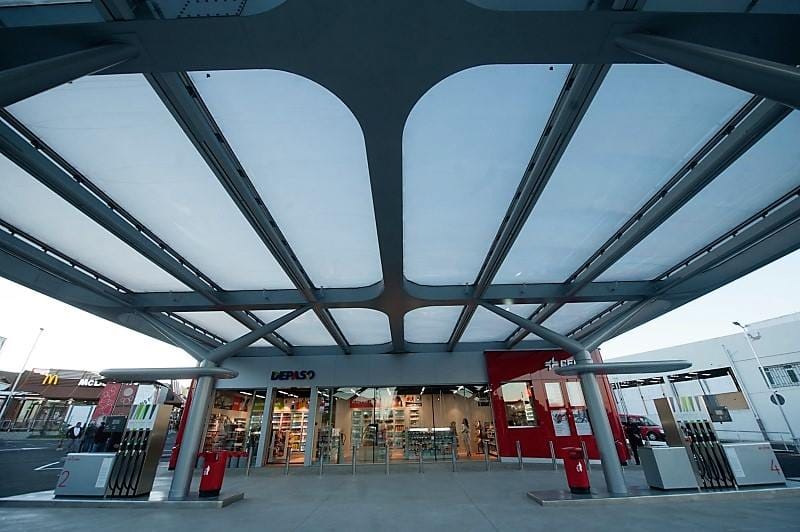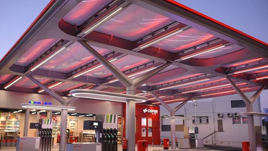 Крыша навеса традиционно для современных автозаправочных станций Cepsa сделана из полимера и имеет эффектный внешний вид. Особенностью высокотехнологичного полимерного материала нового поколения ETFE является высокая светопроницаемость. За счет чего максимально используется естественный свет и снижаются затраты энергопотребления.