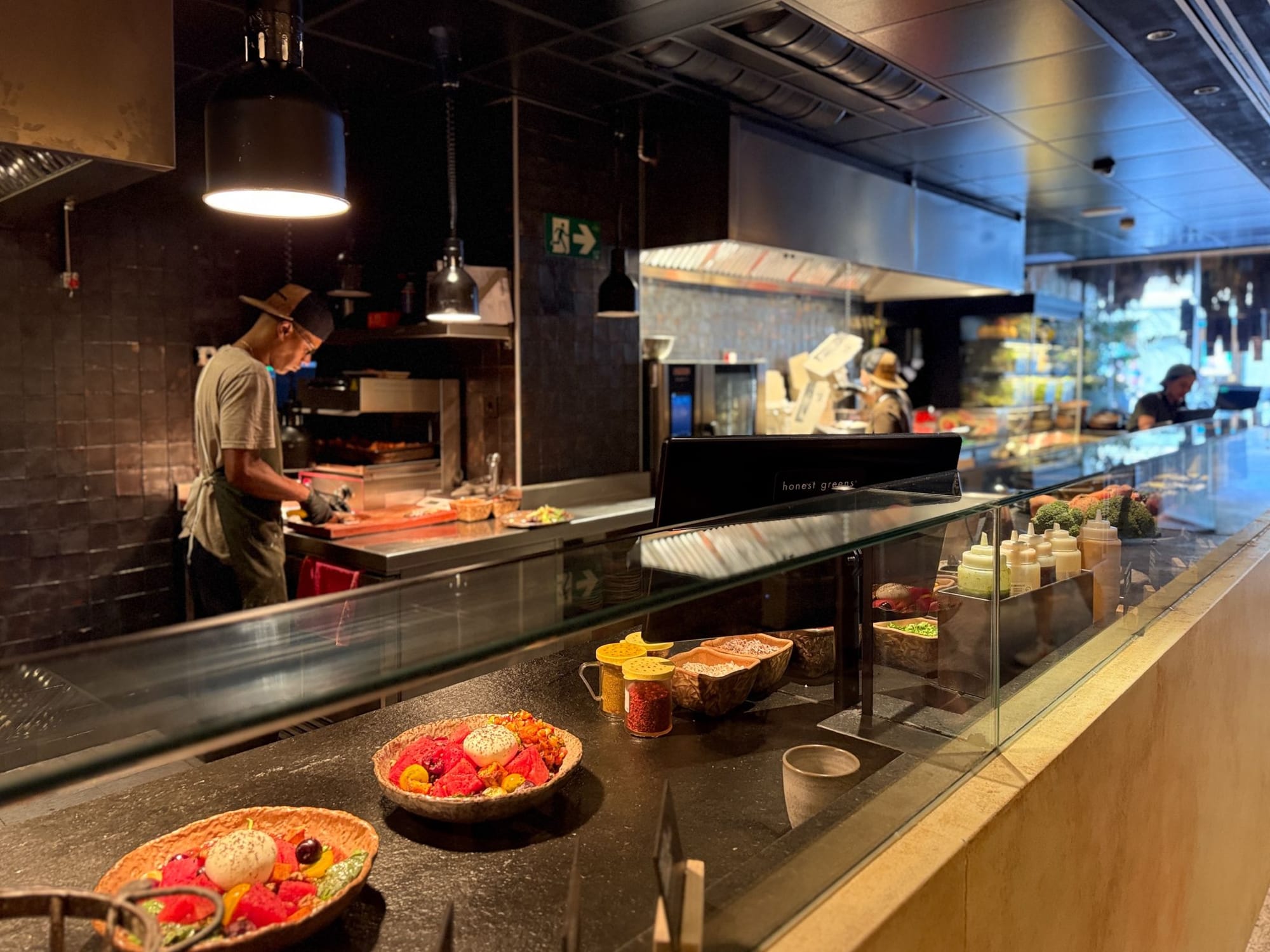 Honest Greens — часть новой волны fast casual-брендов, построенных вокруг быстрых салатов. Но именно сочетание средиземноморского ритейл-дизайна, продуманной графики и «театральности» кухни, где прозрачность работает и как доверие к качеству, и как элемент шоу, делает этот бренд одним из самых интересных на рынке.