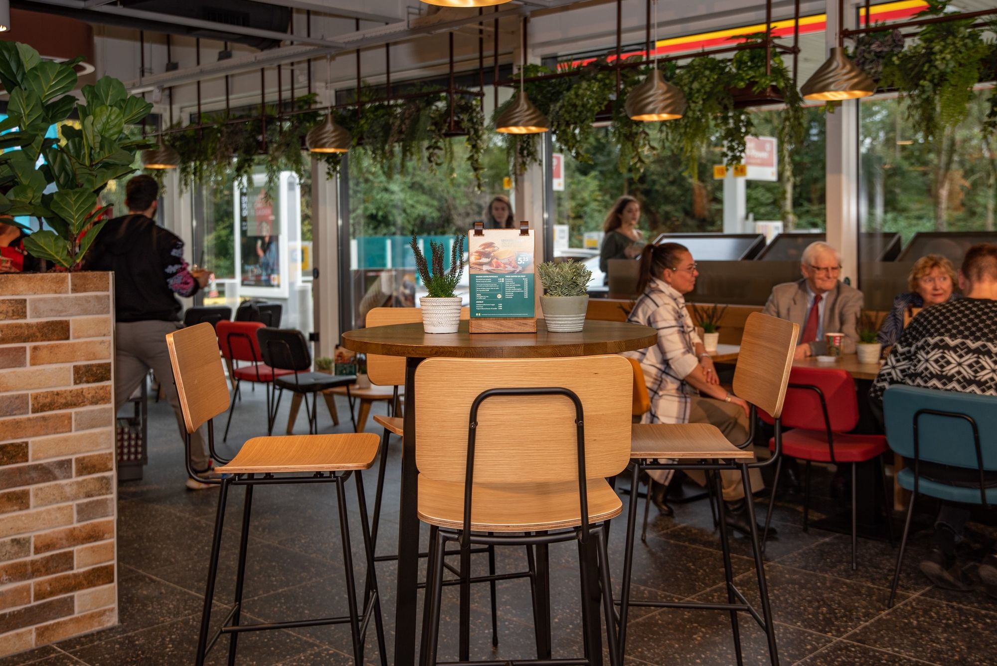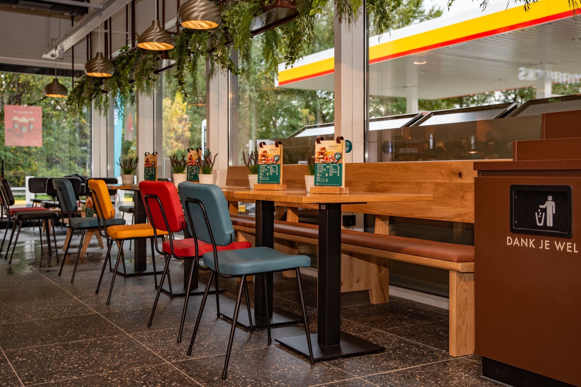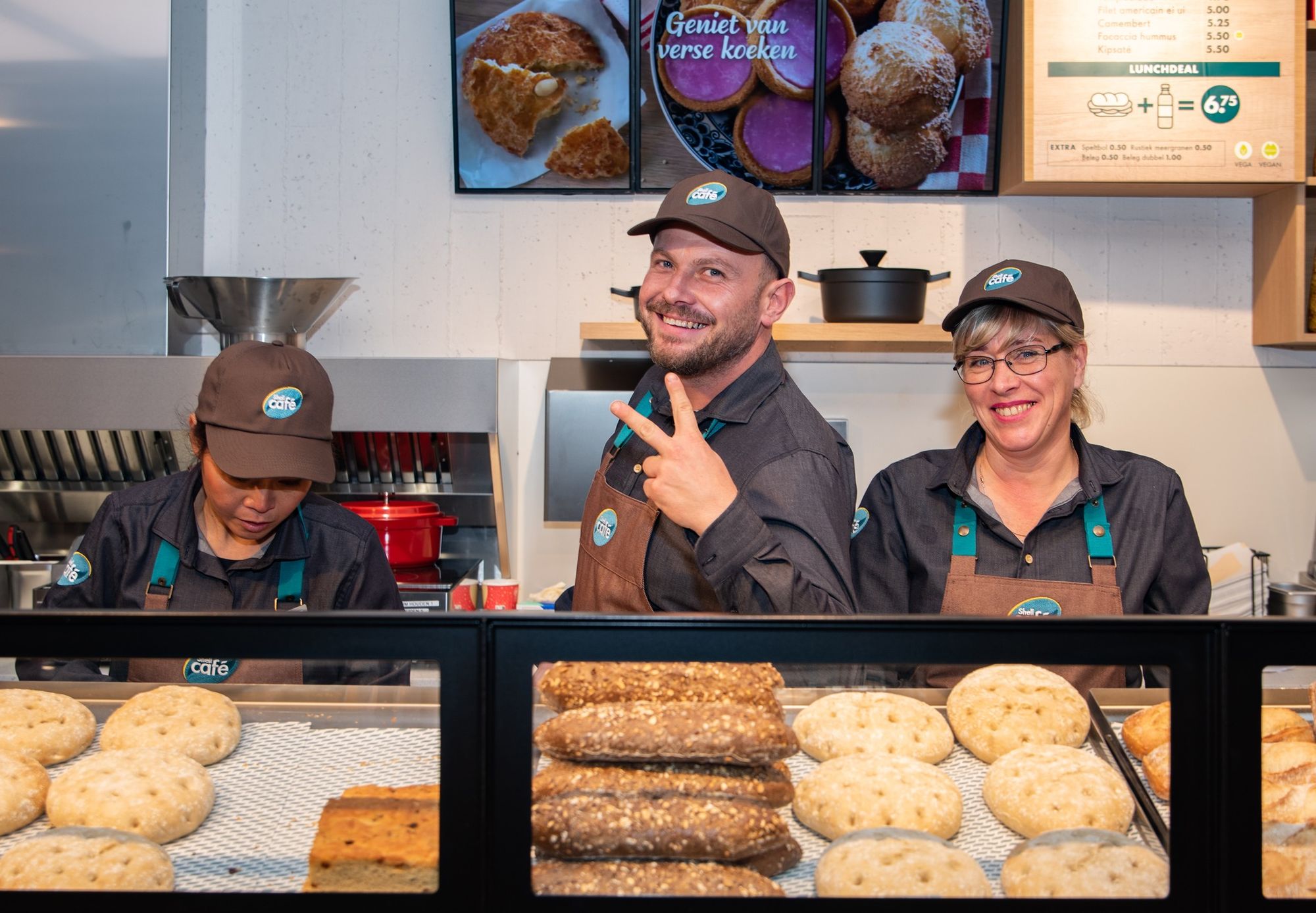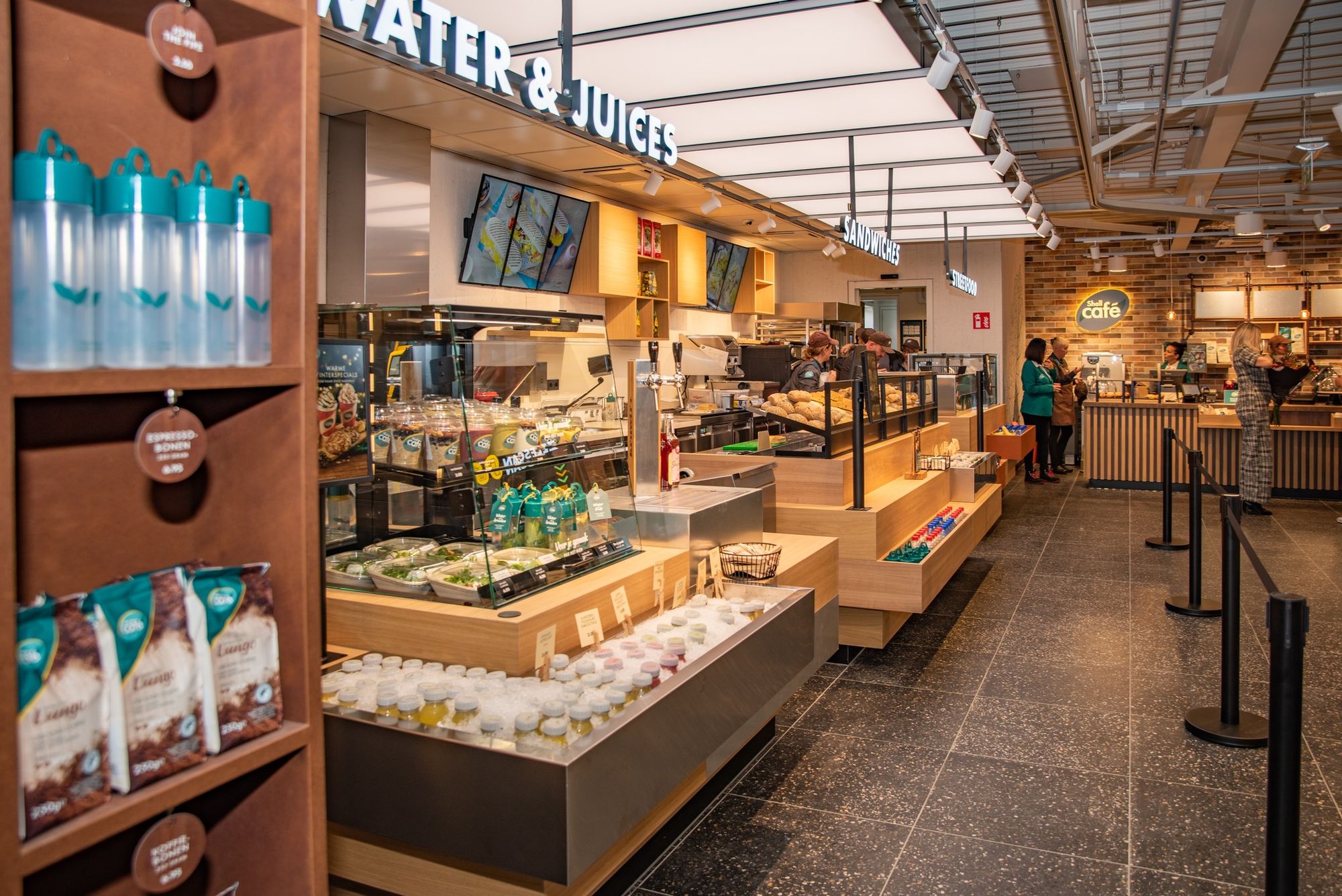 Shell Café на автозаправочной станции Shell de Andel – это шестая точка в новом формате, предлагающая еду и напитки на дорогах в Нидерландах. Превратившись в Shell Café, АЗС на оживленной автомагистрали A12 сразу за Гаудой в направлении Утрехта, приобрела новую пекарню и фреш-бар с уличной едой. В магазине есть не менее 28 посадочных мест для коротких или длительных остановок, а также они предназначены для использования в качестве рабочего места или места для встреч. Меню было обновлено, чтобы обслуживать всех, кто голоден или хочет пить. Особенностью Shell Café De Andel является большая кофейня Starbucks с креслами, которая приобрела совершенно новый вид. Это касается и одежды сотрудников. На автозаправочной станции также реализованы 2 туалета Theloo.