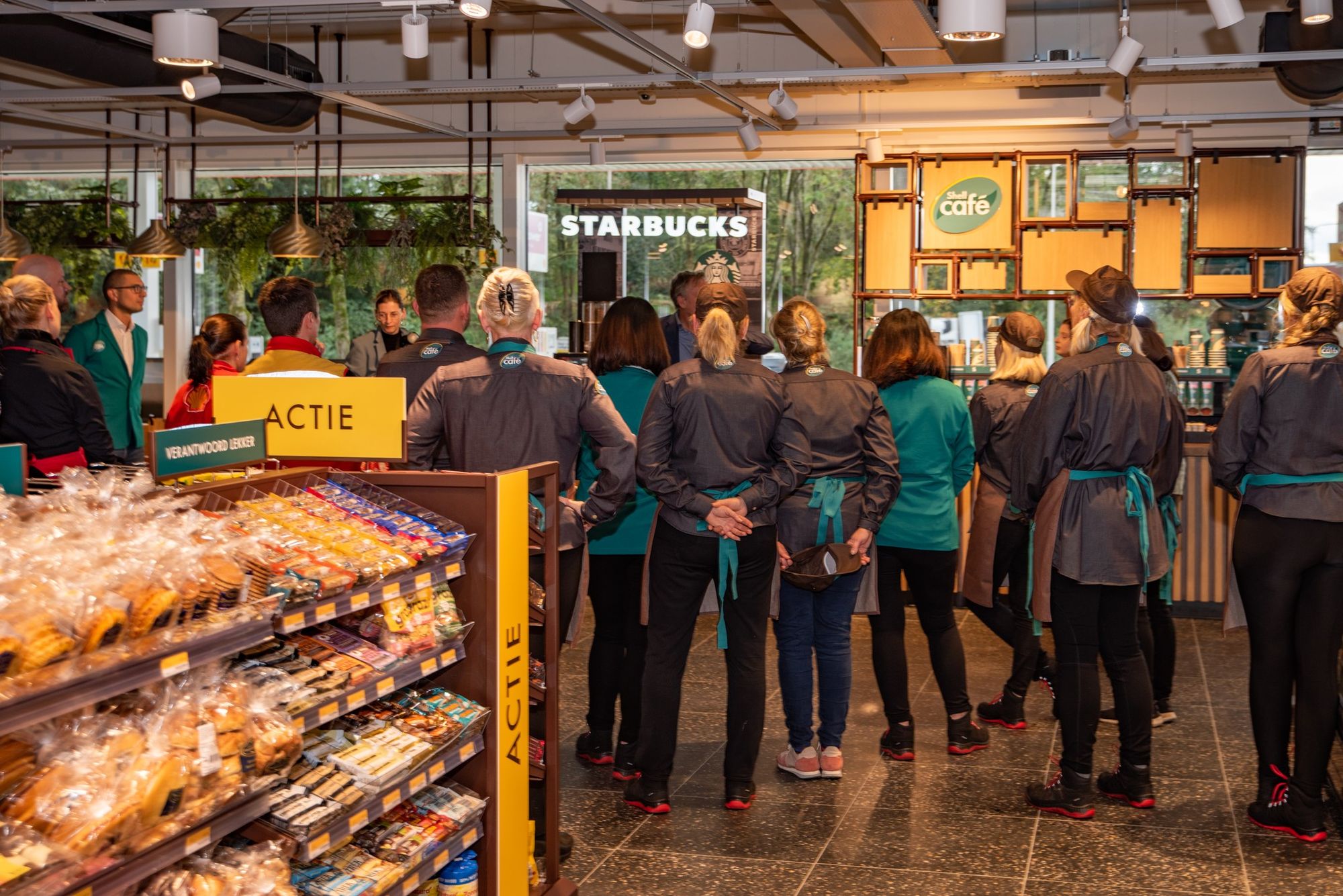 После реконструкции, которая длилась около четырех недель, автозаправочная станция Shell, расположенная на автомагистрали A12 недалеко от Гауда, открылась с новым Shell Café и кофейней Starbucks.