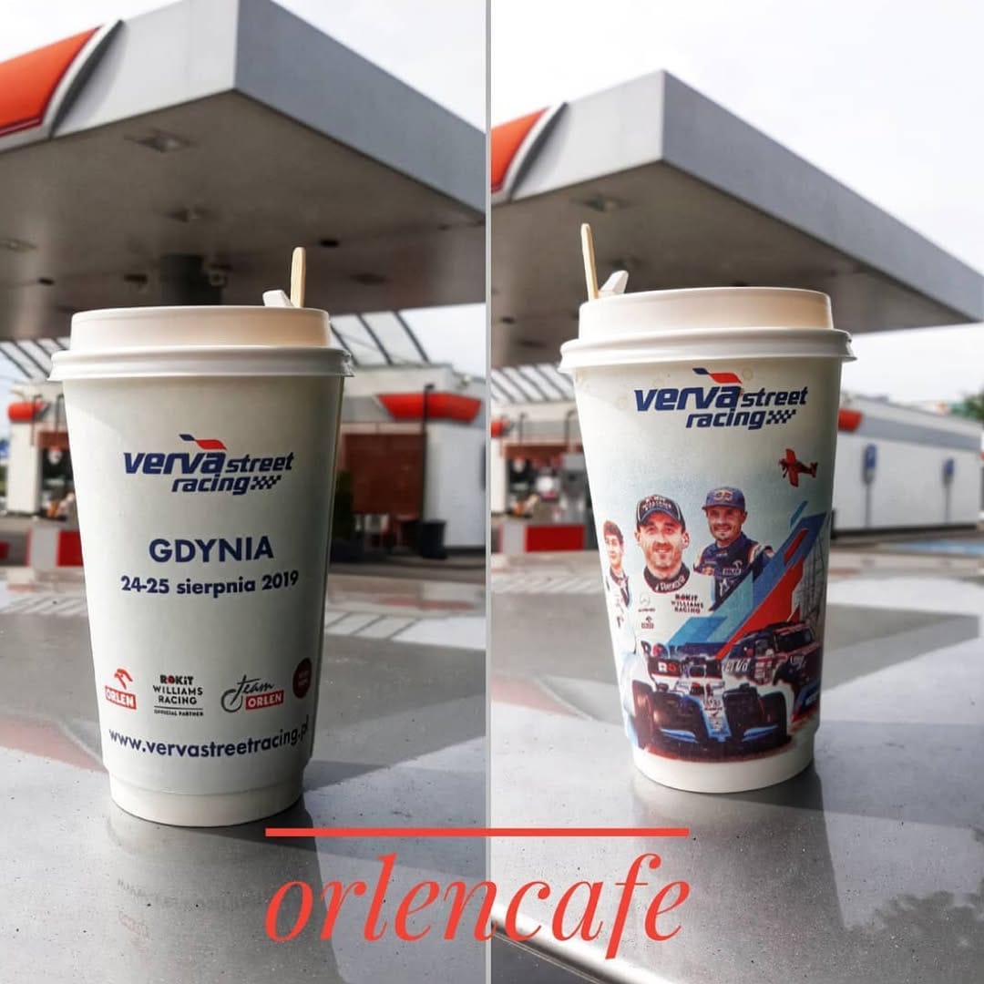 Польская нефтеперерабатывающая компания PKN ORLEN использует чашки, также, как самый простой путь донесения рекламной информации до аудитории своей сети автозаправочных станций. Реклама событий и акций на стаканах с кофе обязательно будет замечена и запомнится клиентам. В этом году, например, были выпущены несколько рекламных серий чашек, приуроченных к масштабным мероприятиям.