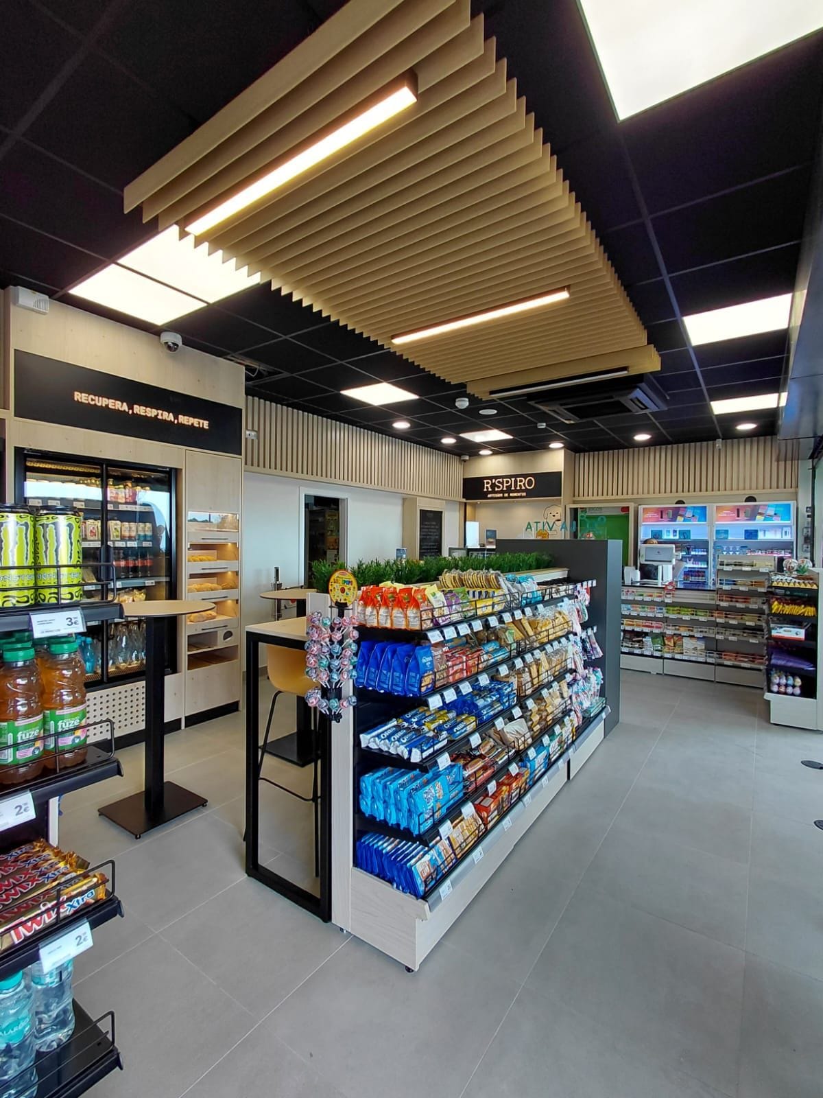 На фото одной из испанских АЗС мы видим классический пример того, когда реализация на практике идет вразрез с психологией покупателя. Почему такая «сцепка» барной стойки и стеллажа — спорное решение? Честно говоря, минусы здесь серьезнее, чем кажется, даже несмотря на то, что клиенты дольше удерживаются в зоне продаж.