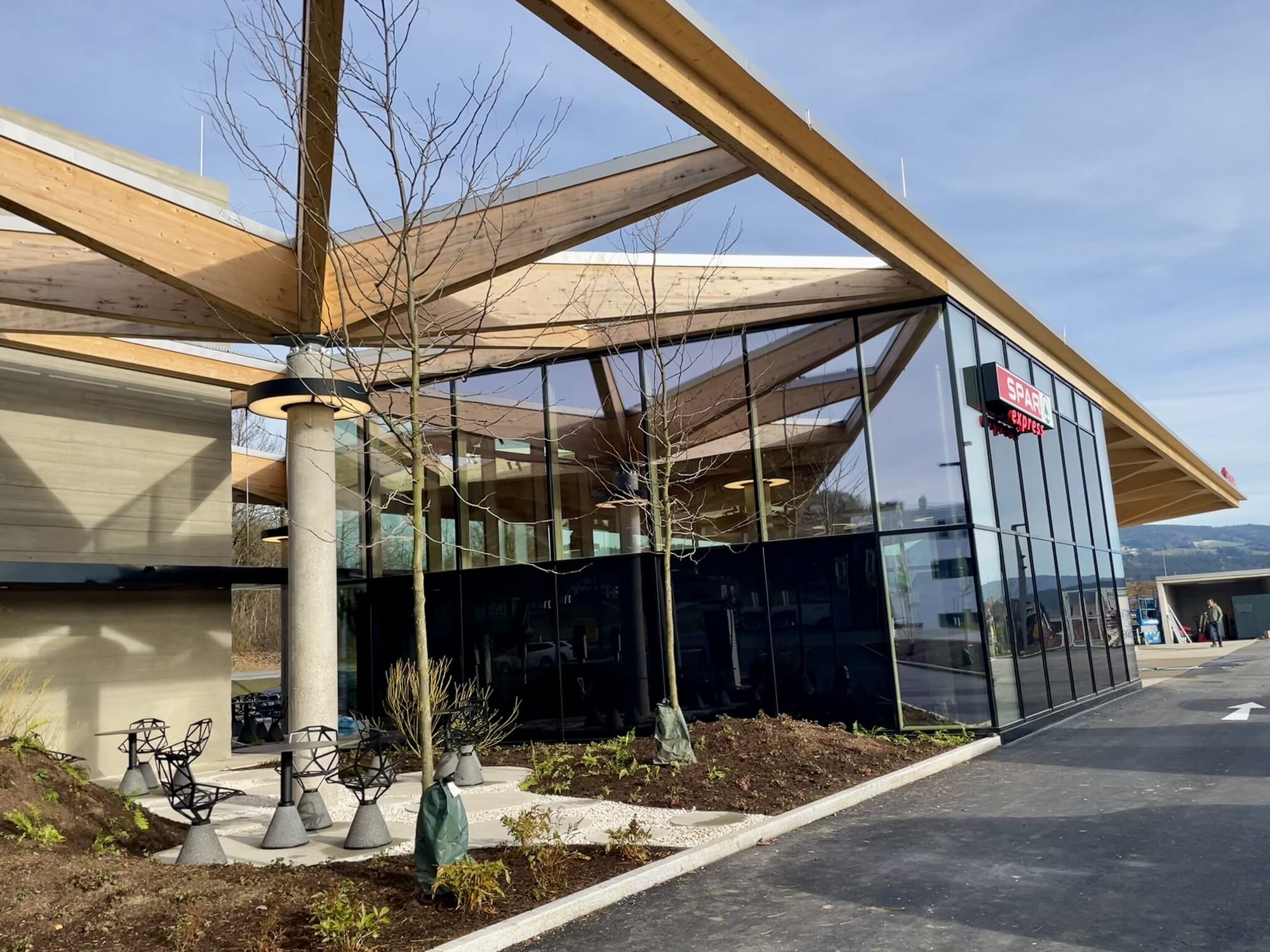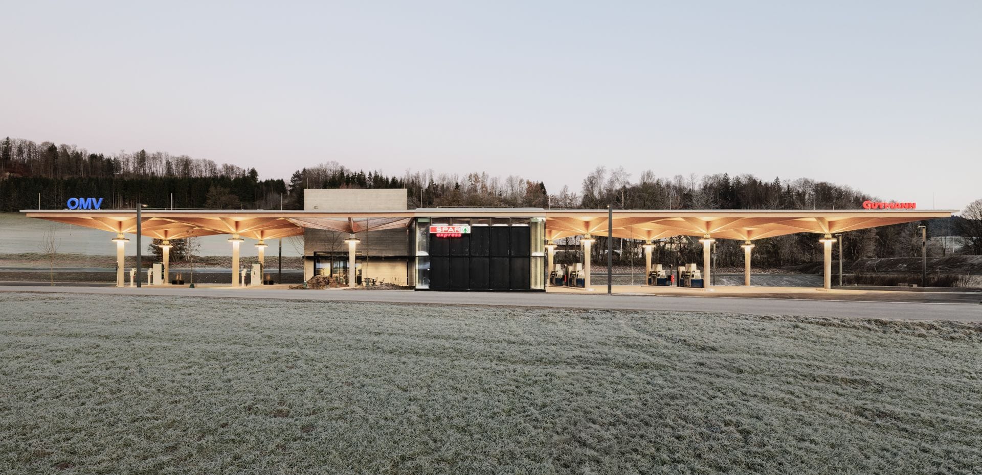 Общий концепт новой АЗС OMV в Тальгау (Австрия) помимо передовых технологий впечатляет современным и элегантным дизайном. Особенно навес станции, который стал настоящим архитектурным акцентом.