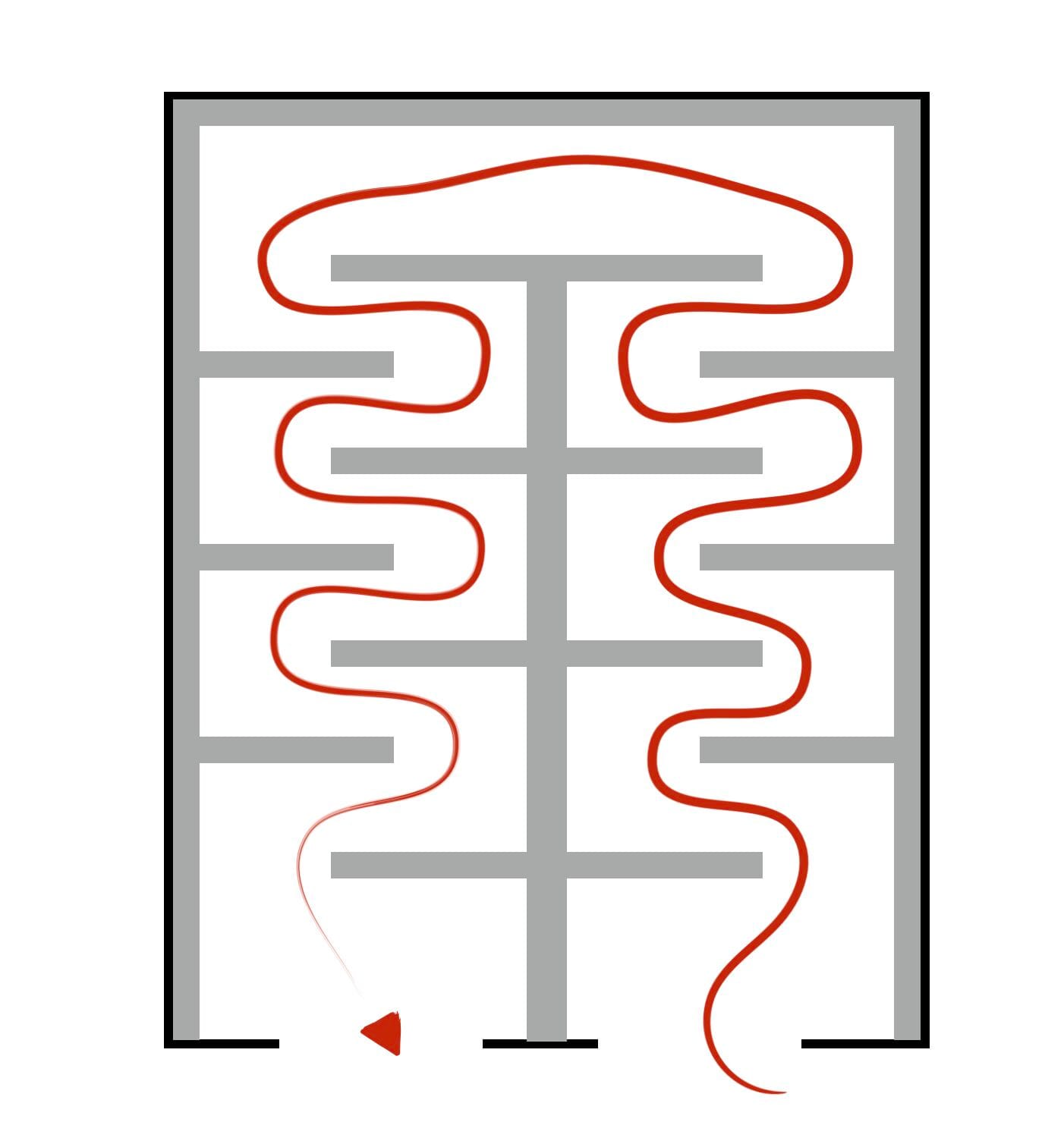 На АЗС такие полноценные лабиринты создадут трудности для людей с разными целями. Но, локально в торговом зале уже встречаются заслуживающие внимание примеры — напоминающие по смыслу «ленточные барьеры» для очередей в аэропортах. Как будто встроенные зоны с таким себе принудительным маршрутом, где не дают срезать путь, и проходишь все изгибы.