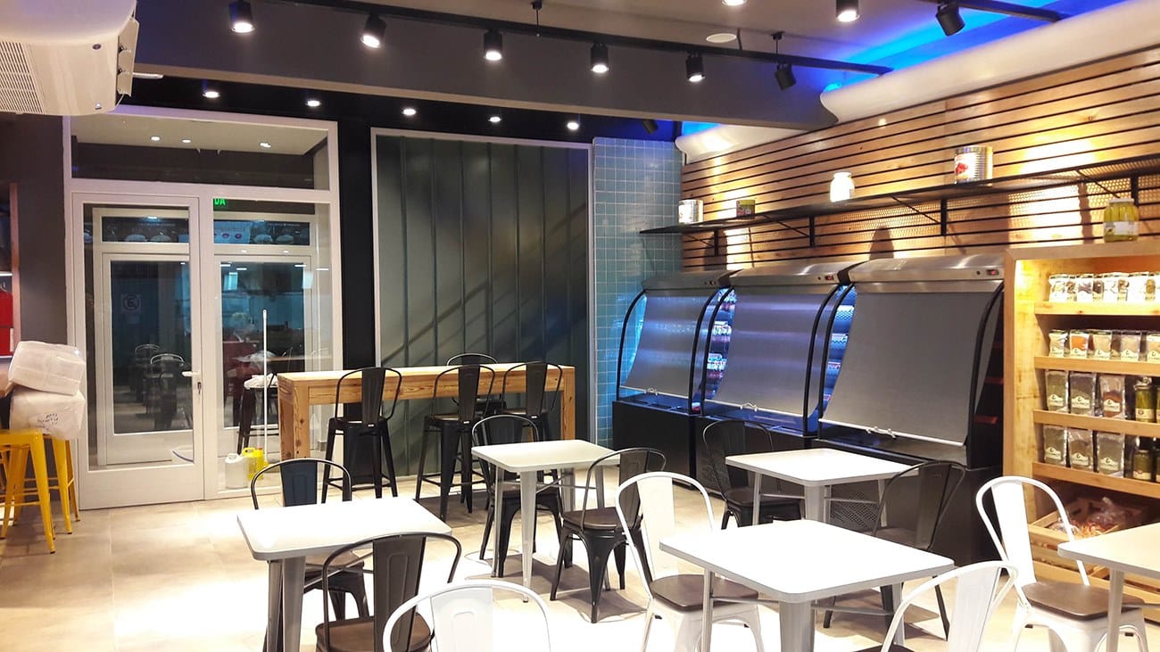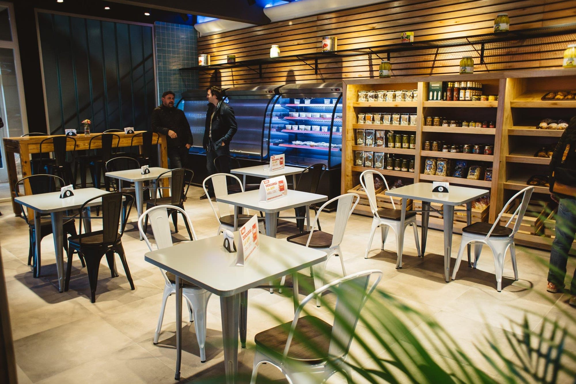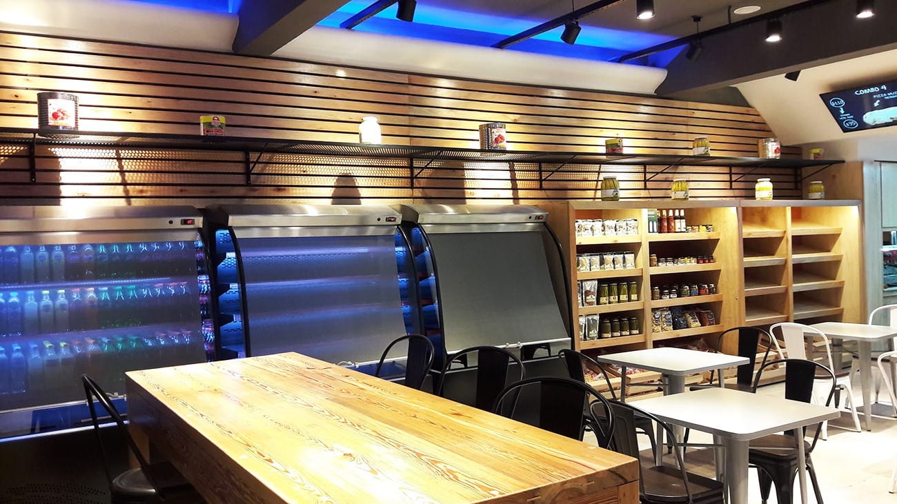 Формат магазина “Re Tiendas” основан на модели “удобный #магазин у дома”. Ассортимент полностью ориентирован на региональные продукты с целью стимулирования местного рынка. Кроме того, компания помогает своим операторам в запуске и управлении магазином, обучении персонала. Дизайн интерьера создает удобную и современную среду для встреч, где можно отдохнуть, расслабиться, перекусить в любое время суток. Теплая атмосфера создается с помощью мягкого освещения по всему пространству, использования деревянных материалов в мебели, а также элементах отделки декора.
