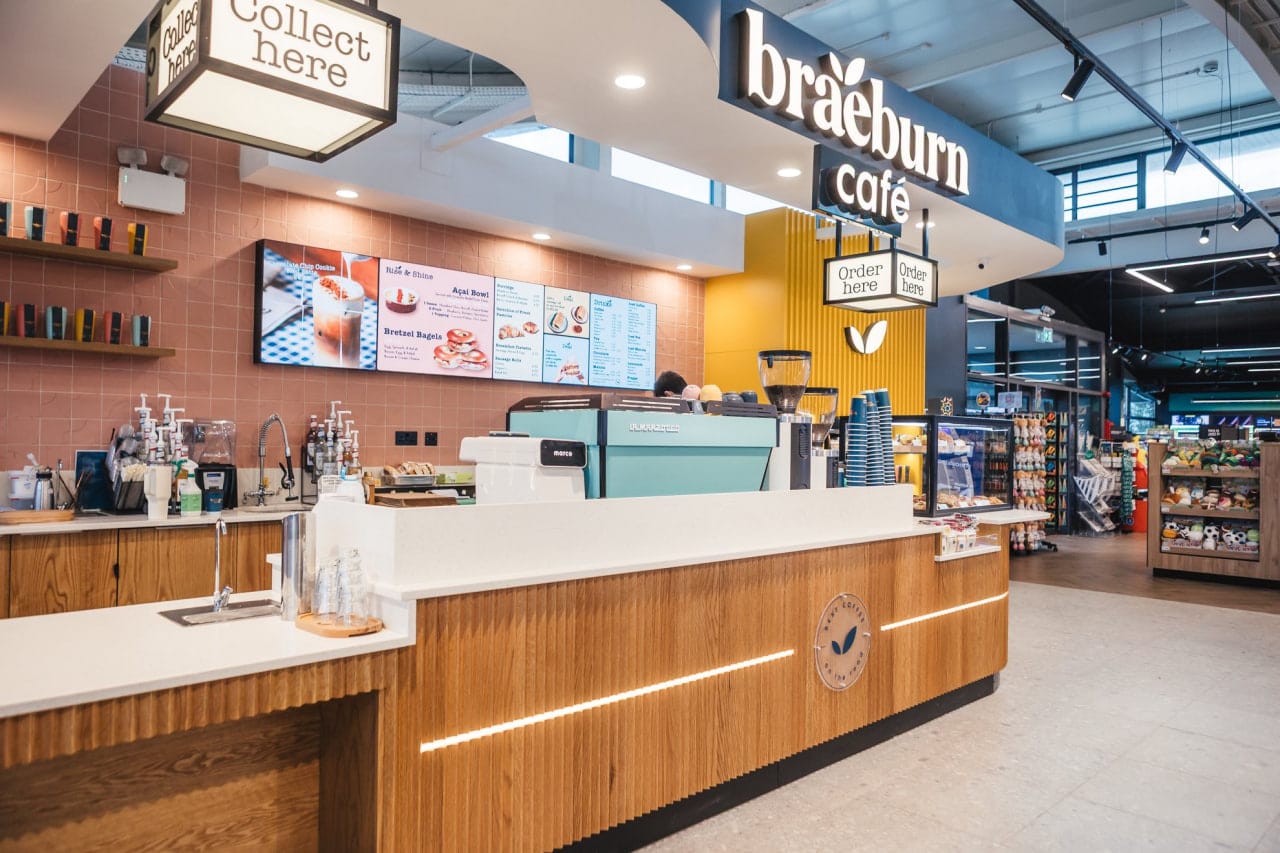 Хорошо заметно, как перед кассой сформированы «барьеры» — контролируемый поток мимо импульсных категорий товаров. Дизайн точек питания выделяется более теплыми цветами, привлекая внимание покупателей. Именно на таких примерах видно, почему Ирландия уже много лет считается одним из лидеров в категории food-to-go.