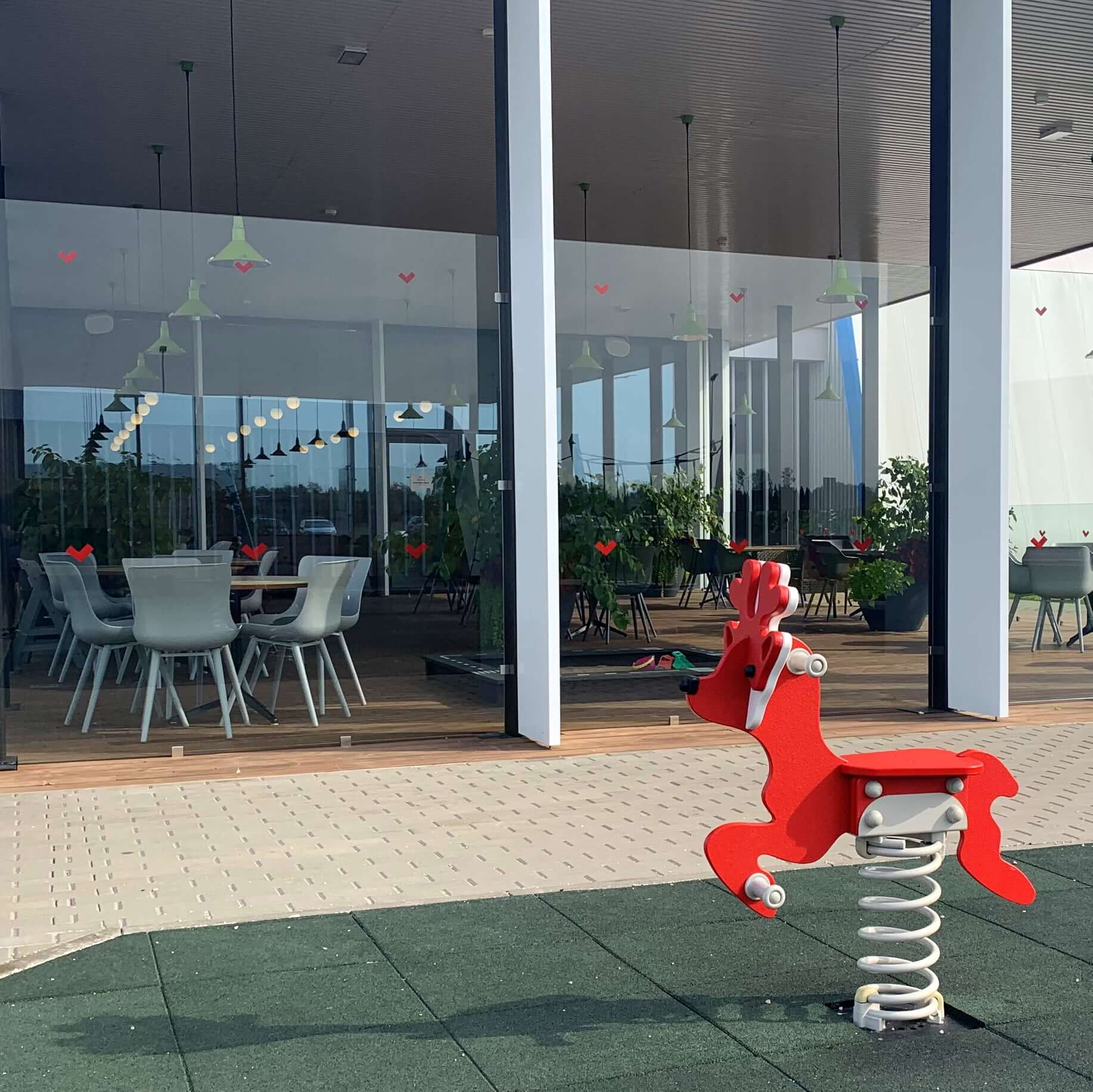На крытой террасе придорожного ресторана Tikupoiss дети могут поиграть в песочнице даже в плохую погоду. Остекление патио хорошо защищает от прохладного ветра, а система отопления не даст пальцам рук замерзнуть во время игры или обеда.