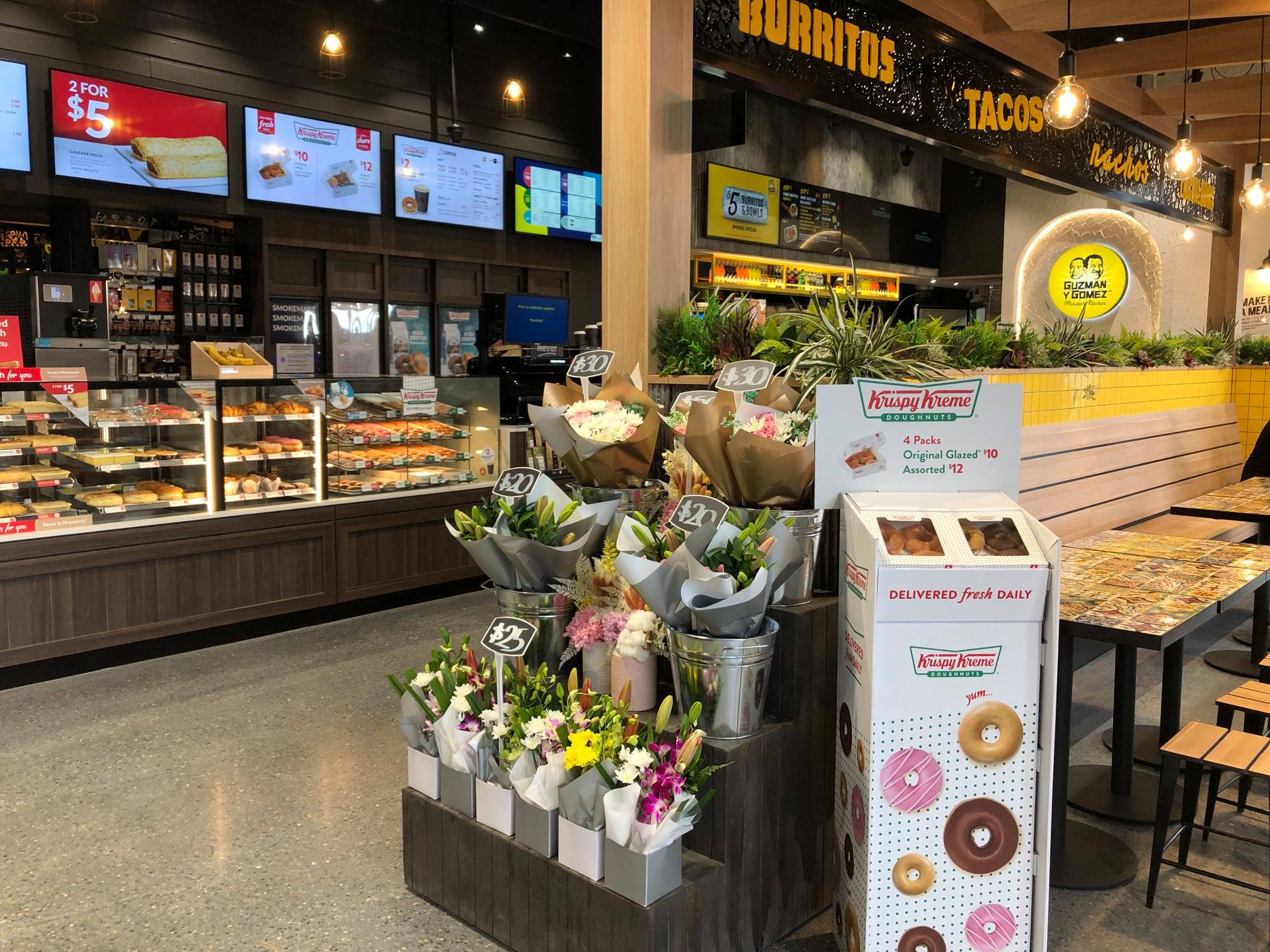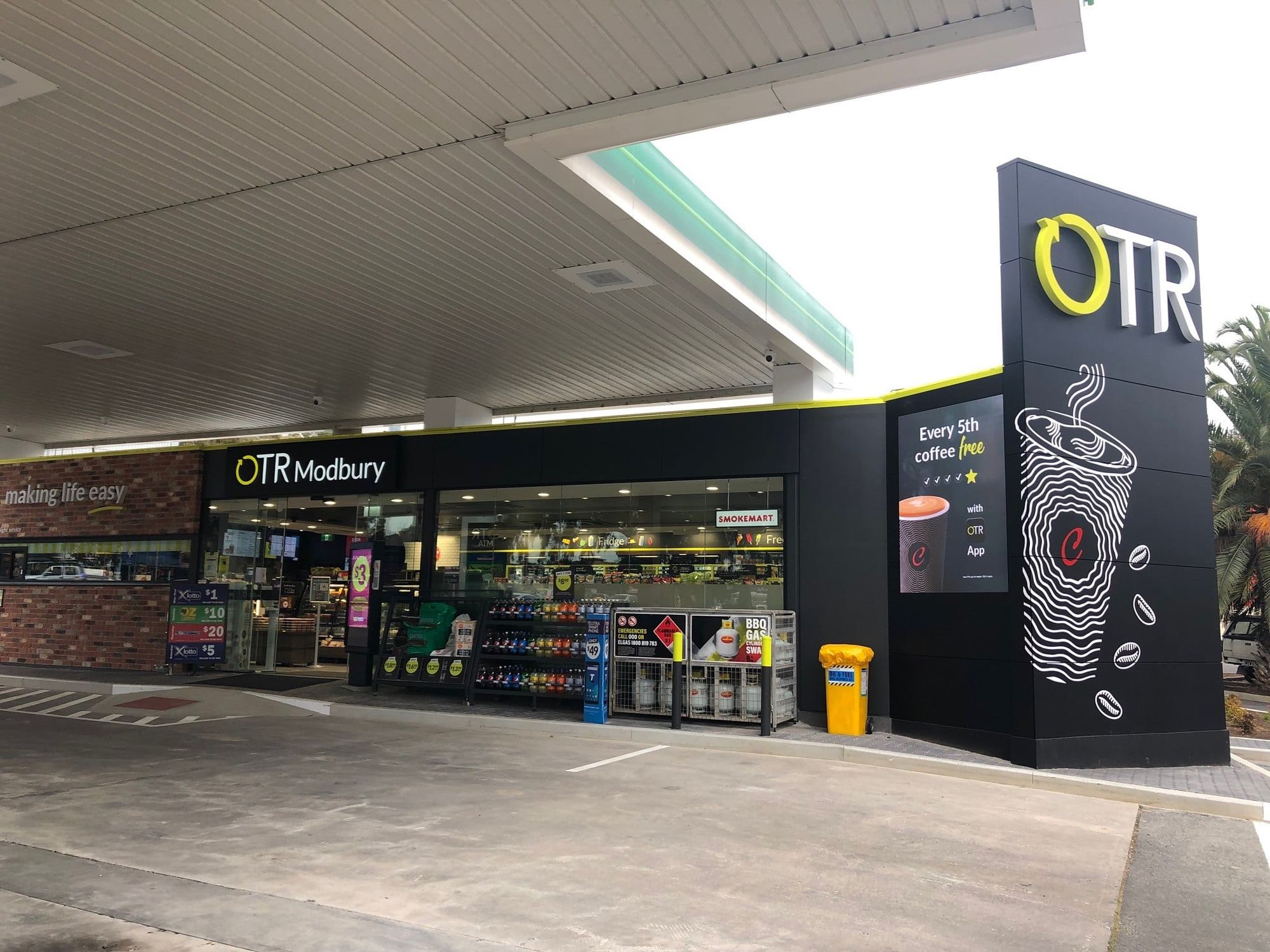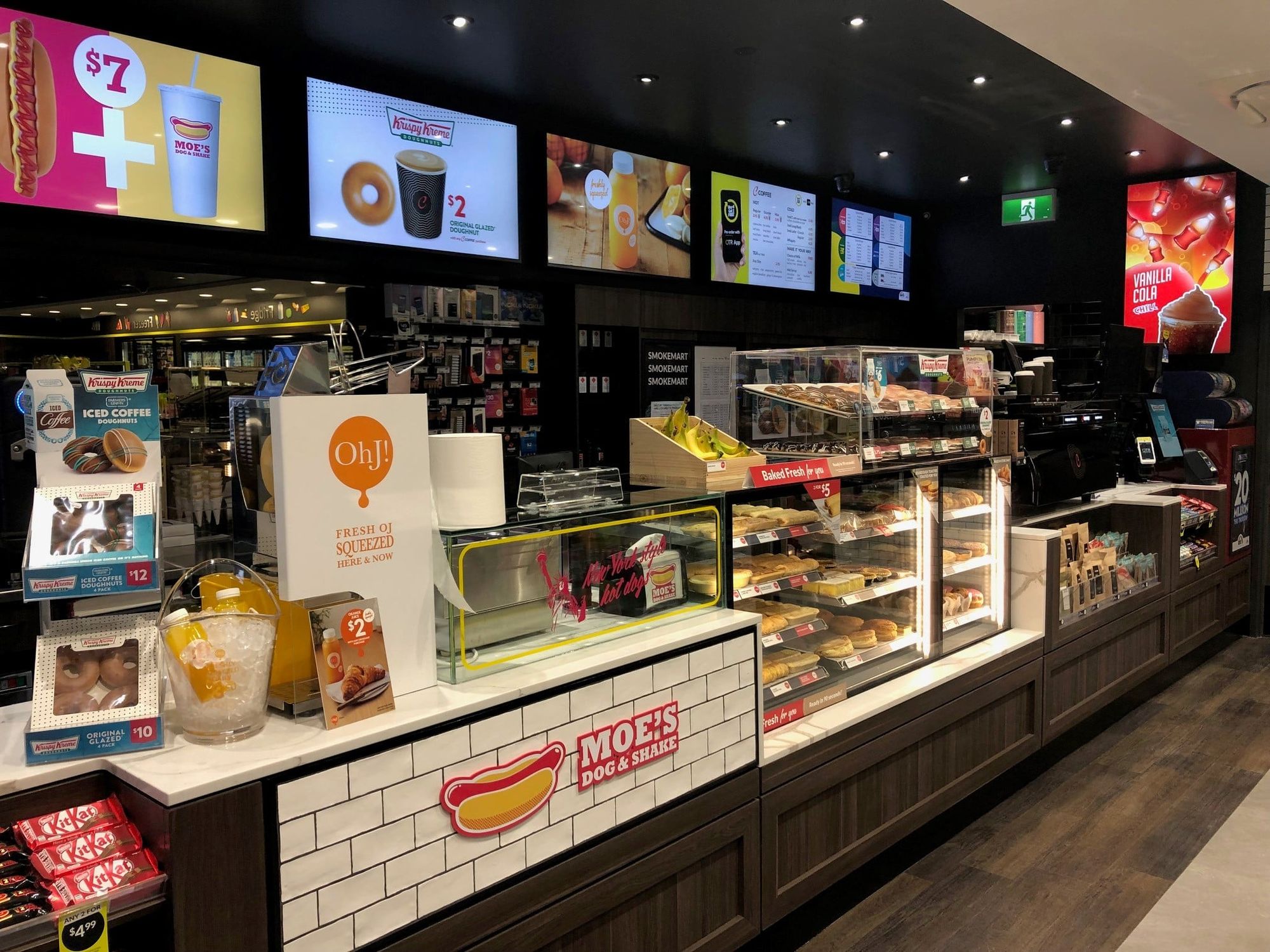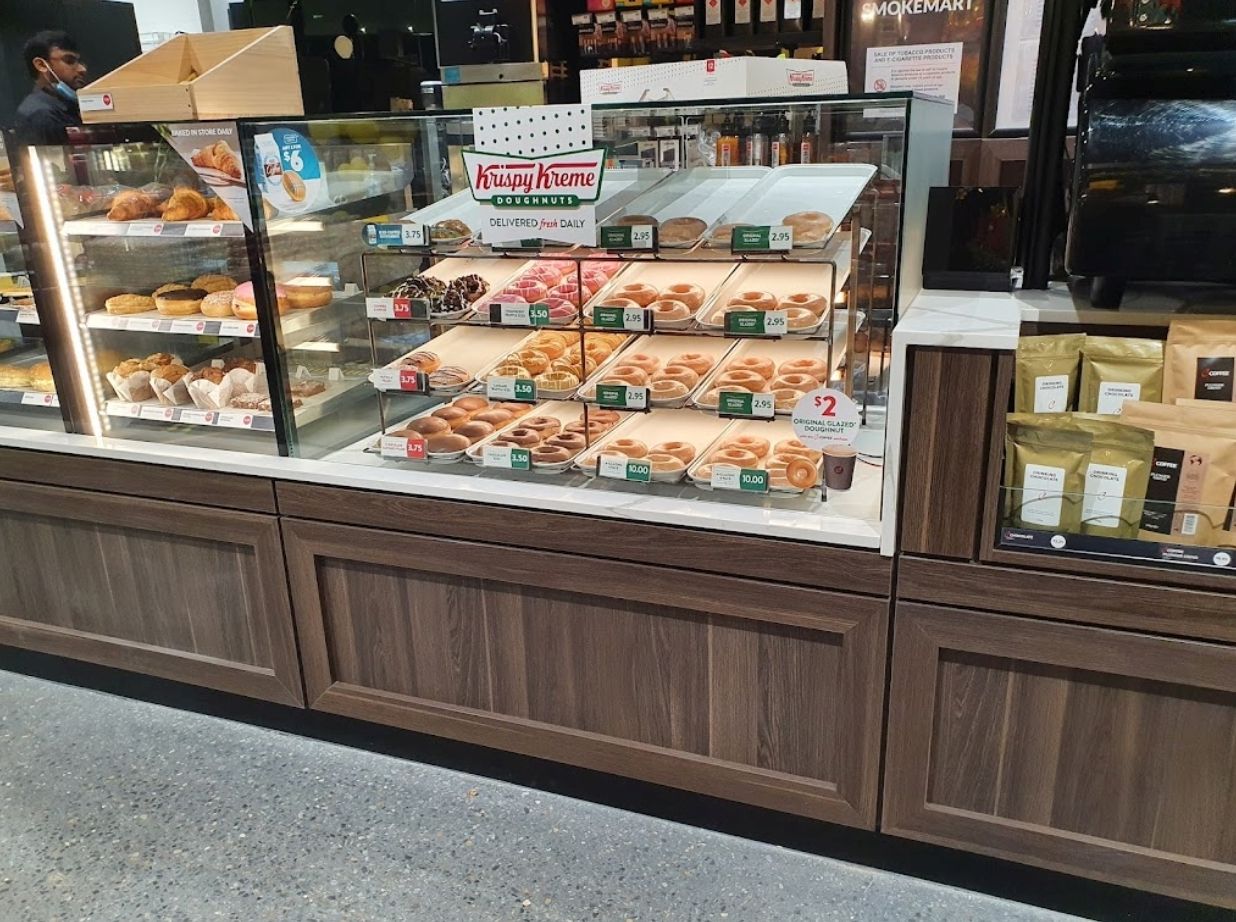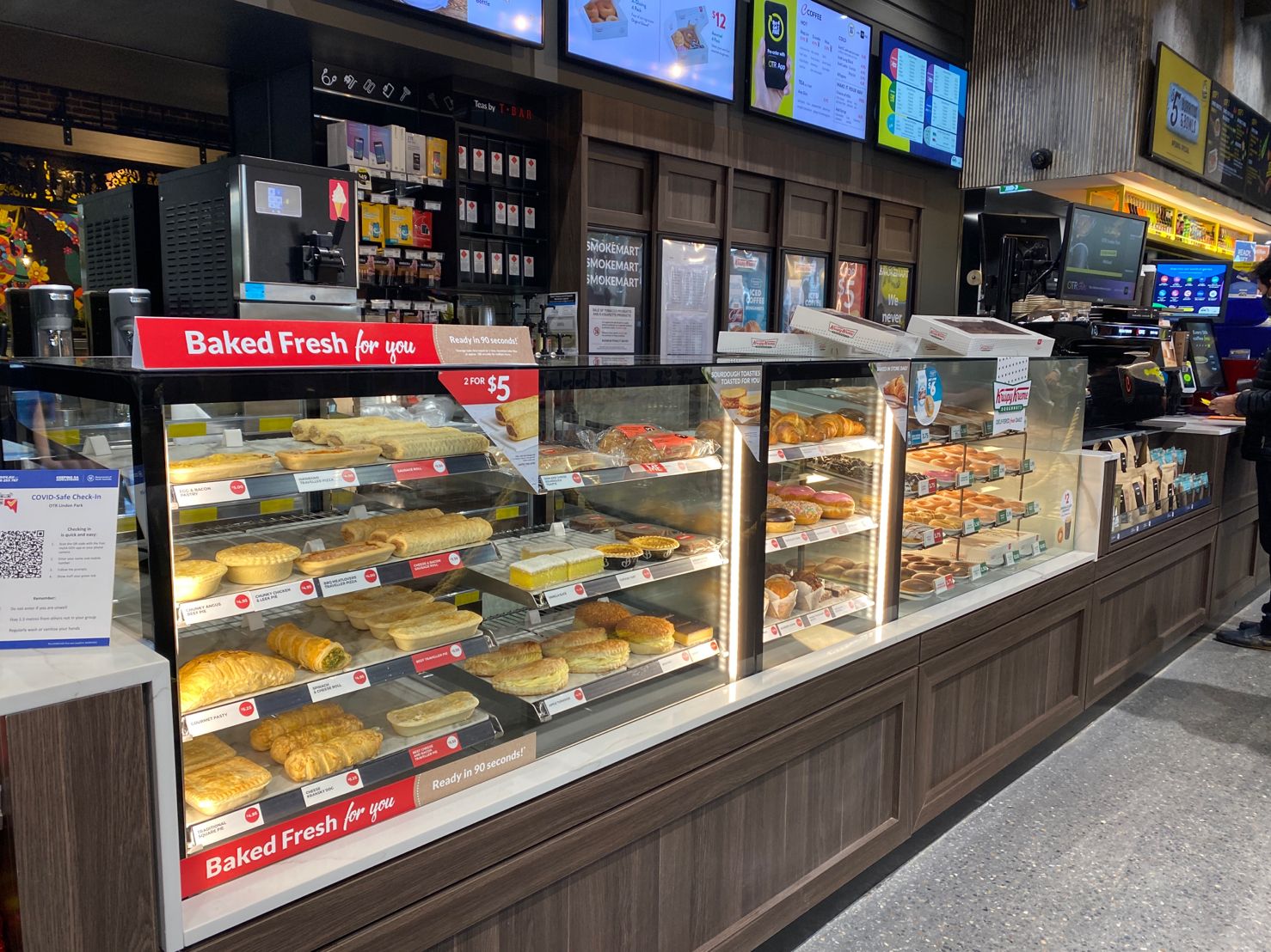 Автозаправочный комплекс OTR Modbury предлагает клиентам пончики Krispy Kreme, кофе от бариста, Moe's Dog & Shakes, EAT, HappyWash, Lotto и многое другое.