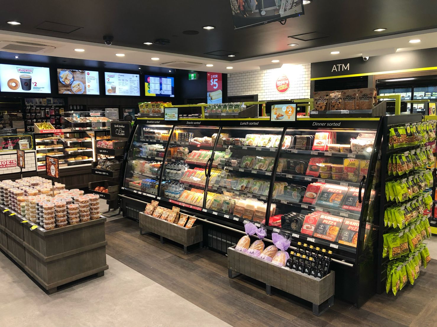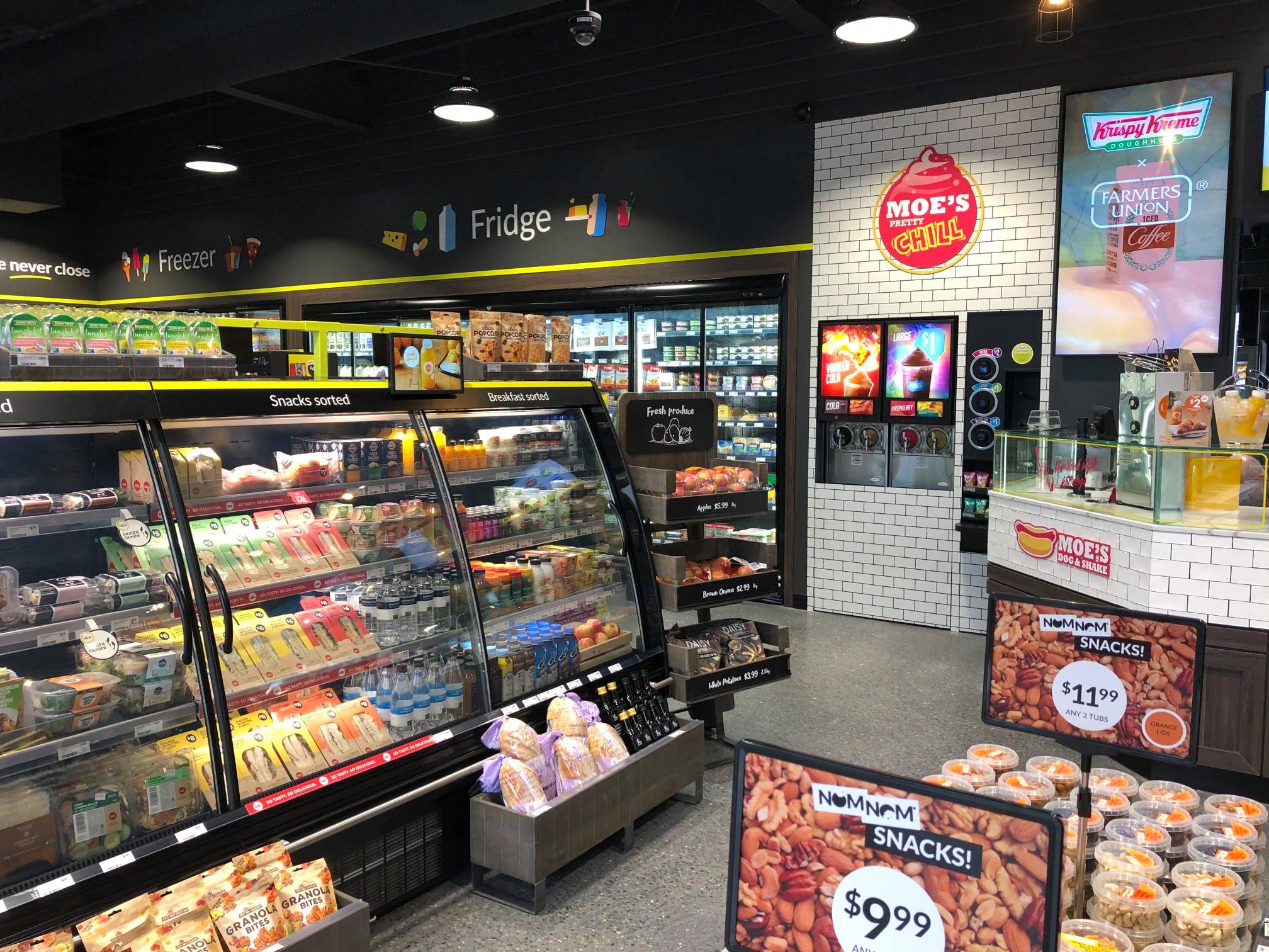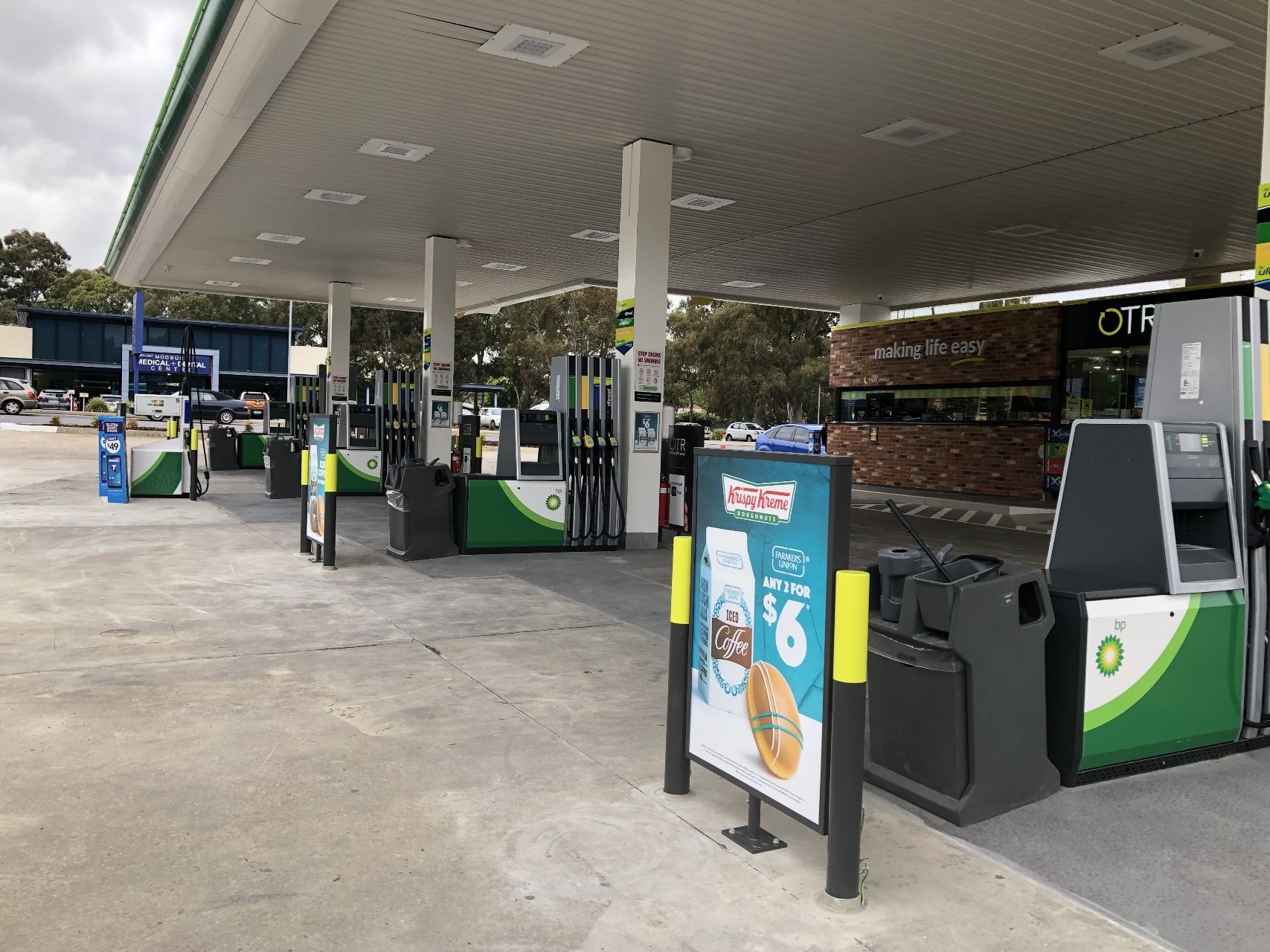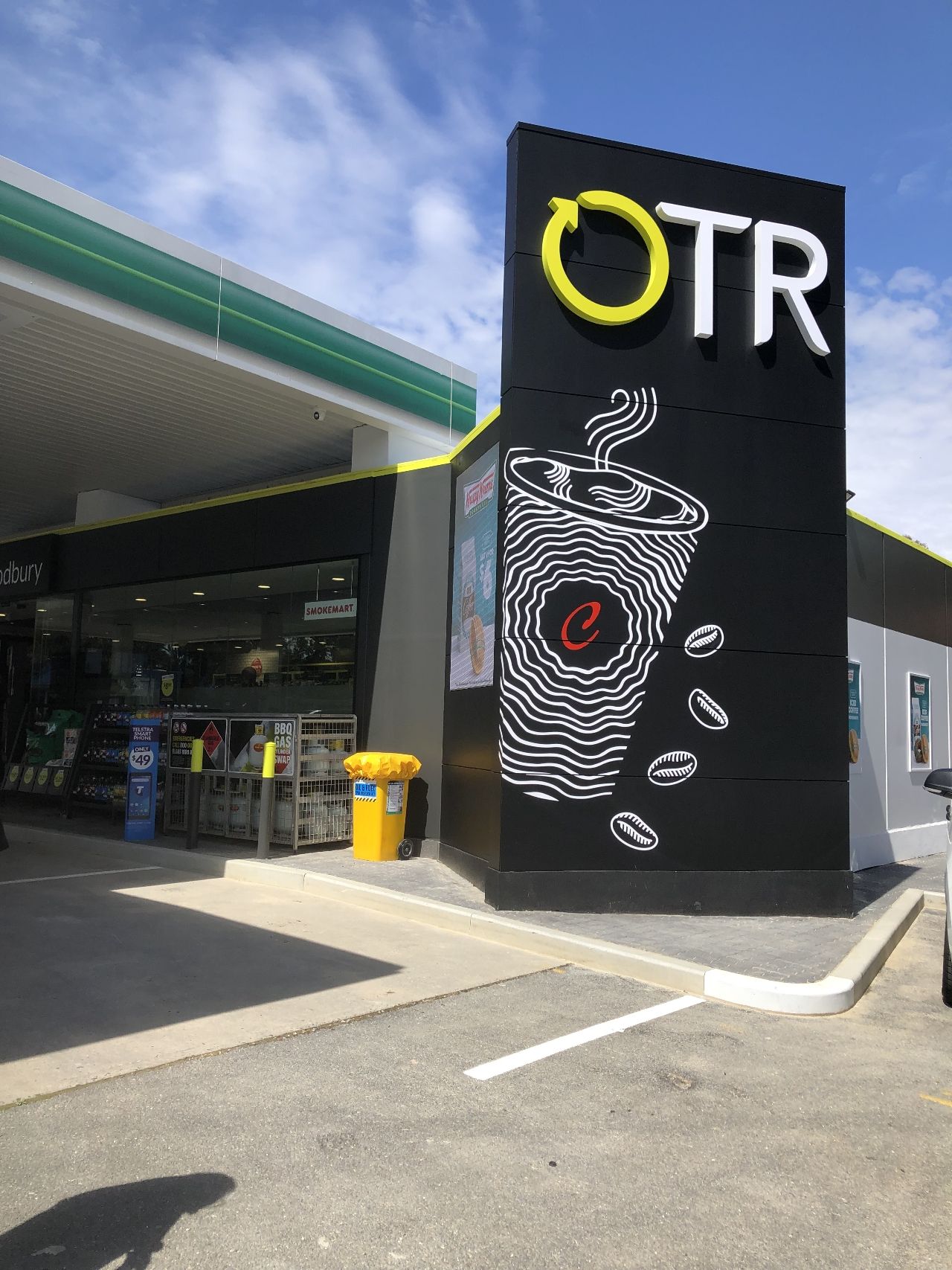 Автозаправочный комплекс OTR Modbury предлагает клиентам пончики Krispy Kreme, кофе от бариста, Moe's Dog & Shakes, EAT, HappyWash, Lotto и многое другое.