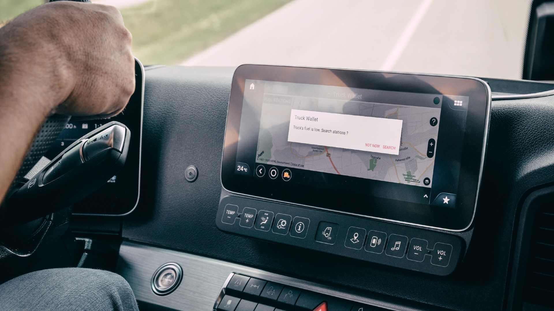 Этот процесс происходит в режиме онлайн, поэтому менеджер автопарка всегда имеет доступ к кошельку каждого грузовика. Связанное навигационное приложение информирует водителя о необходимости заправки и указывает ближайшую заправочную станцию Shell. Когда водитель подтвердит наличие АЗС в системе и прибудет на нее, приложение запросит номер выбранной ТРК.