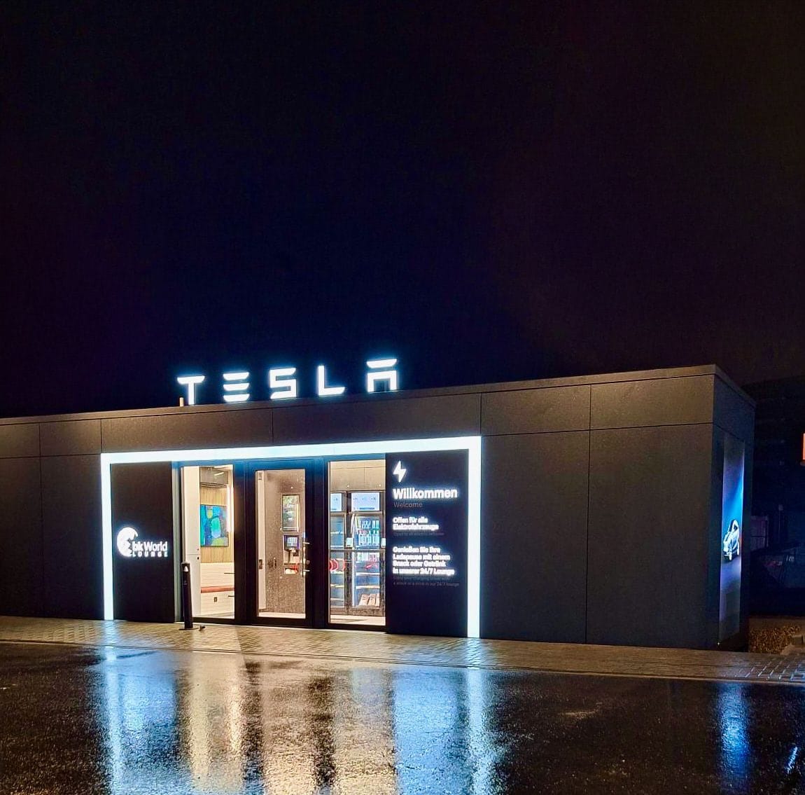 В Германии, в Виллихе, открылась новая точка bk World Lounge — на площадке одного из крупнейших в регионе хабов для зарядки электромобилей рядом с автобаном A44. 50 зарядных точек, суммарная мощность 4600 кВт, партнёрство с Tesla. По этим цифрам можно косвенно судить о потенциальном трафике, который, естественно, нужно превращать в доход.