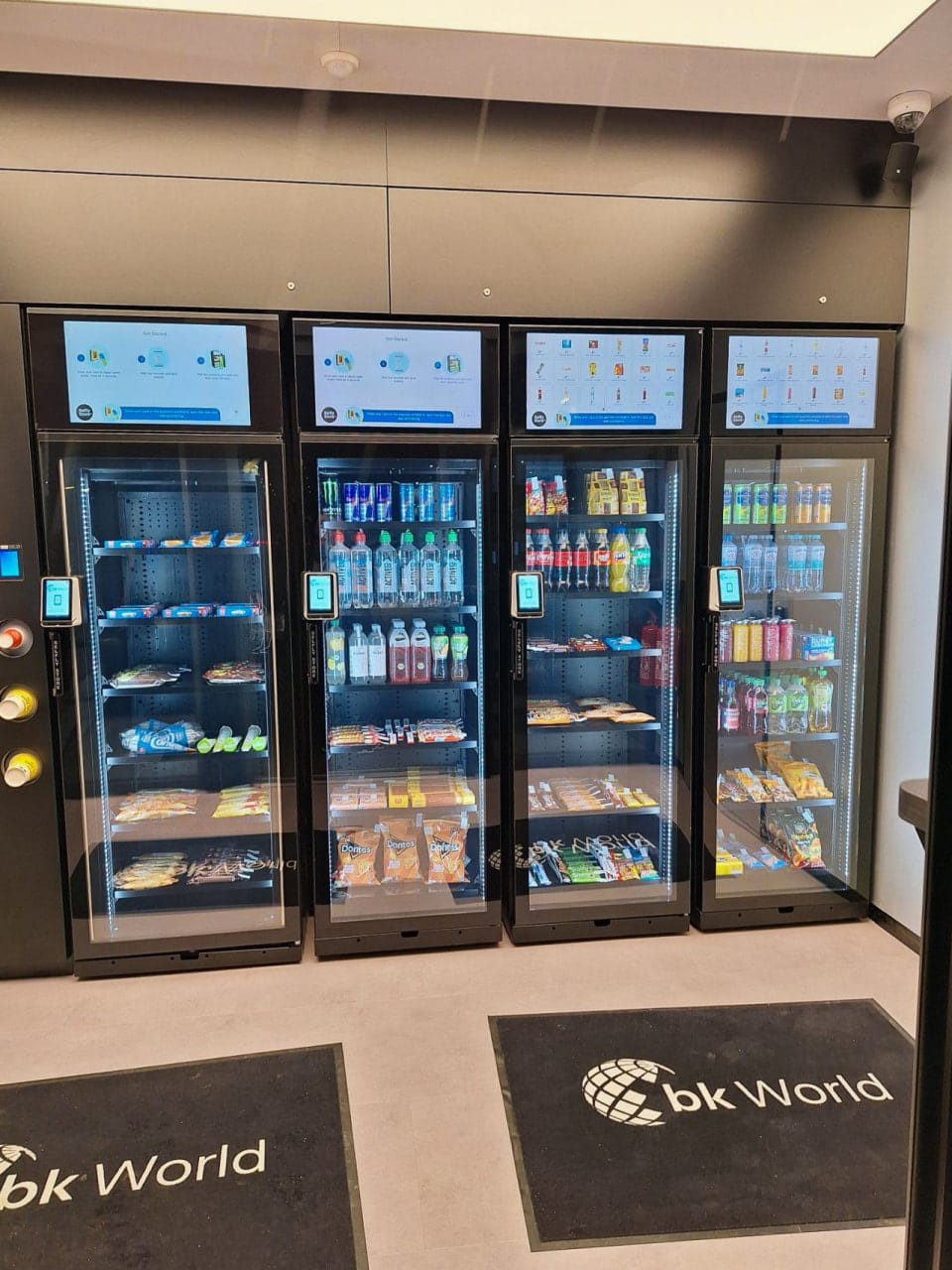 При этом bk World приходит на чужие локации со своим готовым решением — модульным магазином с лаунж-зоной доступным 24/7 без персонала. Компания несёт первоначальные инвестиции — все производственные и строительные расходы. Оператор площадки платит ежемесячный сервисный платёж и получает долю от всех продаж. Собственный штатный персонал убирает лаунж включая санузел, пополняет автоматы и вывозит мусор.