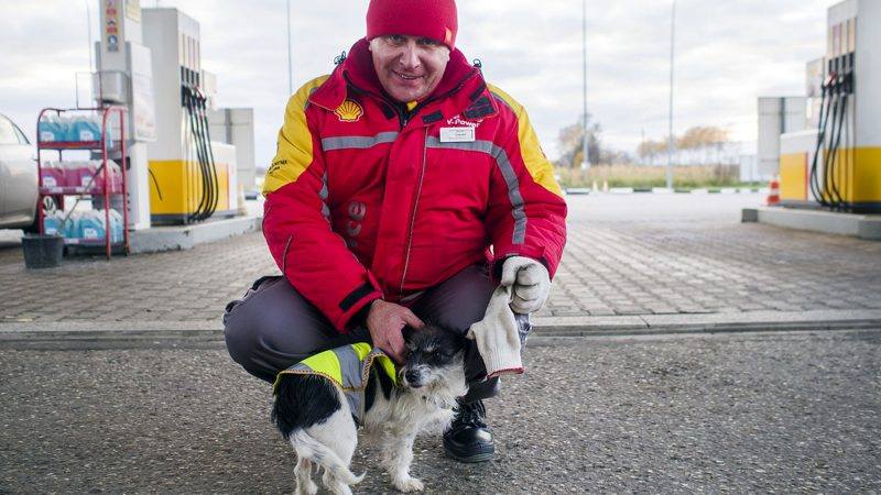 На самом деле бездомные собаки часто прибиваются к заправочным станциям, но эта история отличается от многих других тем, что маленькая запуганная собачка обрела новый дом в окружении добрых и заботливых сотрудников станции Shell на 173 км трассы М1 в Смоленской области. Никто здесь не стал прогонять собаку, а наоборот - ей построили утепленную будку, купили одежду, еду, сделали все необходимые прививки, чтобы она не болела и не представляла опасности для людей.