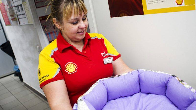 Для Жужи на станции создали все условия: купили мягкий лежак, теплый комбинезон на зиму, даже ботиночки приготовили. Причем все вещи забрендировали фирменным логотипом Shell. Поэтому можно сказать, что Жужа стала полноценным сотрудником заправочной станции при полном обмундировании.