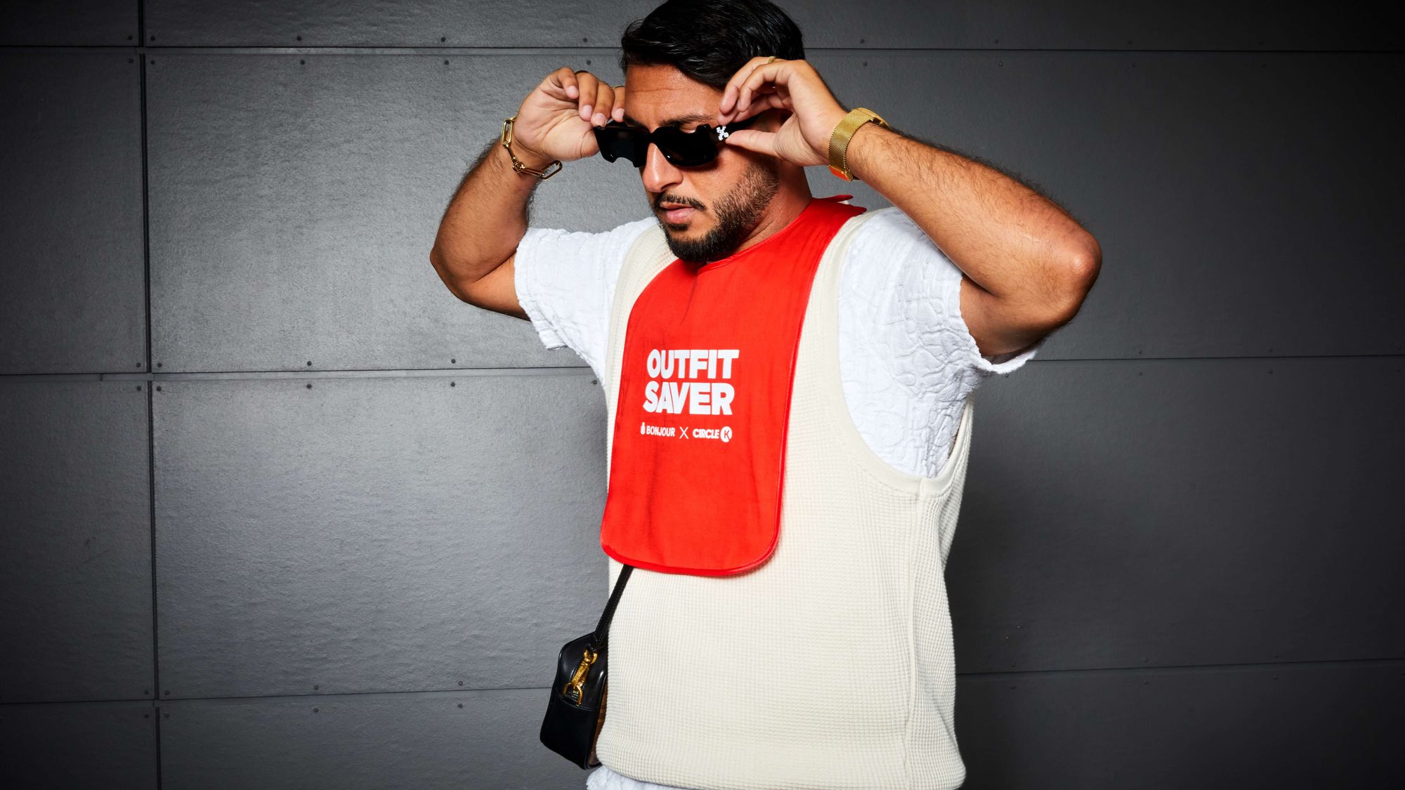Outfit Saver – это уникальный нагрудник, выпущенный ограниченным тиражом и разработанный в сотрудничестве дизайнеров Circle K и Bonjour. Прелюдией к идее было обсуждение того, как трудно есть, не проливая, не рассыпая и не возясь в машине, и вскоре оно переросло в более глубокое озарение и решение.