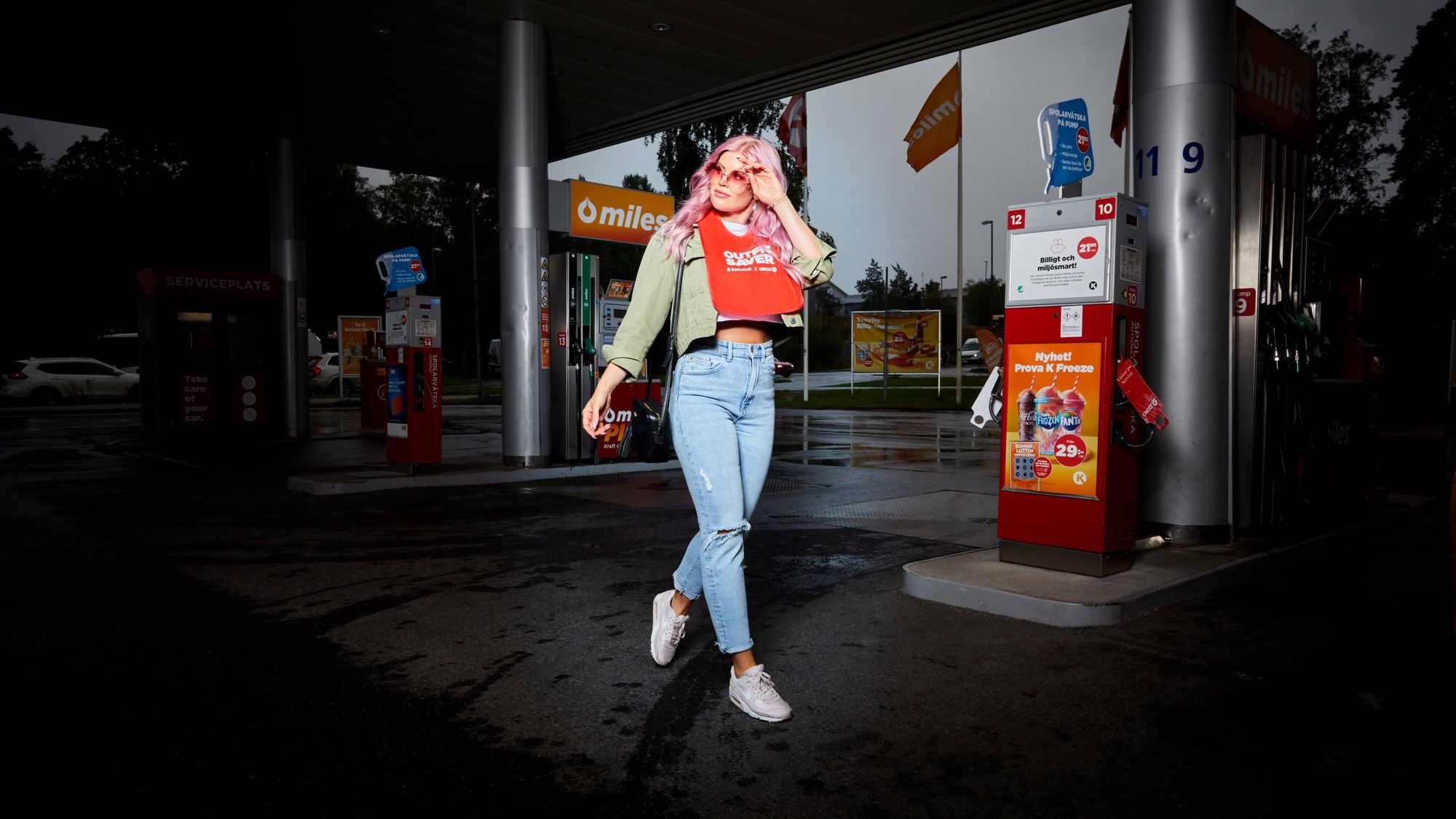 «С огоньком в глазах мы сделали более-менее классическую фэшн-фотографии, хоть и с спором, потому что она в обстановке АЗС. Мы невероятно довольны всеми фото и думаем, что они передают именно то сочетание веселья и серьезности, на котором основан этот проект», – продолжает Эрика Сёдерлунд.